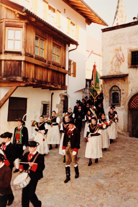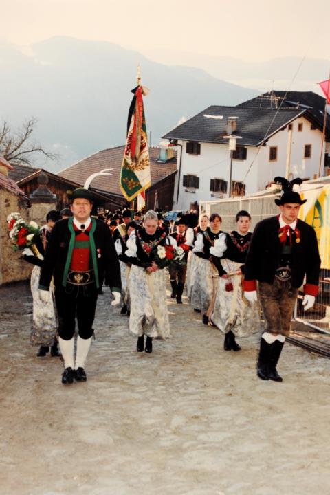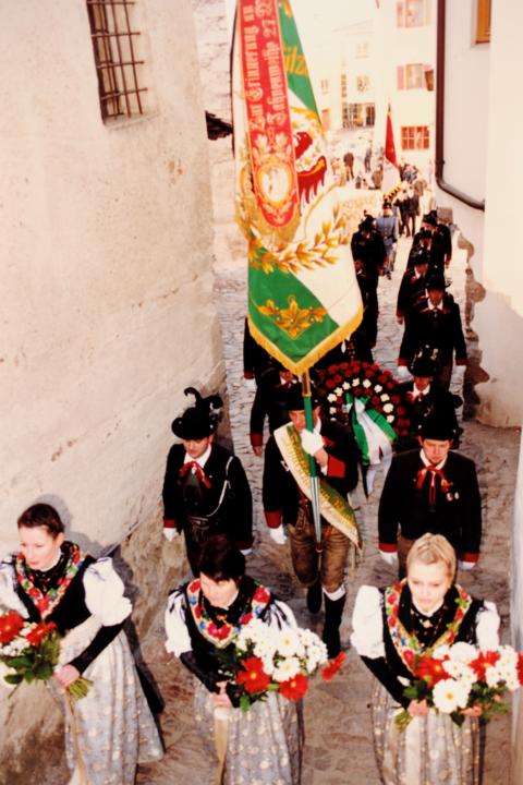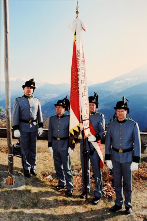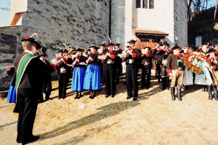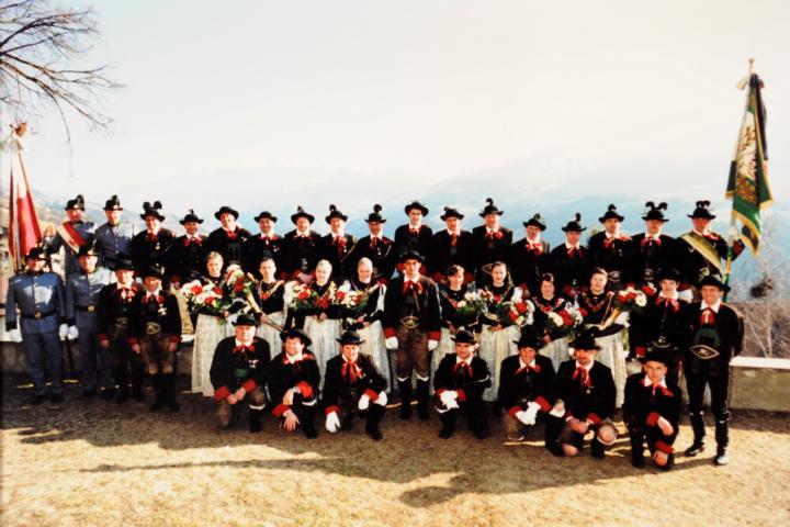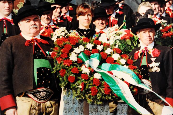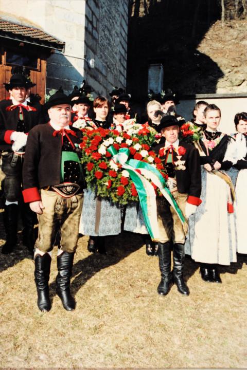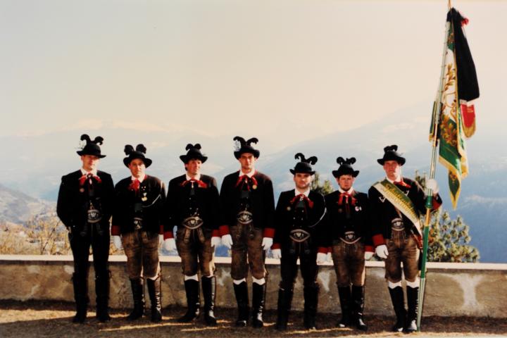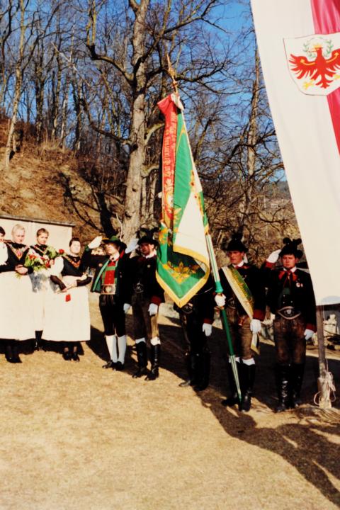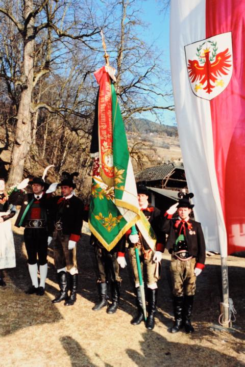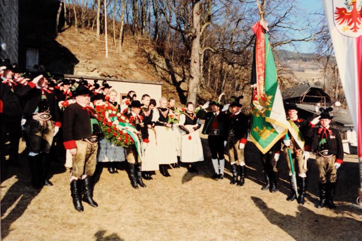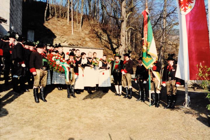 Erster Auftritt unseres neuen Hauptmannes Hannes Rabensteiner. Um 9.00 Uhr heilige Messe mit Pfarrer Stefan Astner und anschließend Kranzniederlegung am Kriegerdenkmal im Gedenken an die Gefallenen der Kriege insbesondere aber an Andreas Hofer. Pius Leitner hielt die Gedenkrede. In seiner Rede würdigte er die Haltung Andreas Hofers. Die Musikkapelle spielte das Lied vom guten Kameraden und die Tiroler Landeshymne. Nach der Gedenkfeier machten wir einige Fotos fürs Bezirksbuch und stärkten uns anschließend beim Hubertus mit einer Weißwurst, bei der auch die Musikkapelle eingeladen war. Anschliessend fuhren wir nach Meran zur Anderas Hofer Gedenkfeier