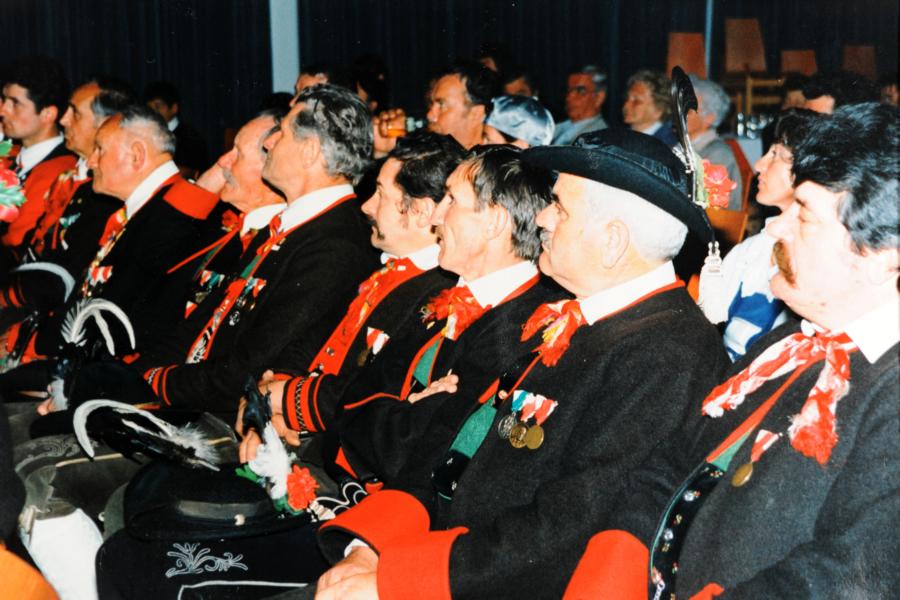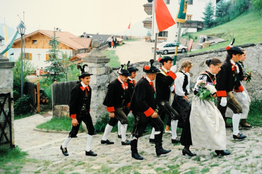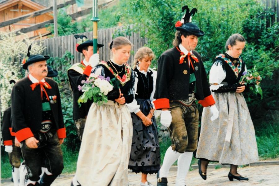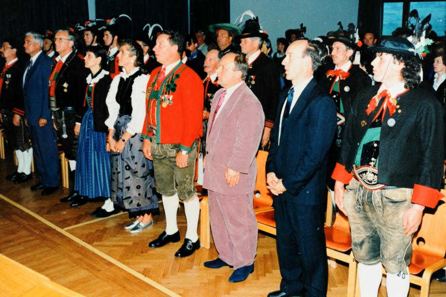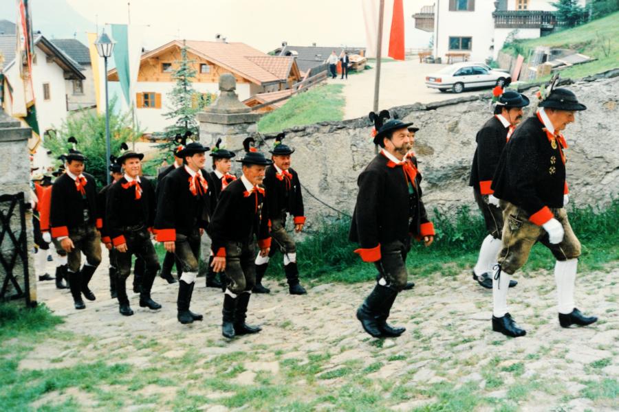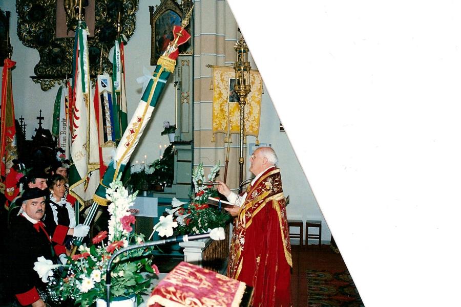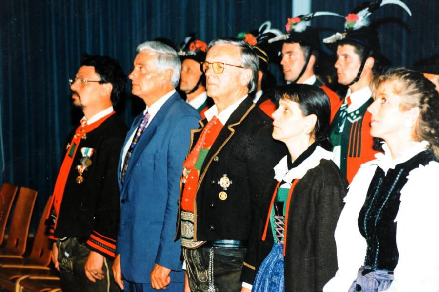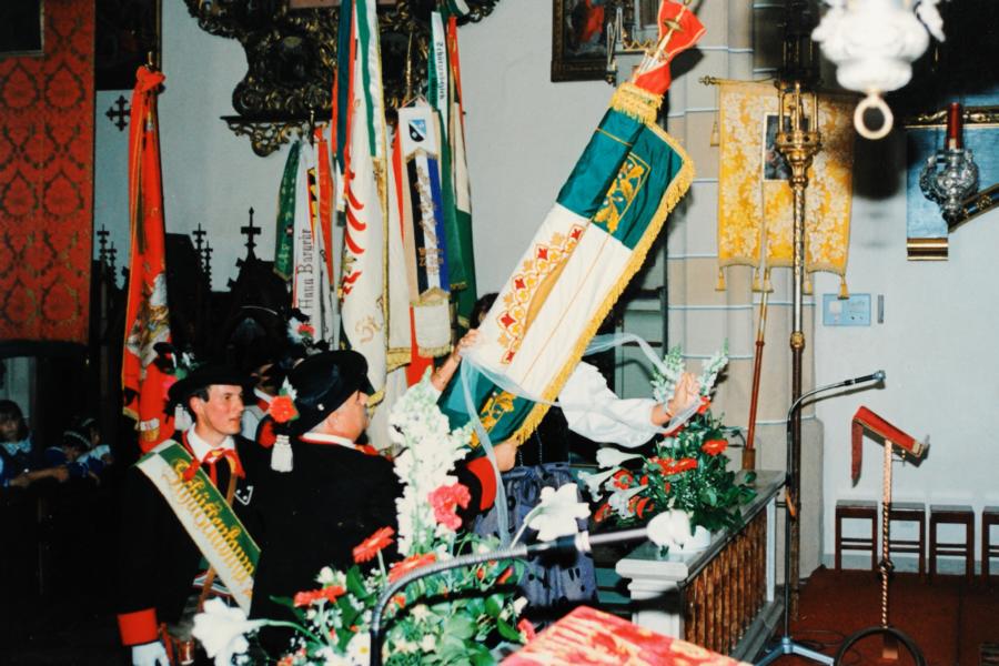 Von Oktober 1995 bis Mai 1996 wurde die Schützenfahne gründlich renoviert, treibende Kraft war Oberleutnant Josef Crepaz, und konnte dann im darauffolgenden Jahr am Pfingstsonntag, den 26.05.1996 durch Pfarrer Anton Mittelberger gesegnet werden. Fahnenpatin war Frau Gertraud Ladurner Rabensteiner, Hubertus.