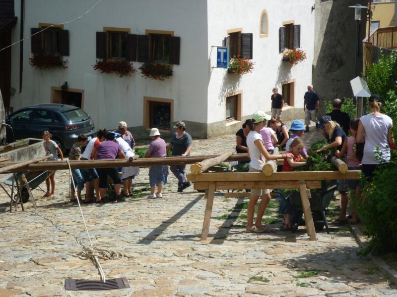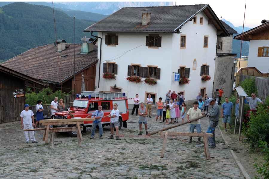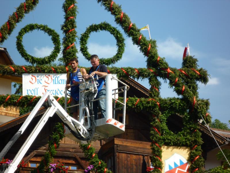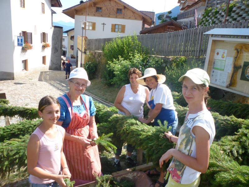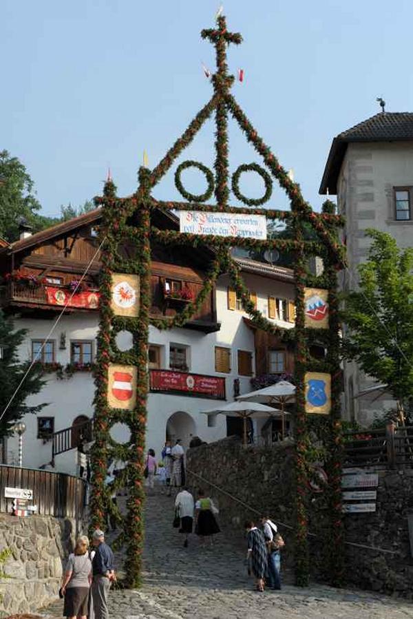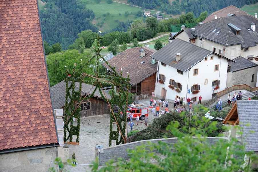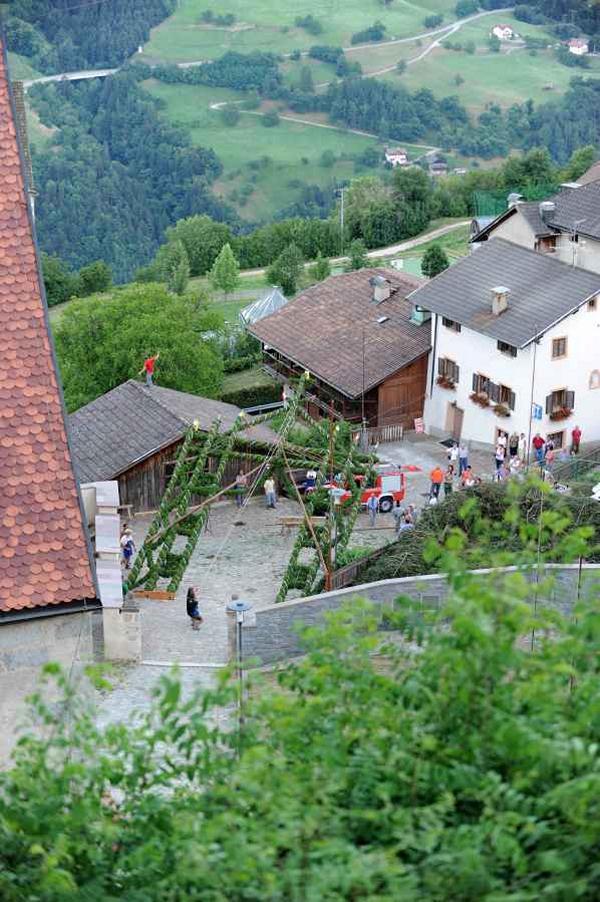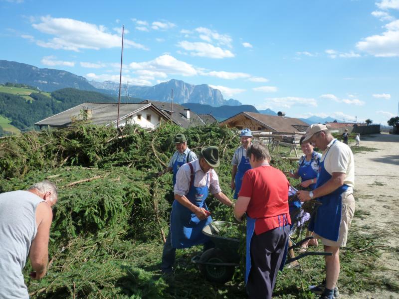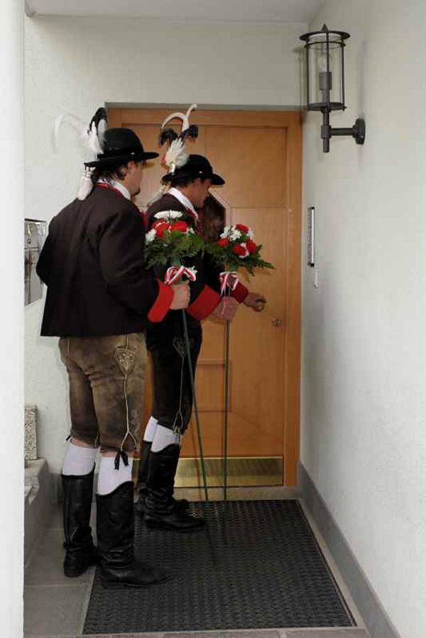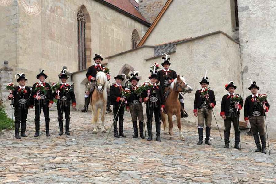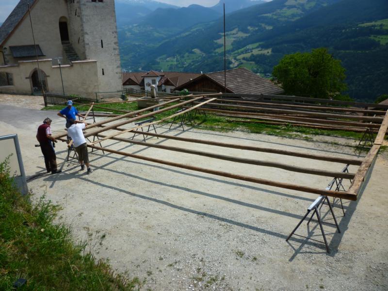 Es war und ist uns eine große Freude, dass nach fast 50 Jahren wieder eine Primiz in Villanders stattfinden konnte. Für uns war es eine besondere Ehr, bei den Vorbereitungen zu den Primizfeierlichkeiten im Komitee mitzuwirken. Die Schützenkompanie sah es als Pflicht, die Tradition der Primizgestaltung sowie des Primizladens weiterzuführen. Für das Primizladen meldeten sich 12 Schützen, um die vorgegebenen 125 Adressen aufzusuchen und traditionell mit einem Gedicht und der persönlichen Einladung von Konrad einzuladen. Zu den Primizladern gehörten Hannes Rabensteiner, Ewald Pichler, Michael Gruber, Karl Gruber, Martin Untermarzoner, Egon Herbst, Gerhard Webhofer, Walter Rabensteiner, Franz Gantioler, Oliver Klammsteiner, Konrad Anranter und Hans Anranter. Sogar im Bozner Dom hatten Karl Gruber und Martin Untermarzoner die Ehre, das Primizgedicht und die Einladung vorzubringen. Für alle war es ein Erlebnis und eine Erinnerung, die man nicht so schnell vergisst. Überall wurden wir herzlich empfangen und staunend wurde uns zugehört. In Villanders erfolgten die Einladungen von Walter Rabensteiner und dem Hauptmann Hannes Rabensteiner wie es die Tradition verlangte hoch zu Ross. Das Primizgedicht wurde von Maria Stoffner verfasst. Weiters war es für uns ein großes Anliegen, die Gestaltung der Primiz in die Hand zu nehmen. Wir übernahmen das Restaurieren und Aufhängen der Krone sowie das Aufstellen der zwei Triumphpforten, die eine Höhe von 15 Metern hatten. Es war eine große Herausforderung, da wirklich viel Arbeit bis zum Schluss anfiel. Doch durch die Unterstützung der Katholischen Frauenbewegung und unzähliger Privatpersonen, die beim Binden bei hohen Temperaturen Außerordentliches geleistet haben, gelang es, dass die Pforten sowie die Krone und die Girlanden rechtzeitig fertig wurden. Die Lieferung der „Tasen“ übernahmen die Bauern. Weitere Aufgaben, deren wir uns annahmen, waren die Organisation des Böllerns, der Leinwand, der beiden Filmer, des Fotografen, die Bestellung der Getränke und des Essens sowie von sämtlichem Zubehör, wie z.B. Budel, Bänke, Toiletten u.ä. Soviel zur Vorarbeit. Am Samstag war es für uns eine große Ehre, unseren Primizianten nach altem Brauch durch die Primizlader abzuholen. Unser