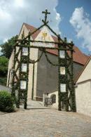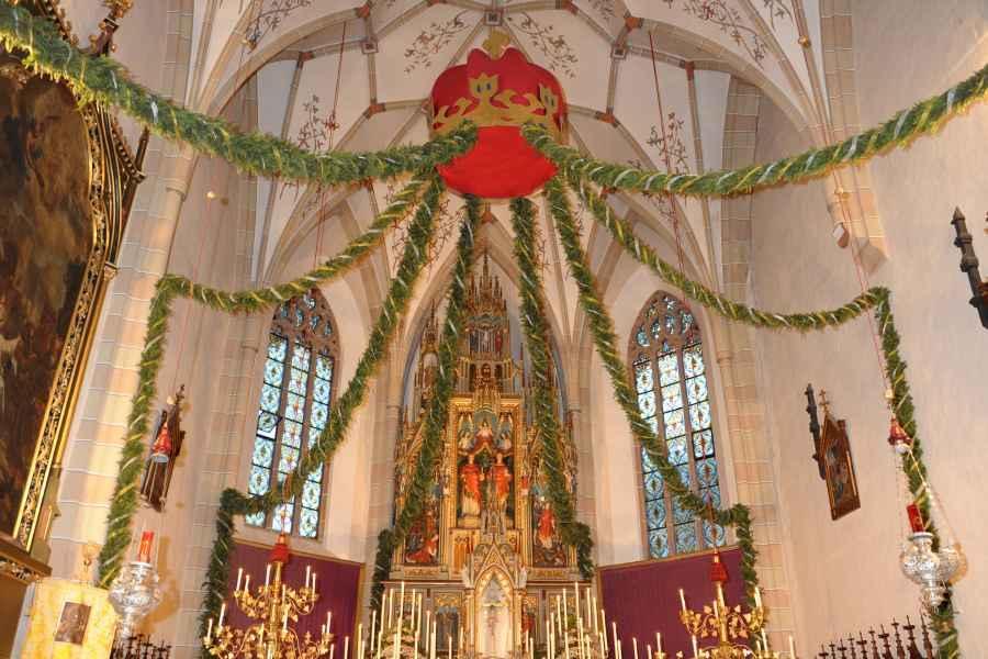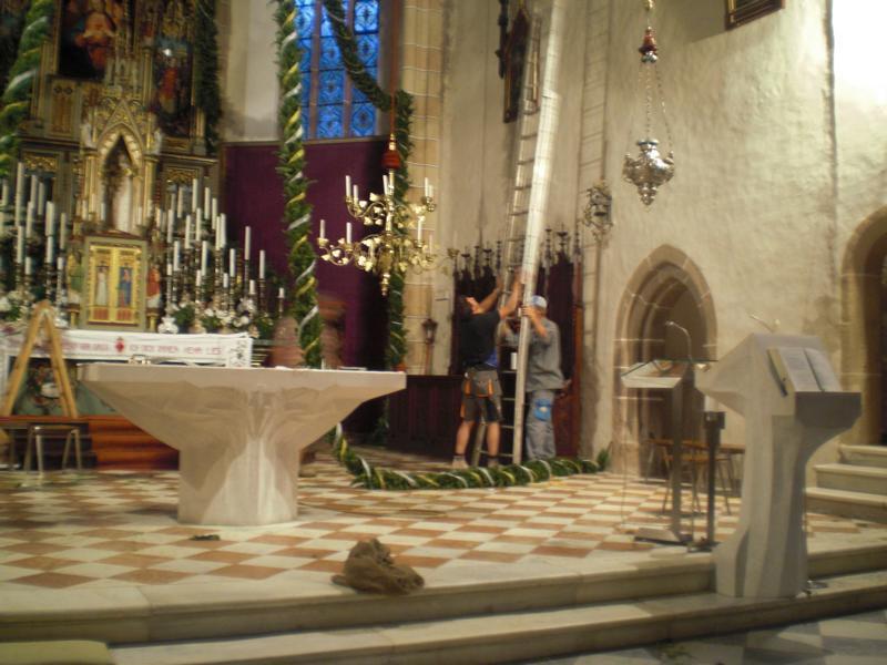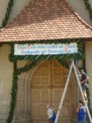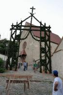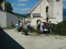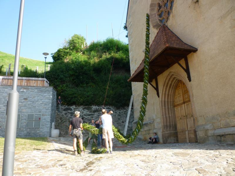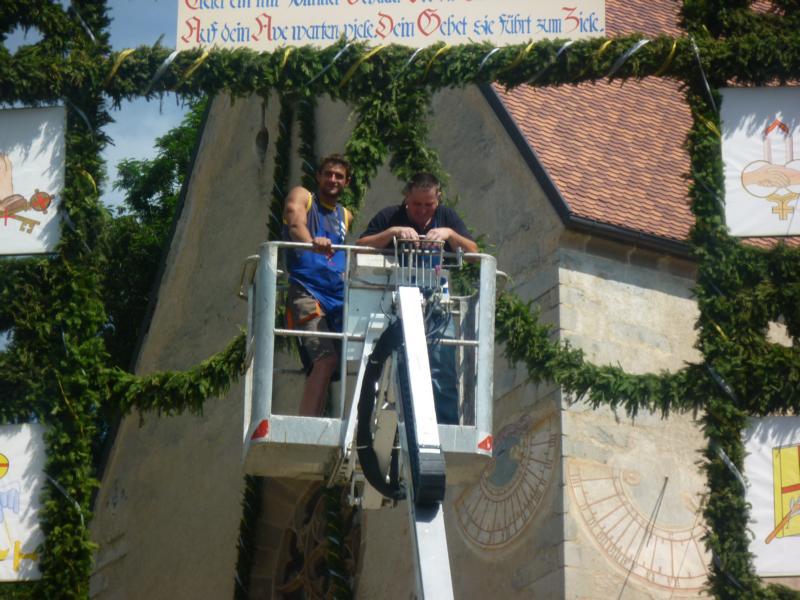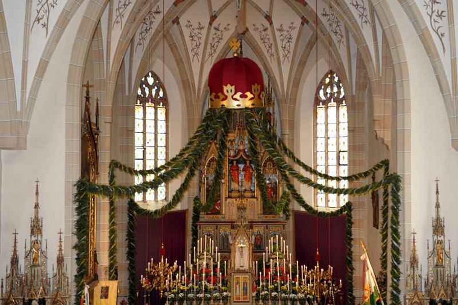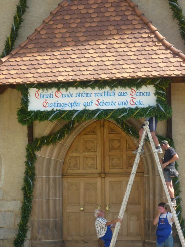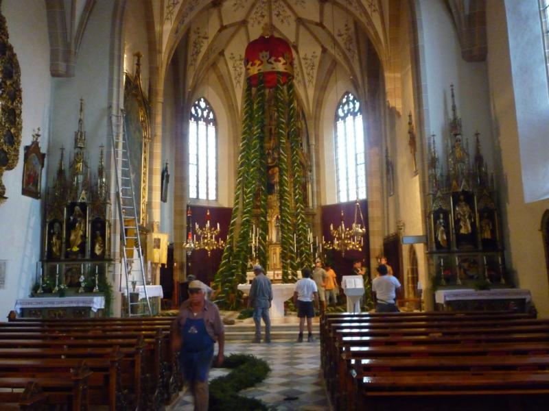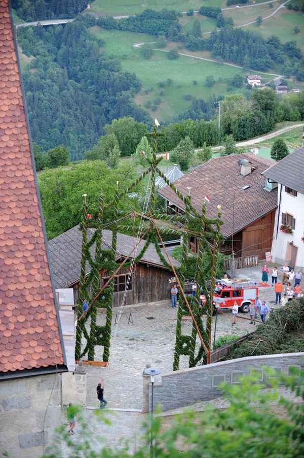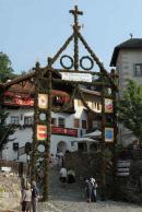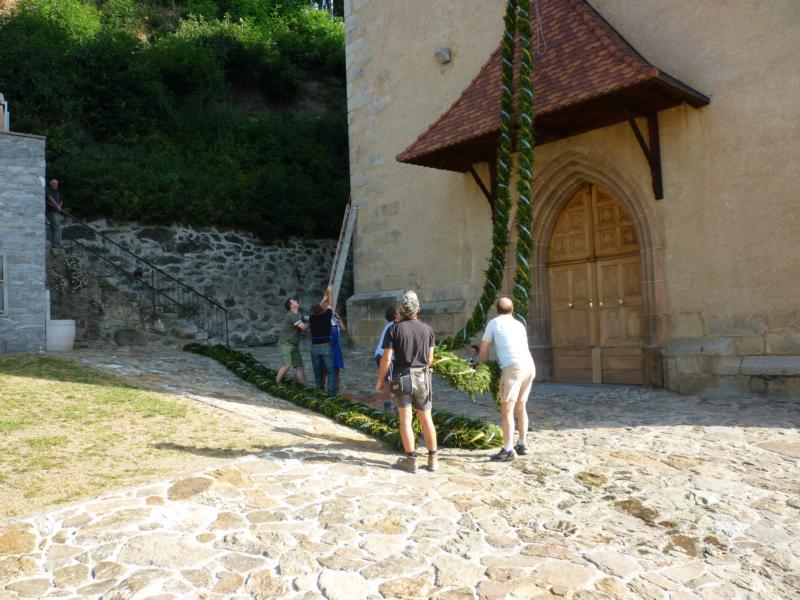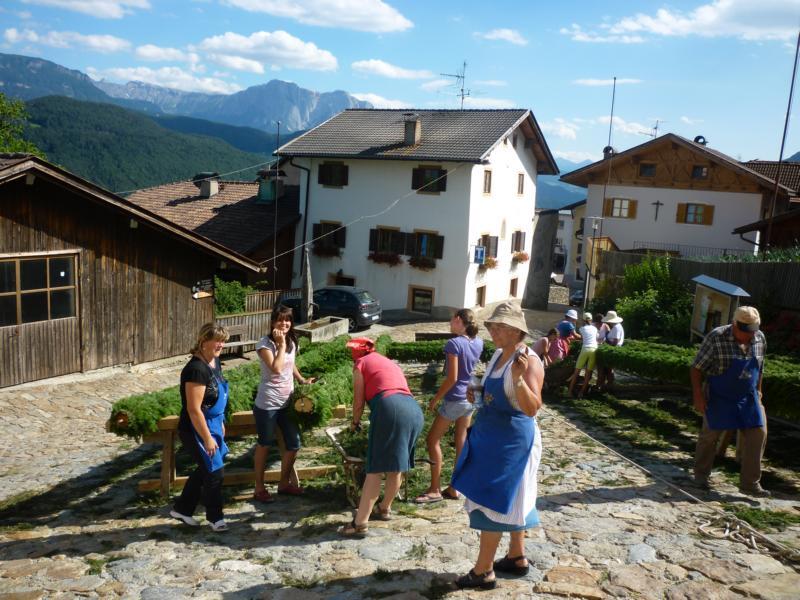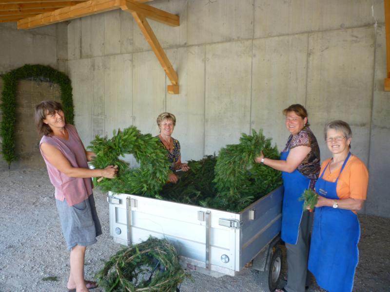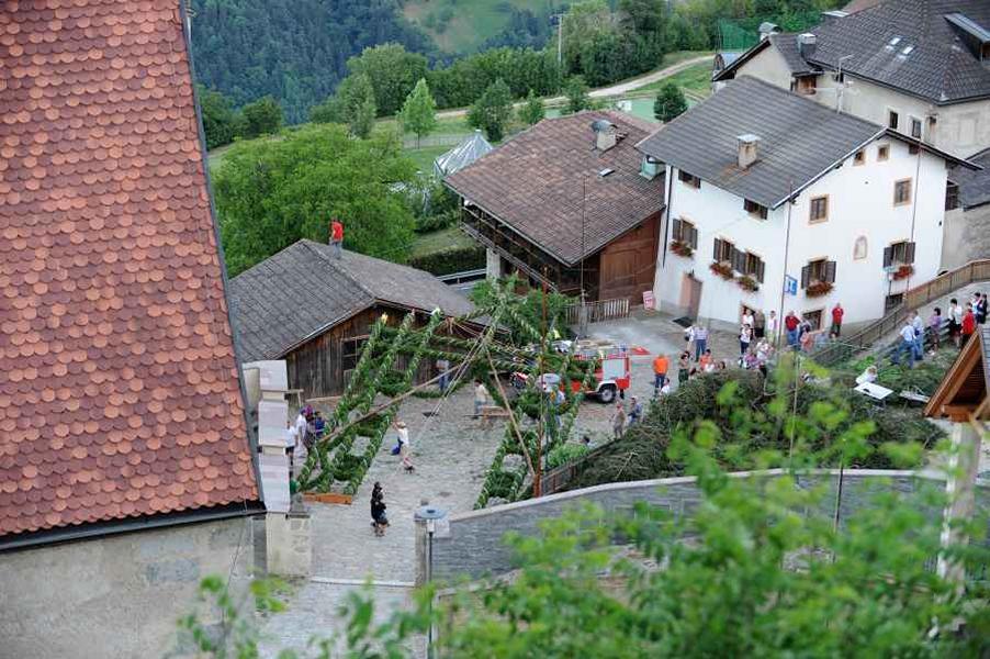 Es war und ist uns eine große Freude, dass nach fast 50 Jahren wieder eine Primiz in Villanders stattfinden konnte. Für uns war es eine besondere Ehr, bei den Vorbereitungen zu den Primizfeierlichkeiten im Komitee mitzuwirken. Die Schützenkompanie sah es als Pflicht, die Tradition der Primizgestaltung sowie des Primizladens weiterzuführen. Für das Primizladen meldeten sich 12 Schützen, um die vorgegebenen 125 Adressen aufzusuchen und traditionell mit einem Gedicht und der persönlichen Einladung von Konrad einzuladen. Zu den Primizladern gehörten Hannes Rabensteiner, Ewald Pichler, Michael Gruber, Karl Gruber, Martin Untermarzoner, Egon Herbst, Gerhard Webhofer, Walter Rabensteiner, Franz Gantioler, Oliver Klammsteiner, Konrad Anranter und Hans Anranter. Sogar im Bozner Dom hatten Karl Gruber und Martin Untermarzoner die Ehre, das Primizgedicht und die Einladung vorzubringen. Für alle war es ein Erlebnis und eine Erinnerung, die man nicht so schnell vergisst. Überall wurden wir herzlich empfangen und staunend wurde uns zugehört. In Villanders erfolgten die Einladungen von Walter Rabensteiner und dem Hauptmann Hannes Rabensteiner wie es die Tradition verlangte hoch zu Ross. Das Primizgedicht wurde von Maria Stoffner verfasst. Weiters war es für uns ein großes Anliegen, die Gestaltung der Primiz in die Hand zu nehmen. Wir übernahmen das Restaurieren und Aufhängen der Krone sowie das Aufstellen der zwei Triumphpforten, die eine Höhe von 15 Metern hatten. Es war eine große Herausforderung, da wirklich viel Arbeit bis zum Schluss anfiel. Doch durch die Unterstützung der Katholischen Frauenbewegung und unzähliger Privatpersonen, die beim Binden bei hohen Temperaturen Außerordentliches geleistet haben, gelang es, dass die Pforten sowie die Krone und die Girlanden rechtzeitig fertig wurden. Die Lieferung der „Tasen“ übernahmen die Bauern. Weitere Aufgaben, deren wir uns annahmen, waren die Organisation des Böllerns, der Leinwand, der beiden Filmer, des Fotografen, die Bestellung der Getränke und des Essens sowie von sämtlichem Zubehör, wie z.B. Budel, Bänke, Toiletten u.ä. Soviel zur Vorarbeit. Am Samstag war es für uns eine große Ehre, unseren Primizianten nach altem Brauch durch die Primizlader abzuholen. Unser