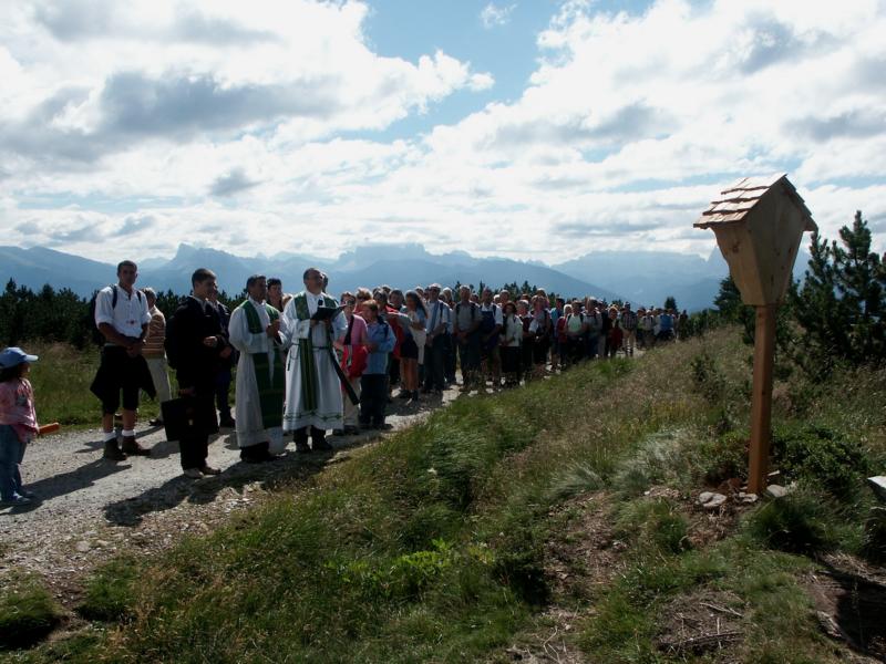 Die Kreuzwegstationen zum Totenkirchl wurde von den Villanderer Schützen restauriert. Mit ca. 600 Gläubigen und trotz starken Windes feierte die Schützenkompanie Anton von Gasteiger Villanders am 25. Juli 2010 die Erneuerung der Kreuzwegstationen auf der Villanderer Alm. Die 14 Stationen reichen vom Scheibenstockbild bis zum Totenkirchl. Da die Bildstöcke in einem schlechten Zustand waren, wurden sie neu angefertigt. Neupriester Konrad Gasser sowie der frühere Pfarrer von Villanders, Hochw. Stefan Aster, segneten um 09:30 Uhr die erste Station. Anschließend ging die Festgemeinde bis zum Totenkirchl, der letzten Station. Dort fand um 11 Uhr eine Bergmesse statt. Neupriester Gasser lobte die Schützen, dass sie die Kreuzwegstationen neu errichtet hatten. Es sei sehr wichtig, „Zeichen des Glaubens“ weiterhin sichtbar zu halten, da das Kreuz nicht mehr überall Platz habe. Danach schossen Villanderer Böllerschützen mit der Kanone der Schützenkompanie Peter Kemenater Schabs einige Böller ab. Anstatt des Glockengeläuts zeigten einige Schützen ihr Können im Goaßlschnöllen. Musikalisch umrahmt wurde die Feier von der Musikkapelle Villanders und den Seiser Alphornbläsern. In den Gebeten gedachten die Gläubigen der verstorbenen Musikanten und Schützen von Villanders. Zum Abschluss der Messe bedankte sich Hauptmann Hannes Rabensteiner für die freiwillige Hilfe der Schützen sowie bei den Priestern für die Segnung der Stationen und die Abhaltung der Bergmesse. Er dankte auch der Stiftung Sparkasse, die den Großteil der Stationen finanziert hatte. Die Schützen luden zu einem Familienfest beim Toamer Rastl ein, bei dem die Kinder sich über viele Spiele freuten. Die Kompanie hatte zuvor 1979 die Kreuzwegstationen zuletzt restauriert und 1981 das Totenkirchl.