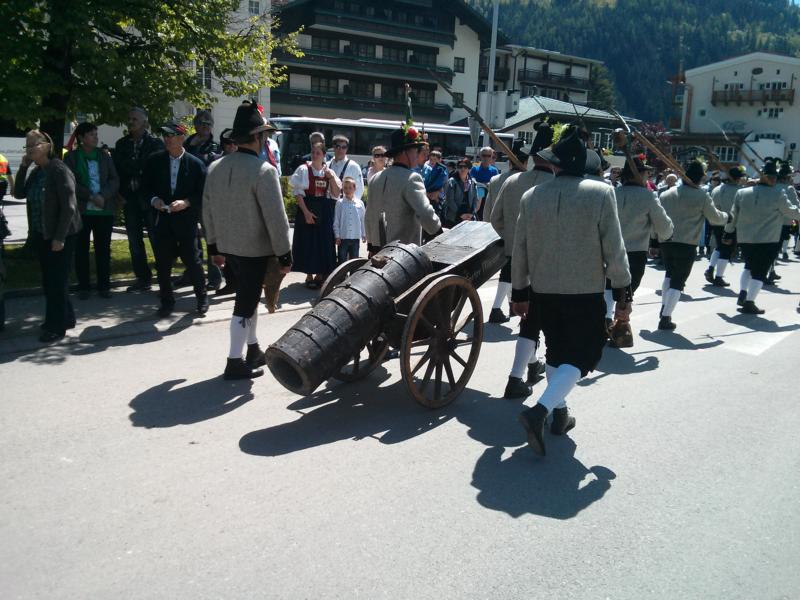 Am Sonntag Feldmesse und anschließend der Umzug durchs Dorf. Auch unsere Kanone war mit dabei mit der einige Schüsse abgefeuert wurden und das den tausenden Zuschauern sehr gefallen hat. Mit dabei waren 24 Schützen, 6 Marketenderinnen, 2 Jungmarketenderinnen, 5 Jungschützen und 7 Kaiserjäger. Dieser Ausflug war für die Kompanie a morts Gaudi.