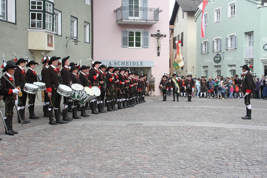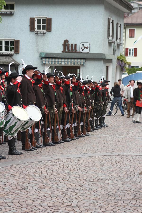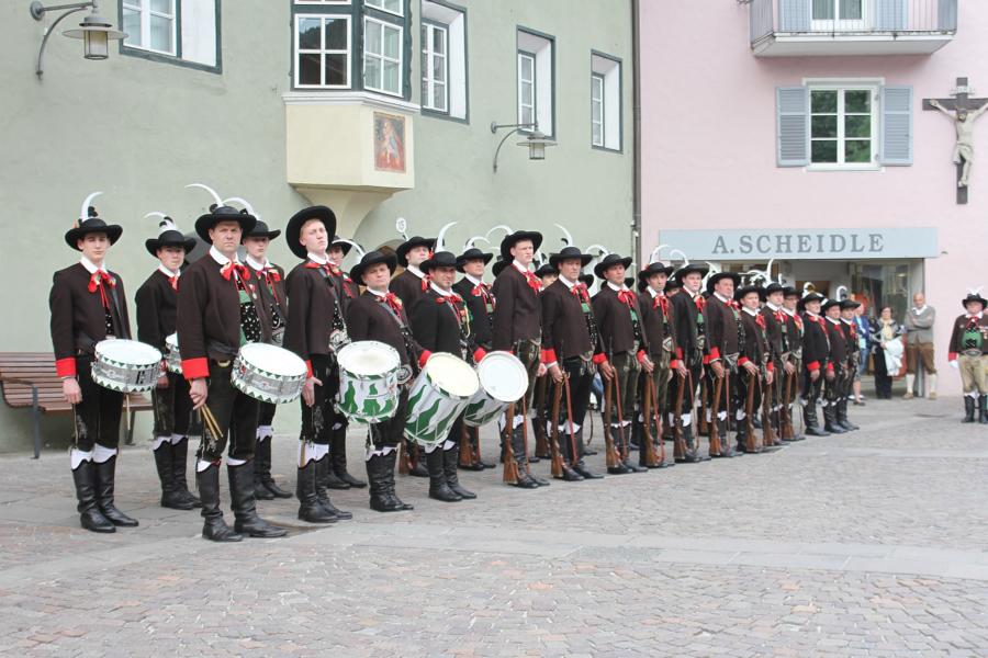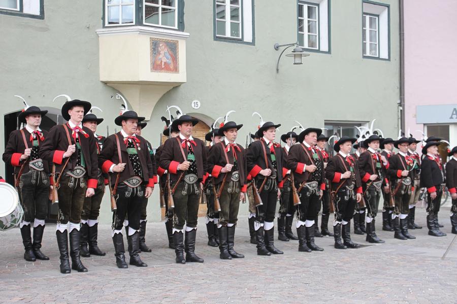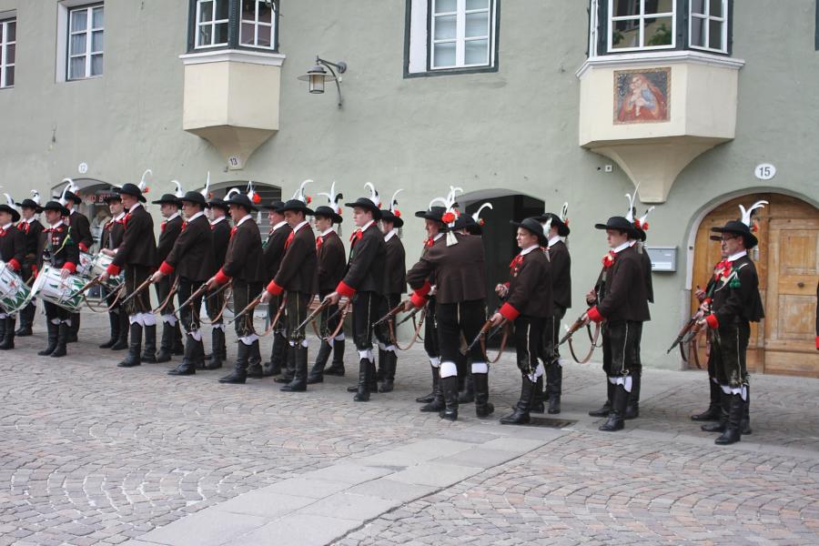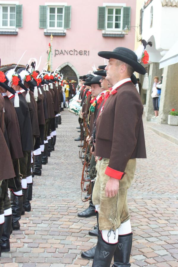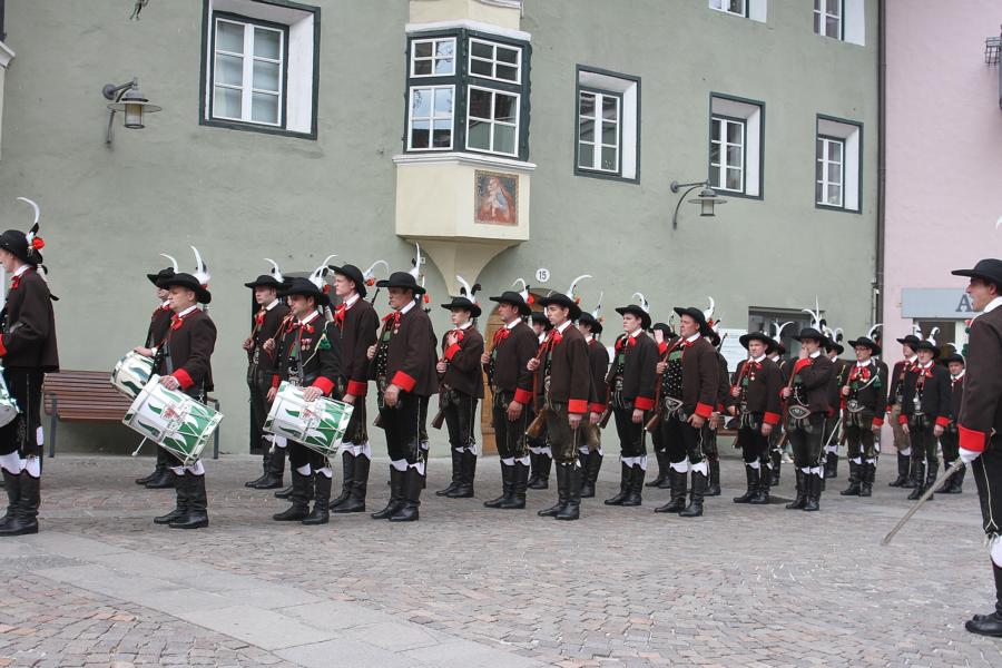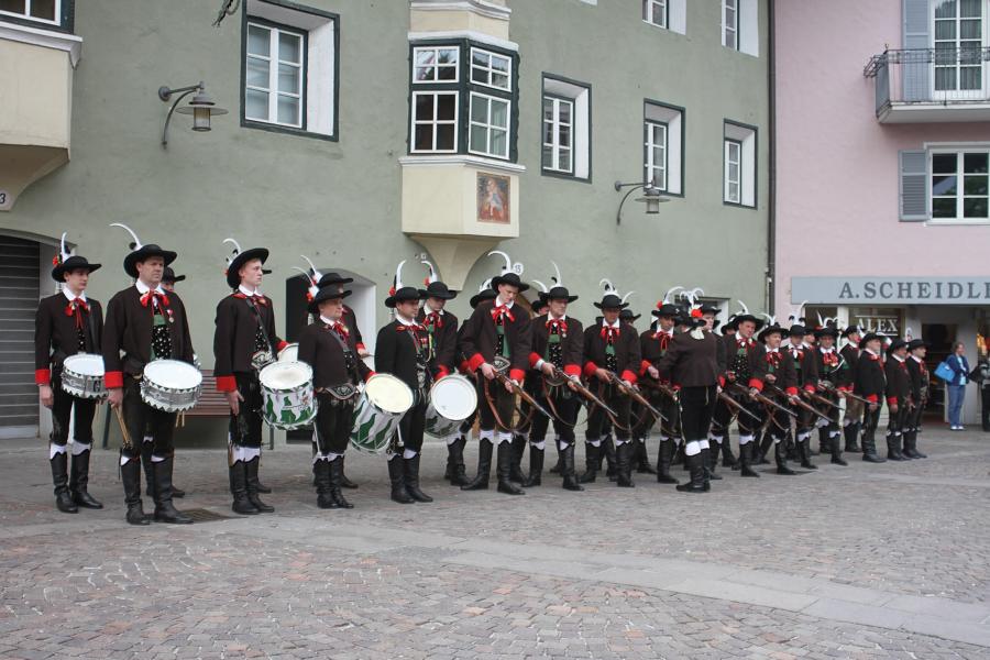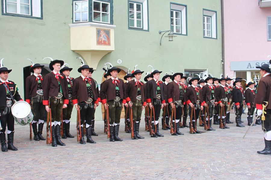 In Klausen hat der Landesmarschierwettbewerb des Südtiroler Schützenbundes stattgefunden, bei dem auch wir qualifiziert waren. Trotz harter Konkurrenz haben wir den dritten Platz errungen und vor allem was mindestens genauso wichtig ist, den Beifall und die Anerkennung der zahlreichen Zuschauer erhalten. Einige Mitglieder der Kompanie waren mit dem Ergebnis nicht zufrieden. Unser Hptm. ersuchte die Bewerter um die Punktevergabe Einsicht zu erhalten. Hier stellte sich heraus, dass uns wohl einige Kleinigkeiten überbewertet wurden, und Punkte abgezogen wurden, wo es die Bewerter nicht durften. Dennoch wurde von den Bewertern die Punktevergabe nicht verbessert. Es hätte nicht für den ersten Platz gereicht aber der Zweite wäre uns durch gerechter Punktevergabe zugestanden. Allen voran hatte es unserer Kompanie gut getan und der gute Zusammenhalt wurde einmal mehr unter Beweis gestellt und gestärkt. Zu erwähnen gilt wohl auch, dass wir die einzige Kompanie waren, die vollzählig aufmarschiert ist. Wir haben das bestmögliche versucht. Wir waren weitaus die größte Kompanie, die sich für den Landesmarschierwettbewerb qualifiziert hat und haben laut Zuschauer den stärksten Auftritt gehabt. Mit dem Marschierwettbewerb wurden auch die ganzen Mängel an Stiefel und Tracht beseitigt und aufgebessert. Hier musste Lt. Arnold, unser Trachtenwart, einige Zeit auf sich nehmen, damit die Tracht für jedes Mitglied einwandfrei war. Sogar am Vorabend wurde bis in den frühen Morgenstunden bei unserem Schuster in Villnöss von den Lt. Hannes und Dominik die Stiefel auf Hochglanz poliert.