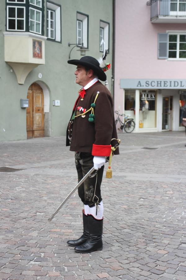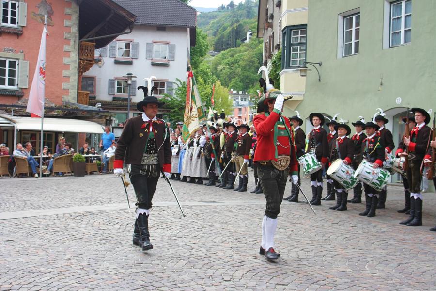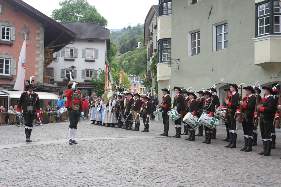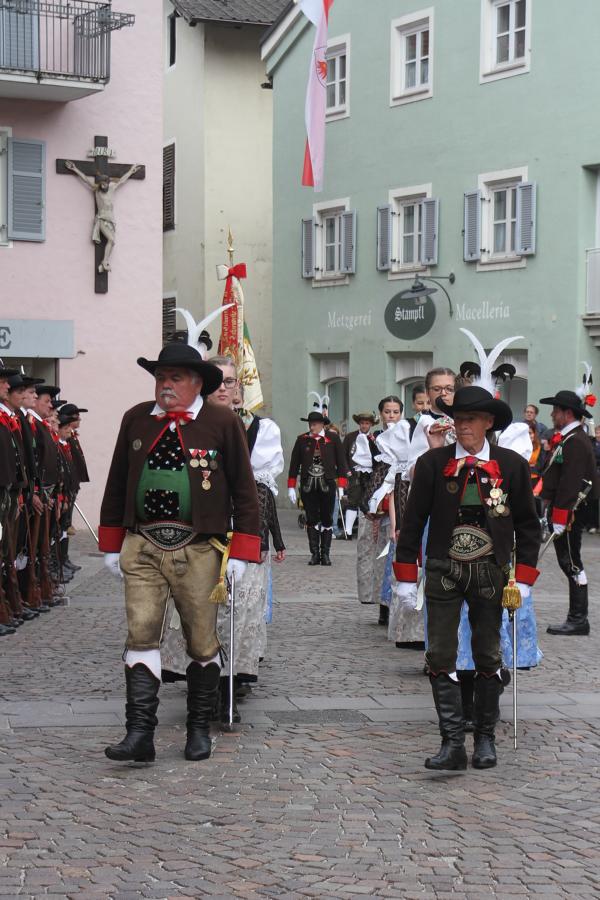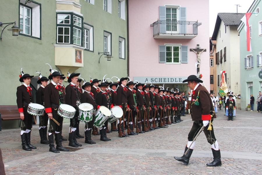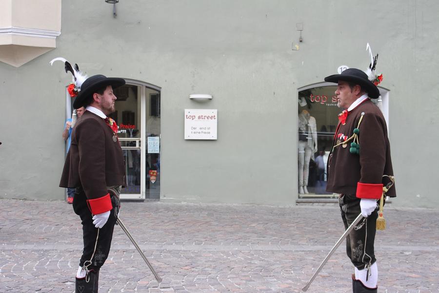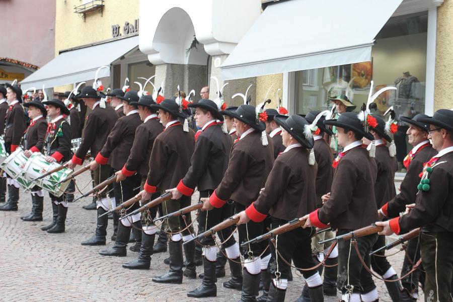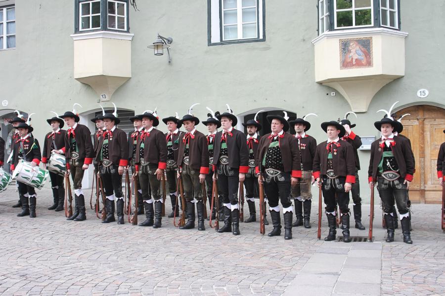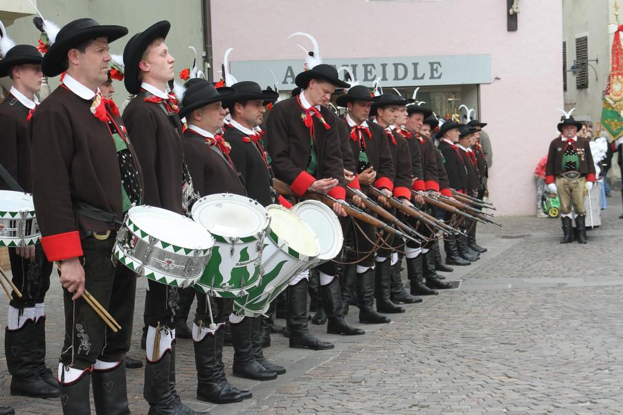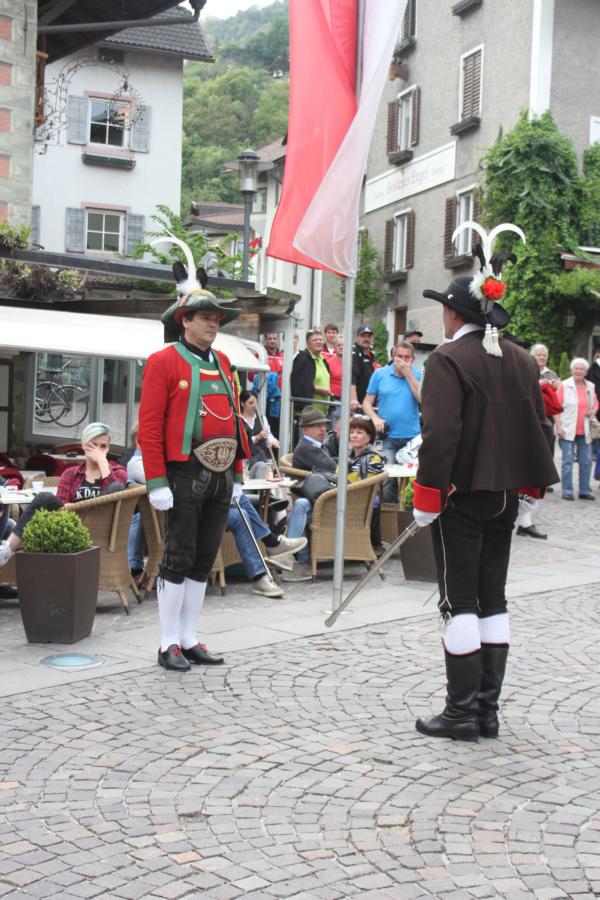 In Klausen hat der Landesmarschierwettbewerb des Südtiroler Schützenbundes stattgefunden, bei dem auch wir qualifiziert waren. Trotz harter Konkurrenz haben wir den dritten Platz errungen und vor allem was mindestens genauso wichtig ist, den Beifall und die Anerkennung der zahlreichen Zuschauer erhalten. Einige Mitglieder der Kompanie waren mit dem Ergebnis nicht zufrieden. Unser Hptm. ersuchte die Bewerter um die Punktevergabe Einsicht zu erhalten. Hier stellte sich heraus, dass uns wohl einige Kleinigkeiten überbewertet wurden, und Punkte abgezogen wurden, wo es die Bewerter nicht durften. Dennoch wurde von den Bewertern die Punktevergabe nicht verbessert. Es hätte nicht für den ersten Platz gereicht aber der Zweite wäre uns durch gerechter Punktevergabe zugestanden. Allen voran hatte es unserer Kompanie gut getan und der gute Zusammenhalt wurde einmal mehr unter Beweis gestellt und gestärkt. Zu erwähnen gilt wohl auch, dass wir die einzige Kompanie waren, die vollzählig aufmarschiert ist. Wir haben das bestmögliche versucht. Wir waren weitaus die größte Kompanie, die sich für den Landesmarschierwettbewerb qualifiziert hat und haben laut Zuschauer den stärksten Auftritt gehabt. Mit dem Marschierwettbewerb wurden auch die ganzen Mängel an Stiefel und Tracht beseitigt und aufgebessert. Hier musste Lt. Arnold, unser Trachtenwart, einige Zeit auf sich nehmen, damit die Tracht für jedes Mitglied einwandfrei war. Sogar am Vorabend wurde bis in den frühen Morgenstunden bei unserem Schuster in Villnöss von den Lt. Hannes und Dominik die Stiefel auf Hochglanz poliert.