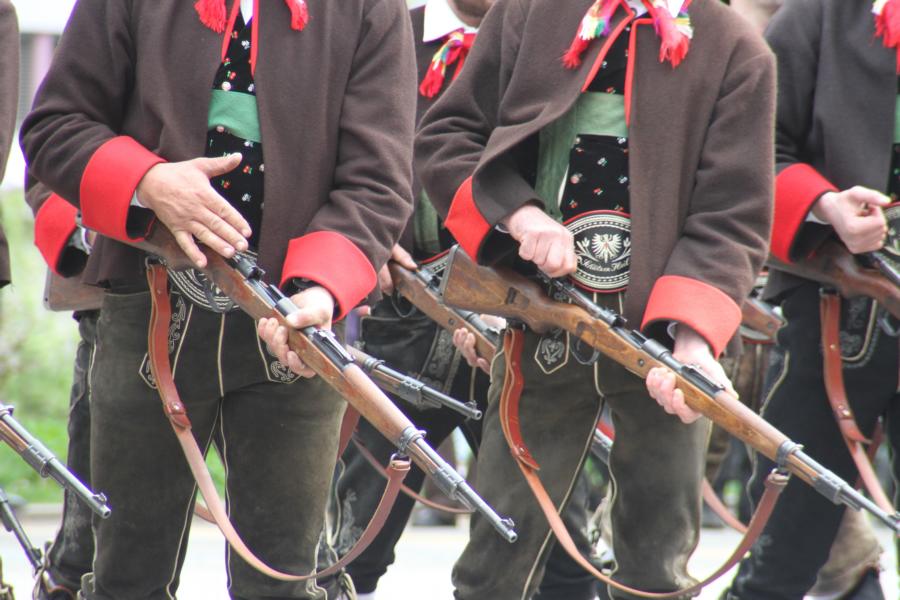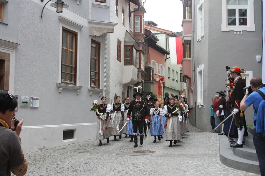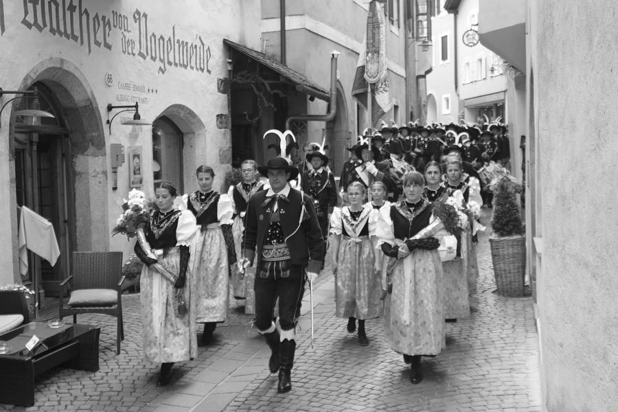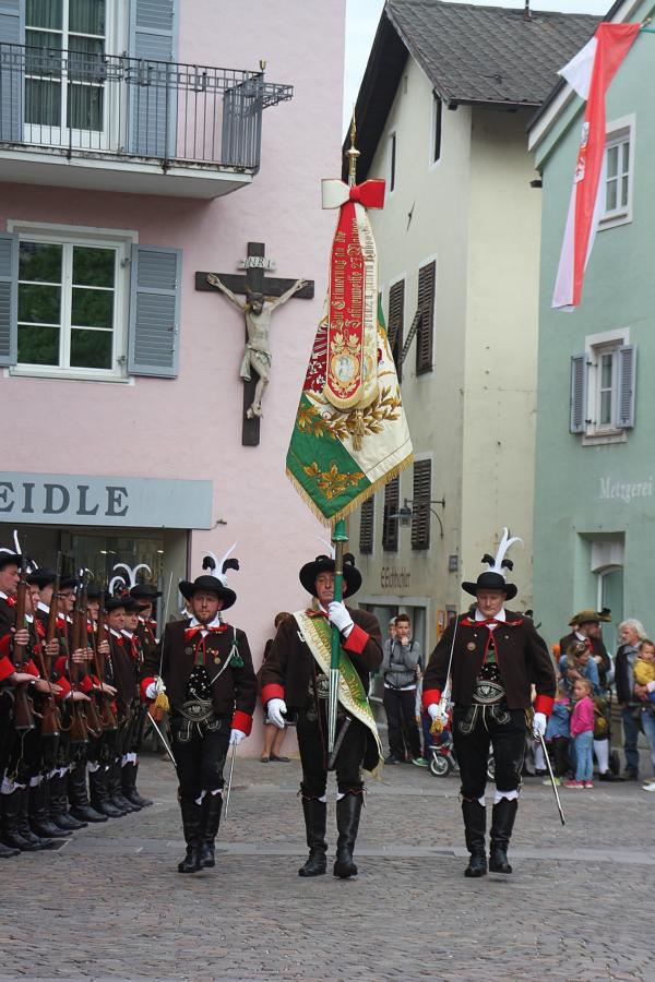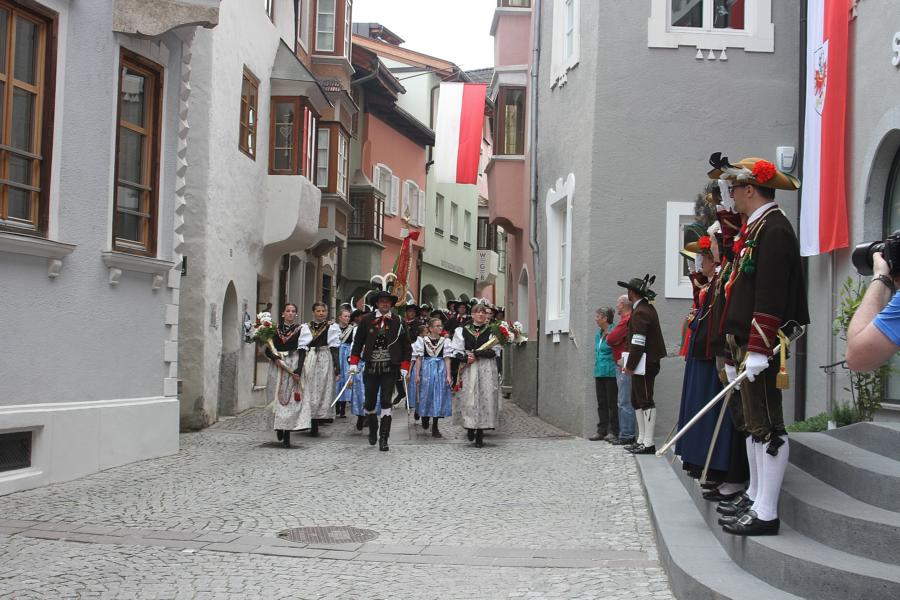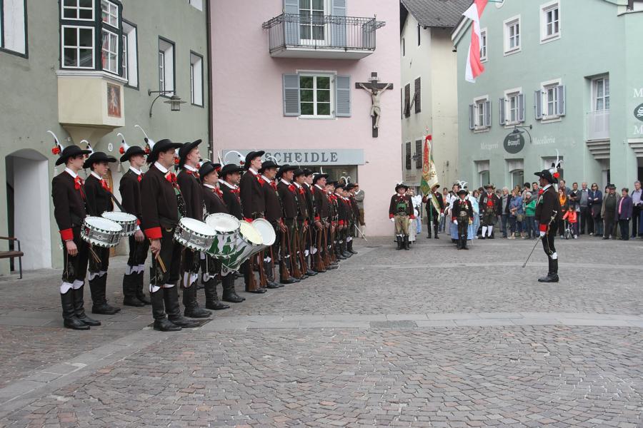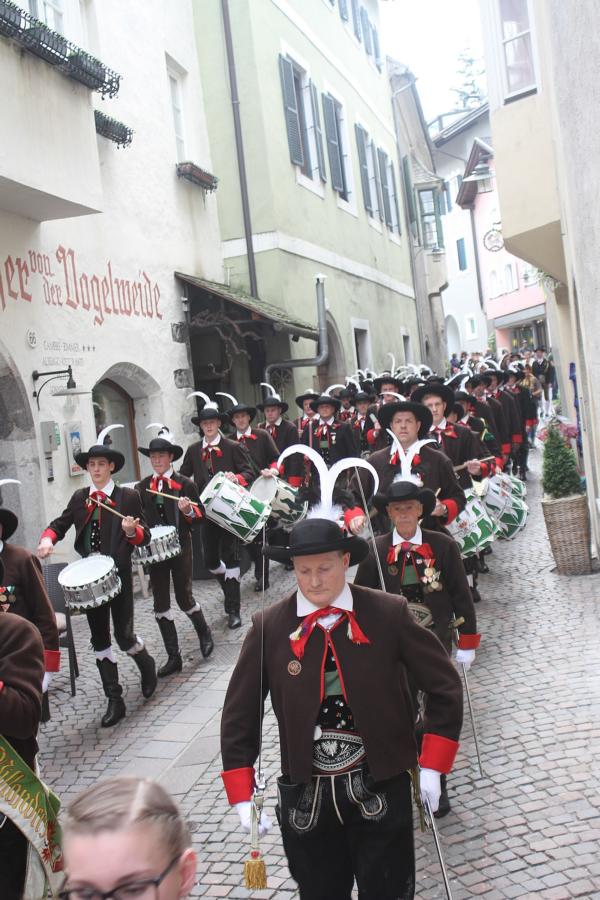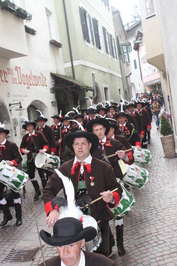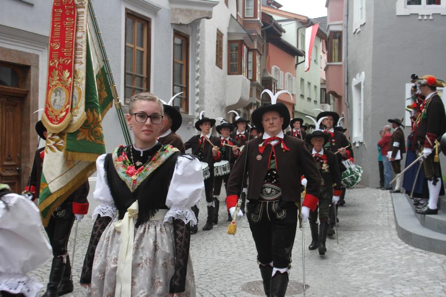 In Klausen hat der Landesmarschierwettbewerb des Südtiroler Schützenbundes stattgefunden, bei dem auch wir qualifiziert waren. Trotz harter Konkurrenz haben wir den dritten Platz errungen und vor allem was mindestens genauso wichtig ist, den Beifall und die Anerkennung der zahlreichen Zuschauer erhalten. Einige Mitglieder der Kompanie waren mit dem Ergebnis nicht zufrieden. Unser Hptm. ersuchte die Bewerter um die Punktevergabe Einsicht zu erhalten. Hier stellte sich heraus, dass uns wohl einige Kleinigkeiten überbewertet wurden, und Punkte abgezogen wurden, wo es die Bewerter nicht durften. Dennoch wurde von den Bewertern die Punktevergabe nicht verbessert. Es hätte nicht für den ersten Platz gereicht aber der Zweite wäre uns durch gerechter Punktevergabe zugestanden. Allen voran hatte es unserer Kompanie gut getan und der gute Zusammenhalt wurde einmal mehr unter Beweis gestellt und gestärkt. Zu erwähnen gilt wohl auch, dass wir die einzige Kompanie waren, die vollzählig aufmarschiert ist. Wir haben das bestmögliche versucht. Wir waren weitaus die größte Kompanie, die sich für den Landesmarschierwettbewerb qualifiziert hat und haben laut Zuschauer den stärksten Auftritt gehabt. Mit dem Marschierwettbewerb wurden auch die ganzen Mängel an Stiefel und Tracht beseitigt und aufgebessert. Hier musste Lt. Arnold, unser Trachtenwart, einige Zeit auf sich nehmen, damit die Tracht für jedes Mitglied einwandfrei war. Sogar am Vorabend wurde bis in den frühen Morgenstunden bei unserem Schuster in Villnöss von den Lt. Hannes und Dominik die Stiefel auf Hochglanz poliert.