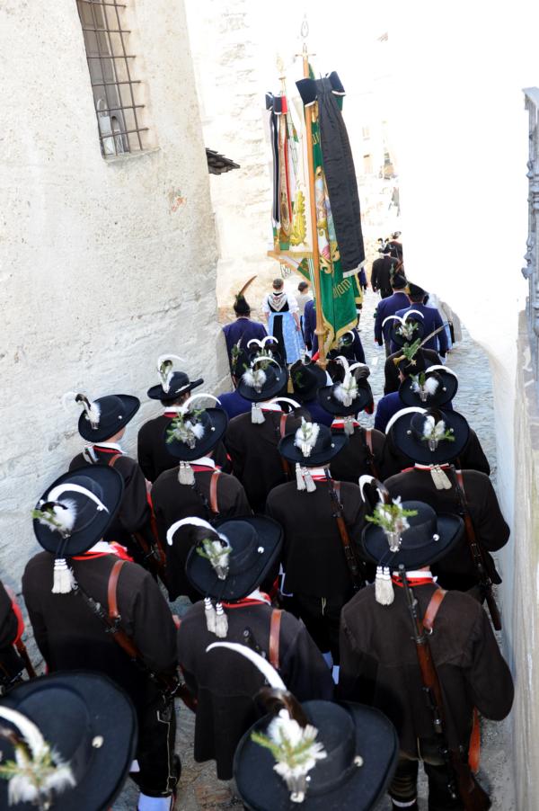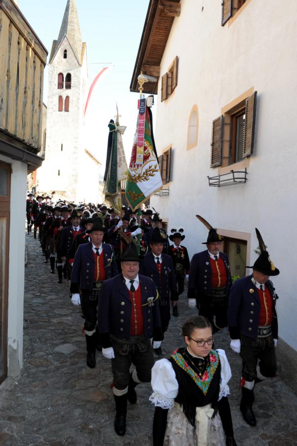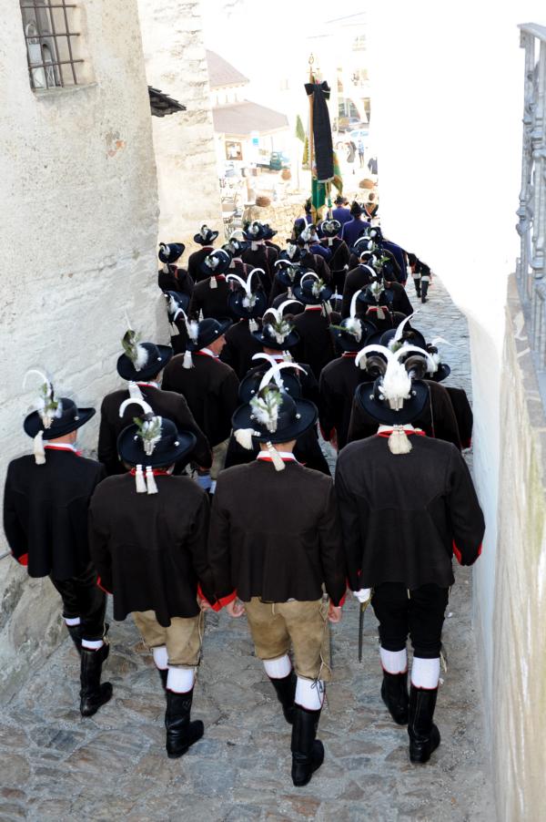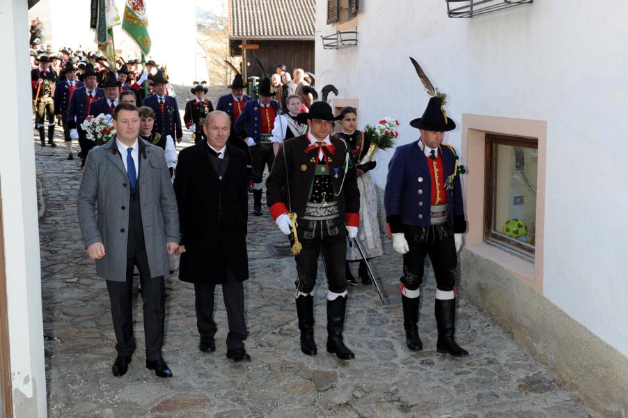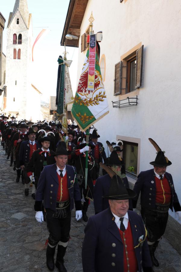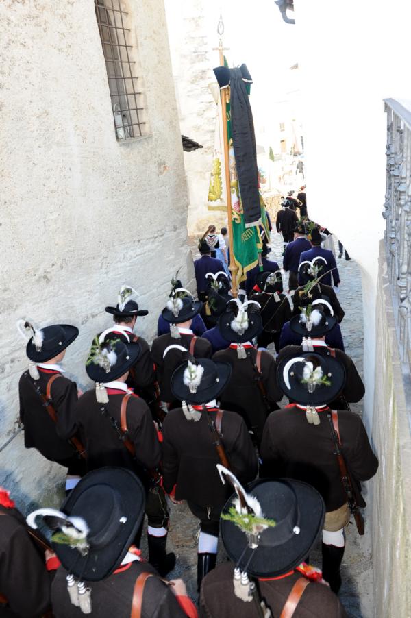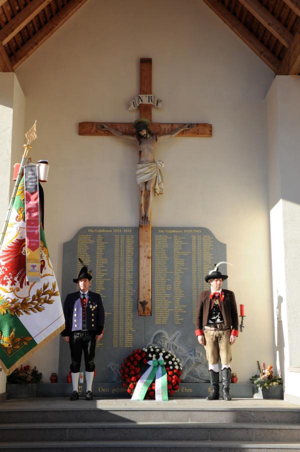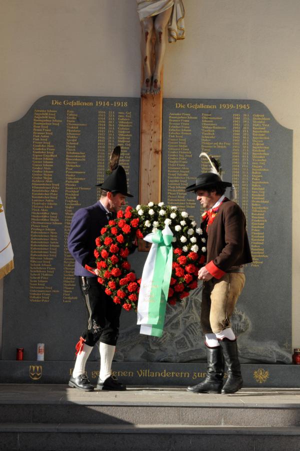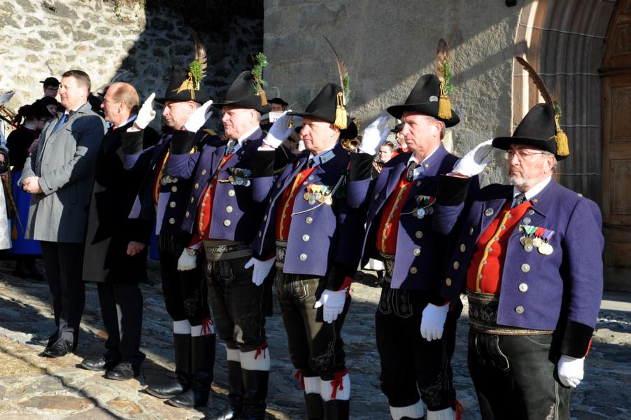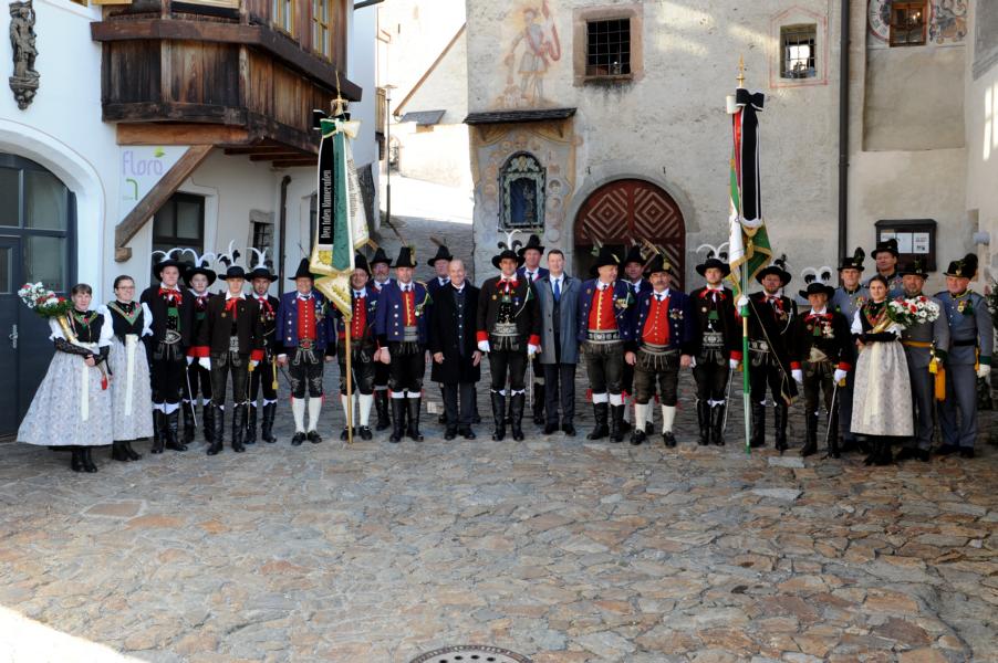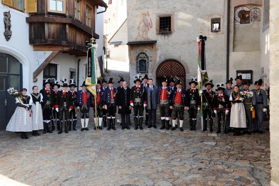 An der Andreas-Hofer-Gedenkfeier haben heuer 29 Schützen, 3 Marketenderinnen, 2 Jungschützen und 3 Jungmarketenderinnen teilgenommen. Weiteres hat eine achtköpfige Fahnenabordnung der Speckbacher Schützen mit Hauptmann Kurt Maier und der Bürgermeister von Absam Arno Guggenbichler an unserer Feier teilgenommen. Arno Guggenbichler hielt anschließend an die heilige Messe am Kriegerdenkmal eine würdige Gedenkrede. Eine Ehrensalve wurde abgefeuert und zu Ehren der Gefallenen mit musikalischer Umrahmung der Musikkapelle Villanders ein Kranz niedergelegt. Nach der Feierlichkeit gingen wir zusammen mit unseren Gästen von der Partnergemeinde Absam und der Musikkapelle zum Steinbock Weißwurst essen. Es war ein geselliges Beisammensein und es wurde viel über die Partnerschaft der Gemeinden Villanders und Absam gesprochen. Zur Erinnerung wurde auch noch ein Gruppenfoto gemacht.