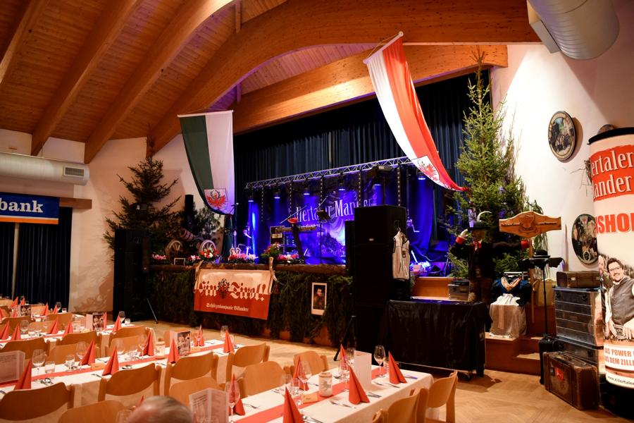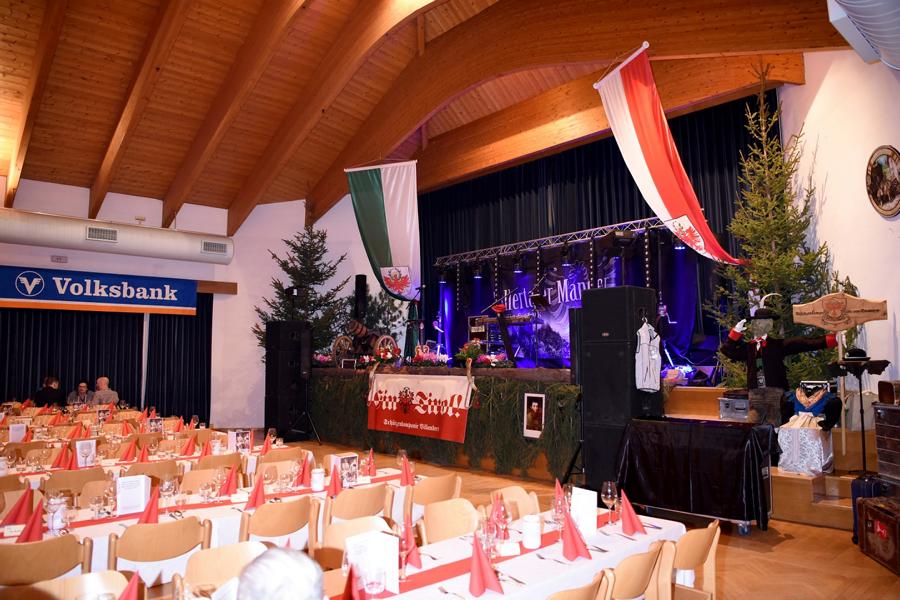 Zusammen mit dem Schützenbezirk Brixen veranstalteten wir heuer zum ersten Mal den Bezirksschützenball bei uns in Villanders. Alle verfügbaren Plätze im Saal waren reserviert, was bisher bei einem Bezirksschützenball nur selten der Fall war. Wir scheuten keine Arbeit für die große Dekoration, die wir auch bei diesem Ball im Kultursaal vorbereiteten.