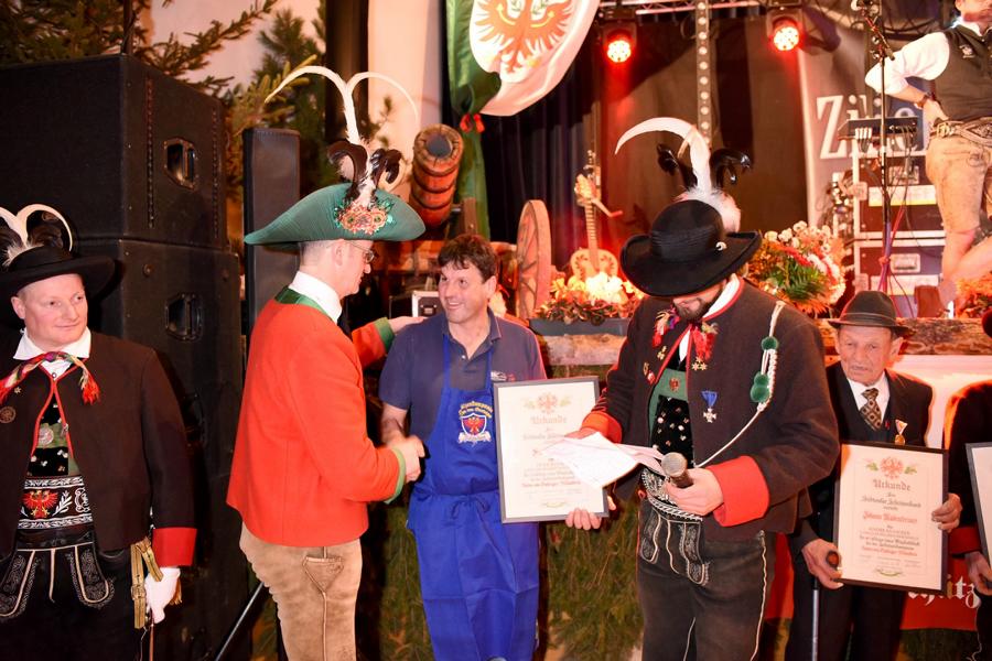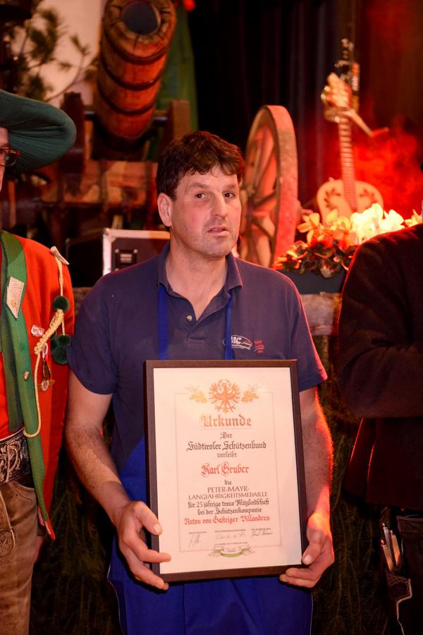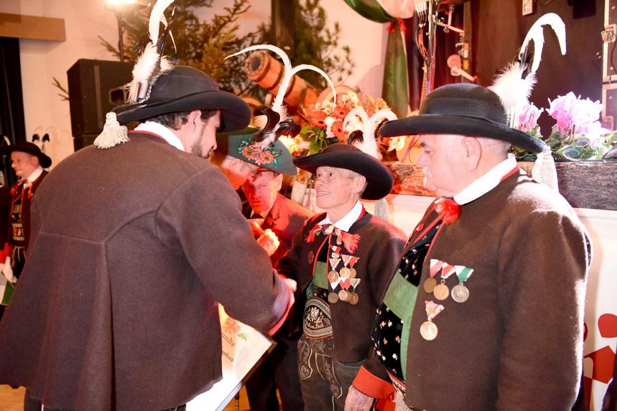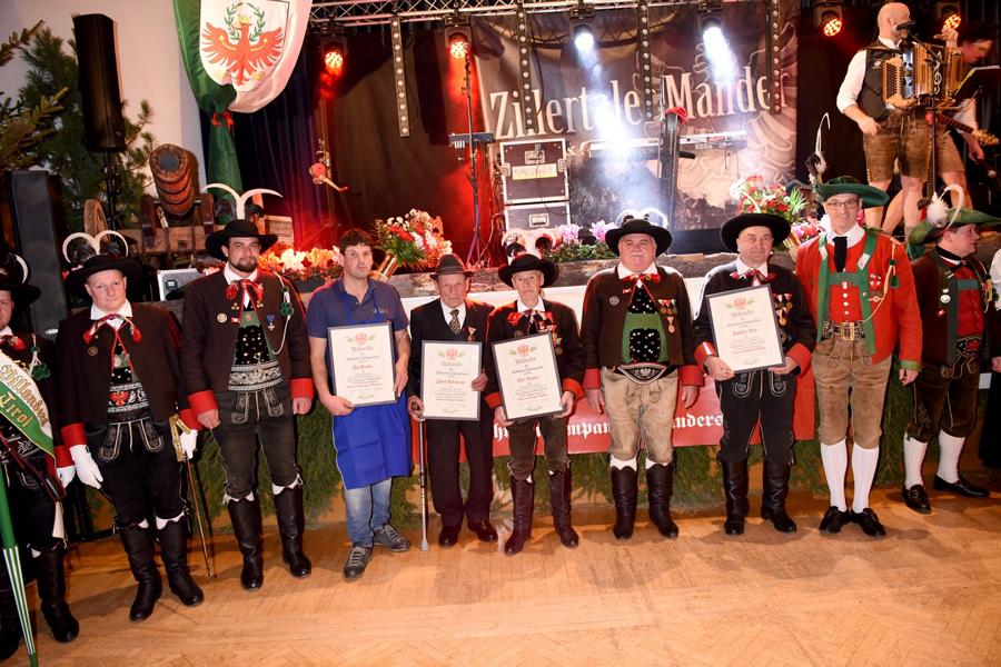 Dieser Abend wurde auch dafür genutzt um Mitglieder von uns für ihre langjährigen Tätigkeiten zu Ehren, nämlich Eltn. Peter Brunner und Johann Rabensteiner 60 Jahre, Engelbert Penn und Josef Crepaz 40 Jahre, Karl Gruber 25 Jahre.