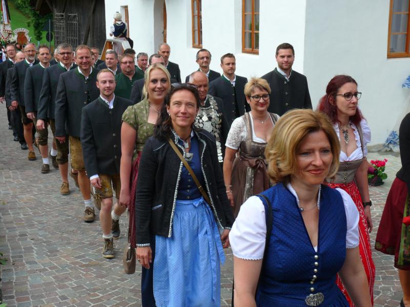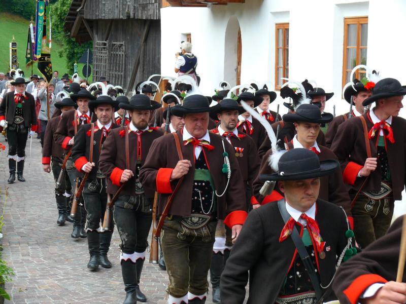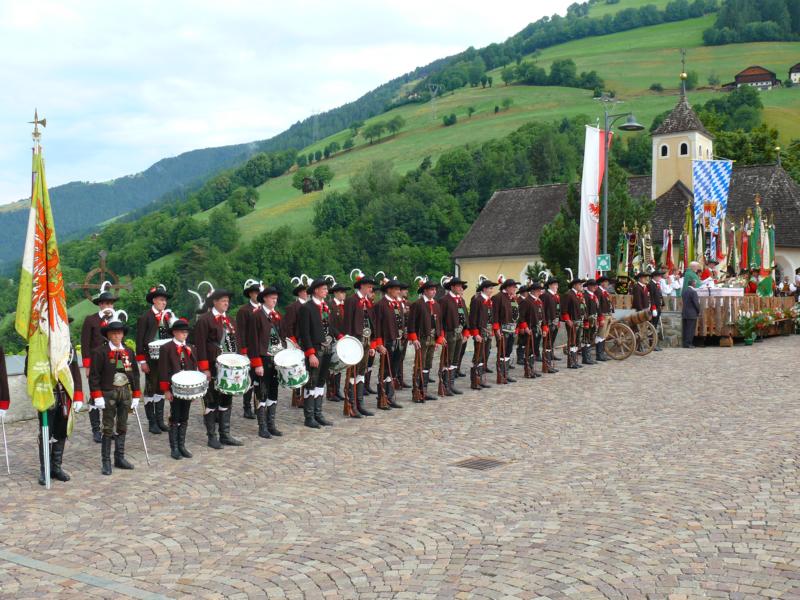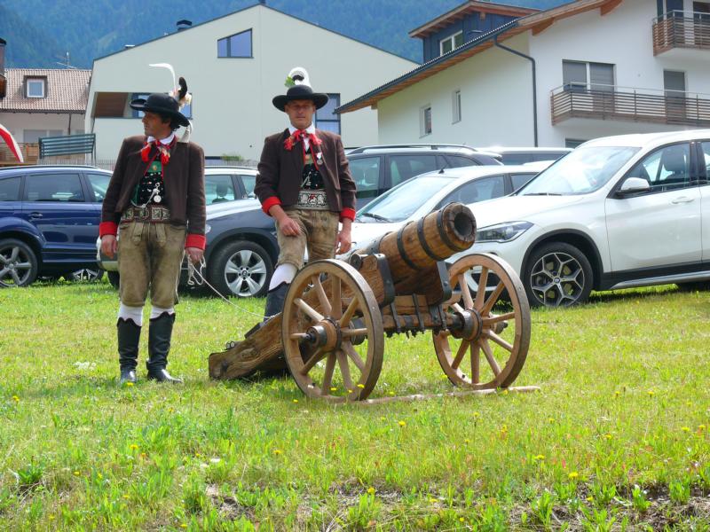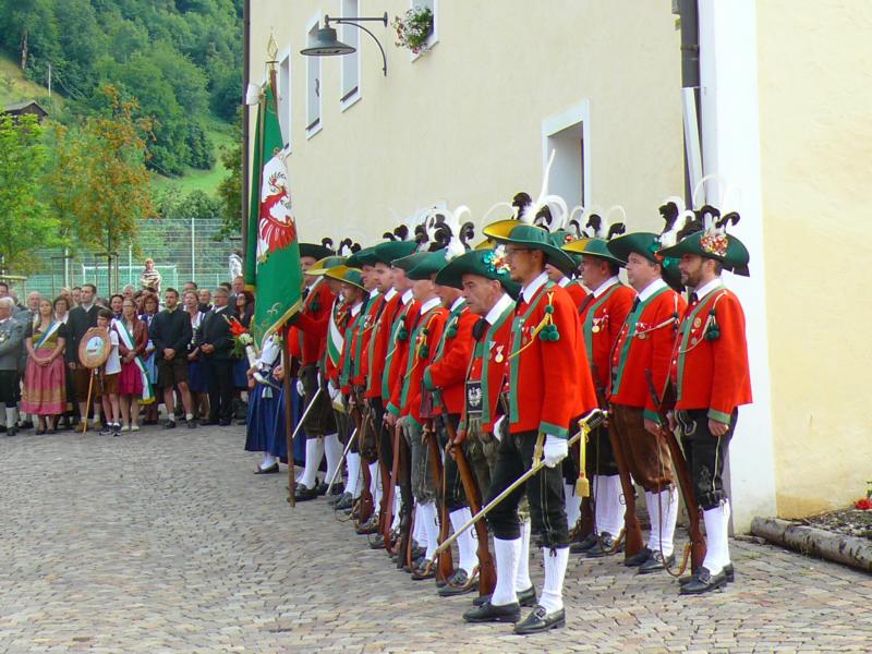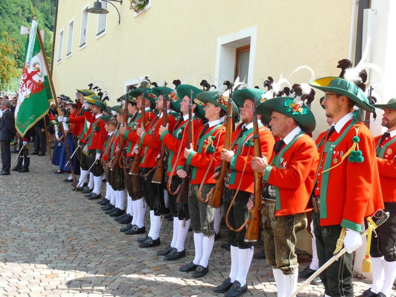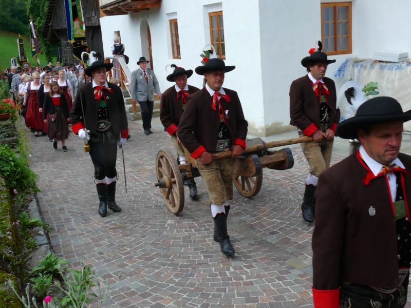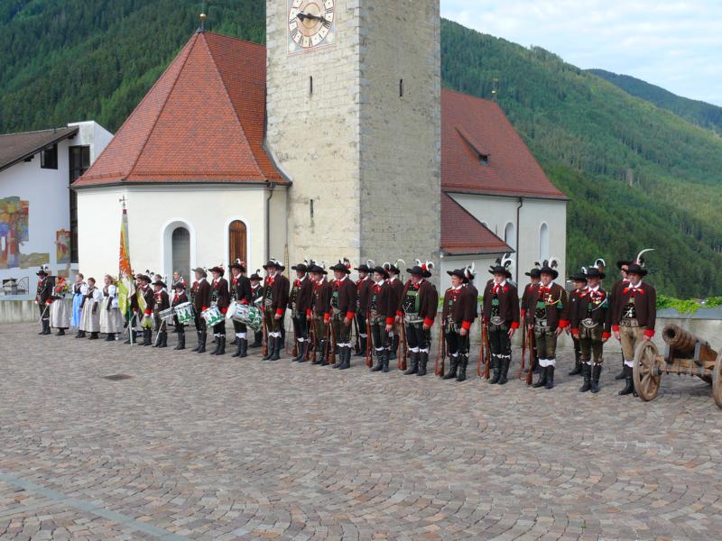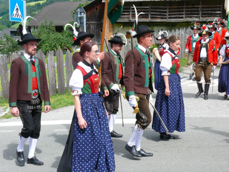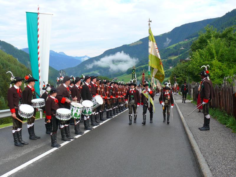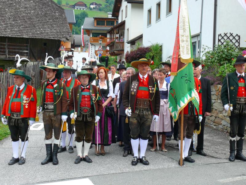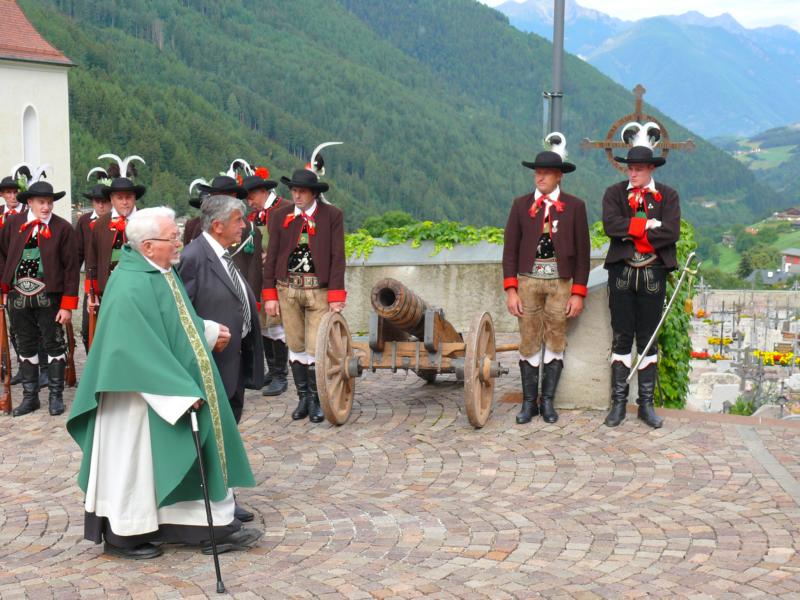 Bereits um 7 Uhr morgens trafen wir uns im Dorf und machten uns mit einem Bus Richtung Lüsen. Nach der Aufstellung, Frontabschreitung und Einzug folgte um 9 Uhr die Feldmesse auf dem Widumhof. Nach der Messe und einer gelungenen Ehrensalve ging der Festumzug mit Defilierung durchs Dorf los. Als wir an Festbesuchern vorbeimarschierten, ertönte lauter Beifall und viel Lob für unser Erscheinungsbild. Ein besonderes Highlight war unter anderem, dass unsere Jungmarketenderinnen beim Einzug mit der Schwegelpfeife spielten aber auch, dass wir unsere Kanone mitführten. An diesem Tag dabei waren 33 Schützen, 6 Marketenderinnen, 1 Jungschütze und 4 Jungmarketenderinnen.