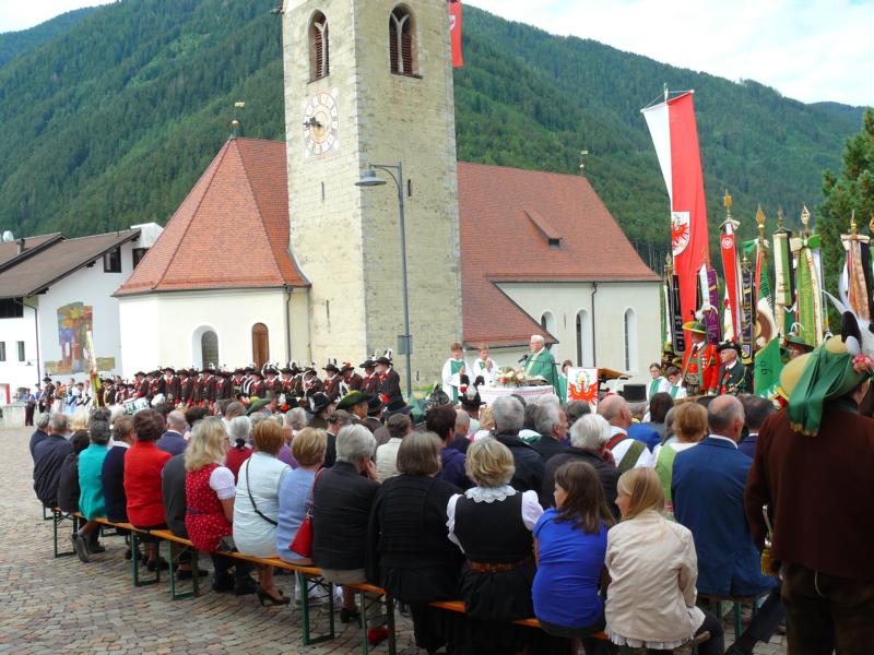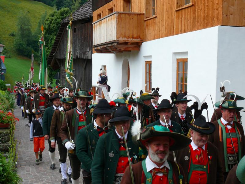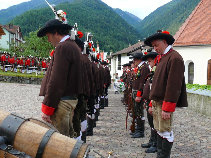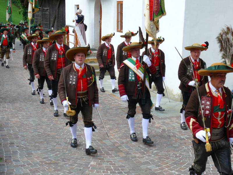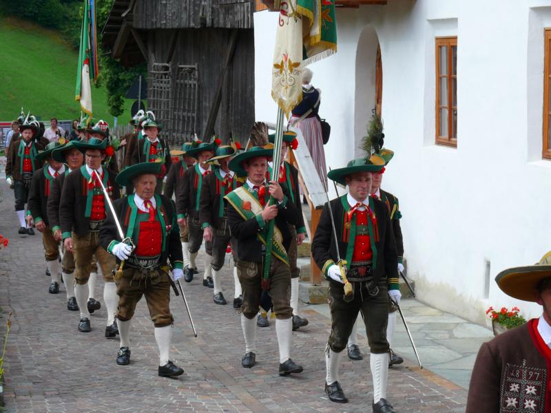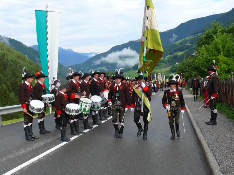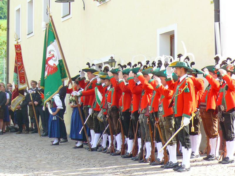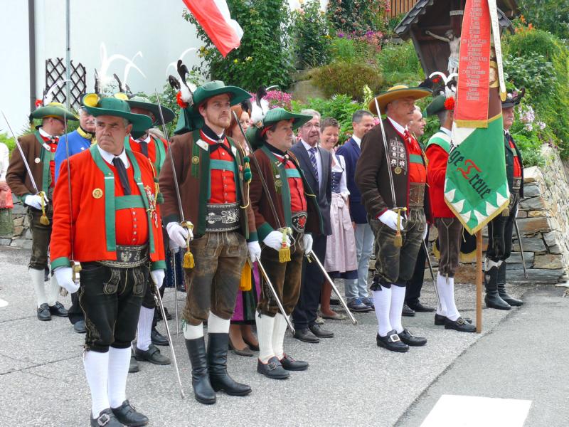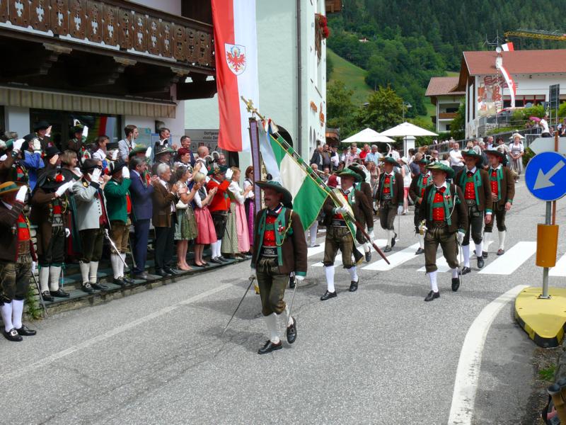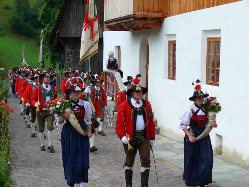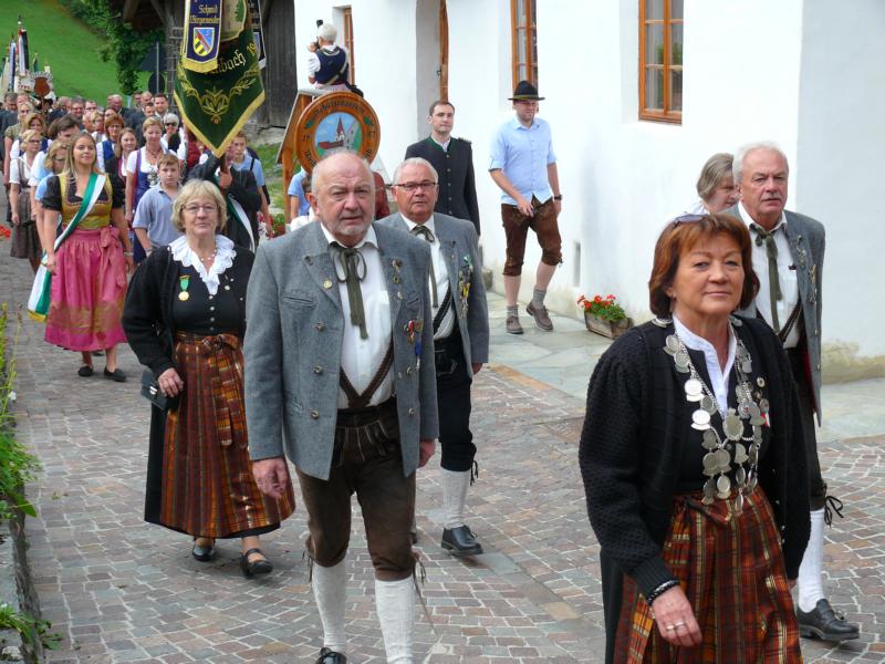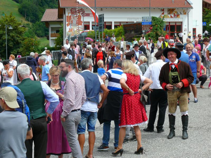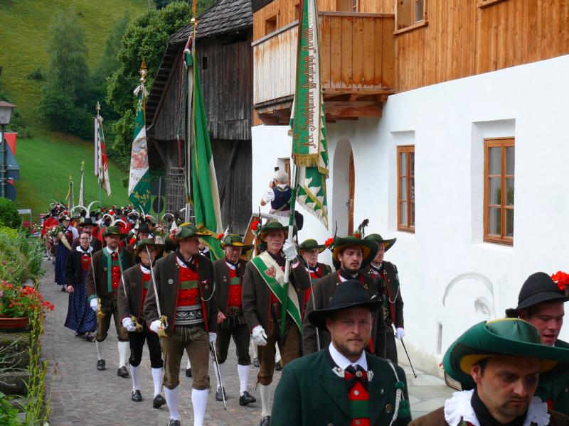 Bereits um 7 Uhr morgens trafen wir uns im Dorf und machten uns mit einem Bus Richtung Lüsen. Nach der Aufstellung, Frontabschreitung und Einzug folgte um 9 Uhr die Feldmesse auf dem Widumhof. Nach der Messe und einer gelungenen Ehrensalve ging der Festumzug mit Defilierung durchs Dorf los. Als wir an Festbesuchern vorbeimarschierten, ertönte lauter Beifall und viel Lob für unser Erscheinungsbild. Ein besonderes Highlight war unter anderem, dass unsere Jungmarketenderinnen beim Einzug mit der Schwegelpfeife spielten aber auch, dass wir unsere Kanone mitführten. An diesem Tag dabei waren 33 Schützen, 6 Marketenderinnen, 1 Jungschütze und 4 Jungmarketenderinnen.