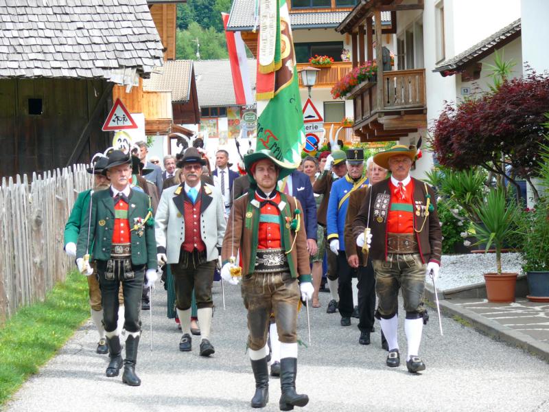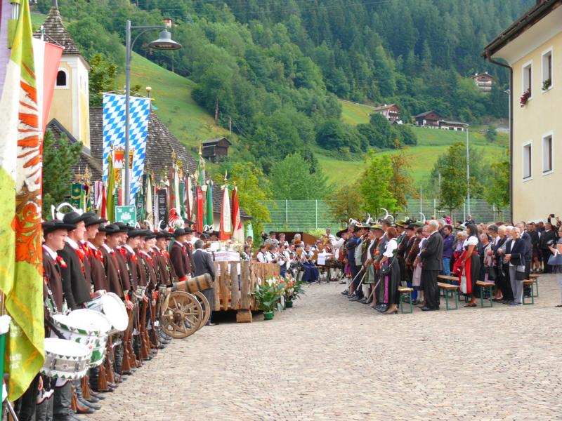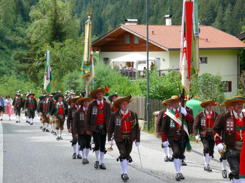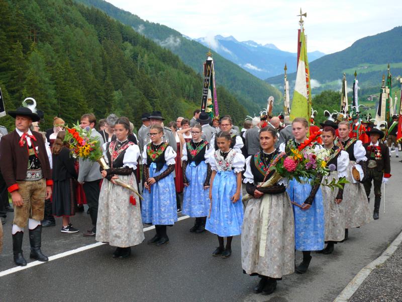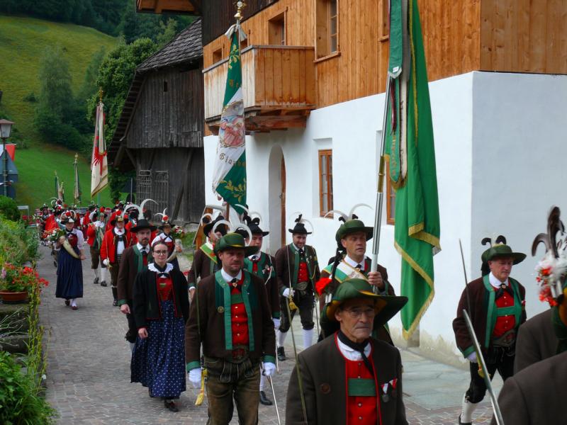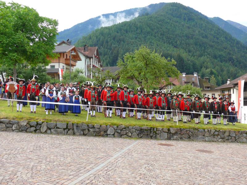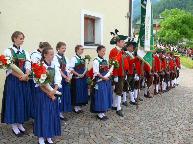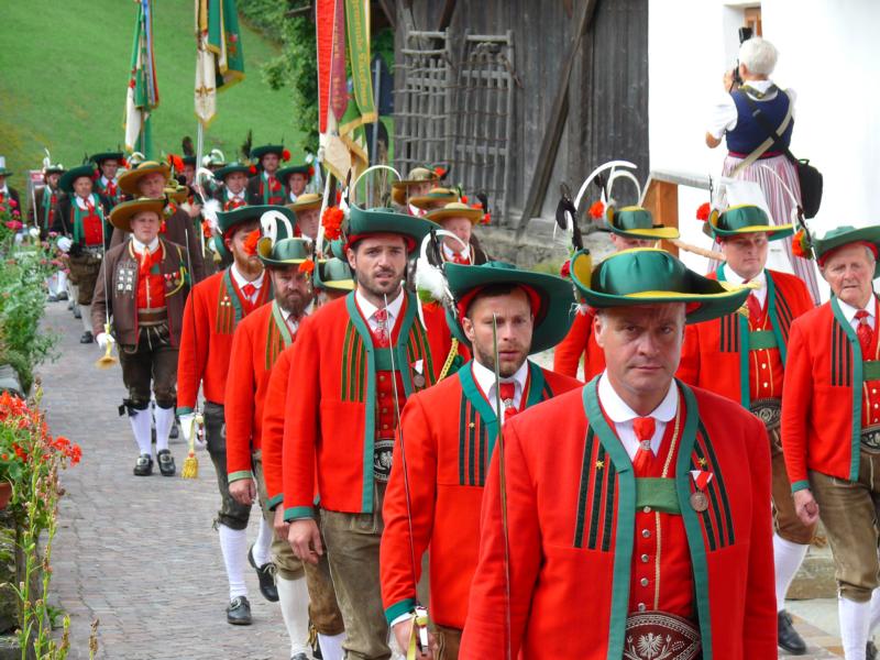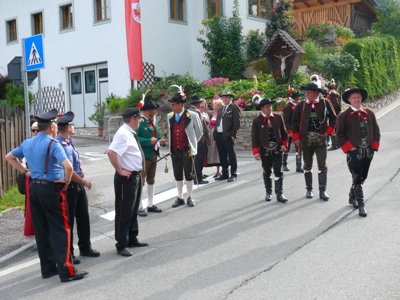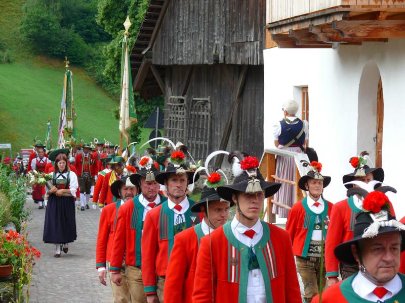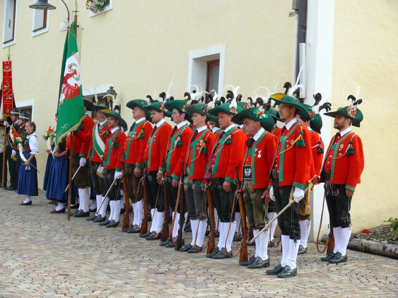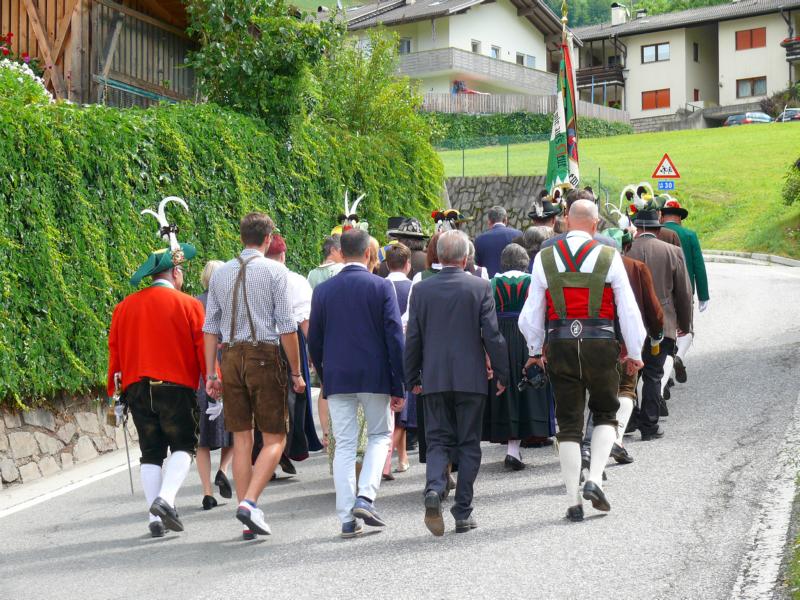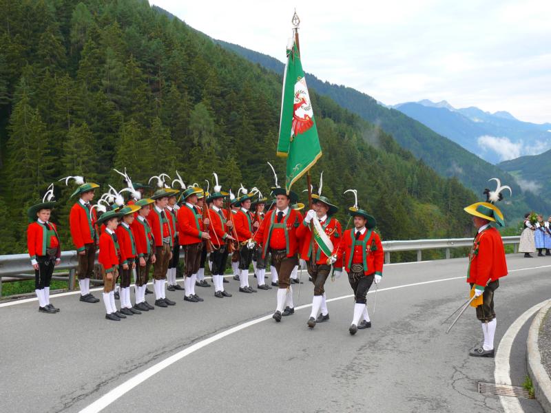 Bereits um 7 Uhr morgens trafen wir uns im Dorf und machten uns mit einem Bus Richtung Lüsen. Nach der Aufstellung, Frontabschreitung und Einzug folgte um 9 Uhr die Feldmesse auf dem Widumhof. Nach der Messe und einer gelungenen Ehrensalve ging der Festumzug mit Defilierung durchs Dorf los. Als wir an Festbesuchern vorbeimarschierten, ertönte lauter Beifall und viel Lob für unser Erscheinungsbild. Ein besonderes Highlight war unter anderem, dass unsere Jungmarketenderinnen beim Einzug mit der Schwegelpfeife spielten aber auch, dass wir unsere Kanone mitführten. An diesem Tag dabei waren 33 Schützen, 6 Marketenderinnen, 1 Jungschütze und 4 Jungmarketenderinnen.