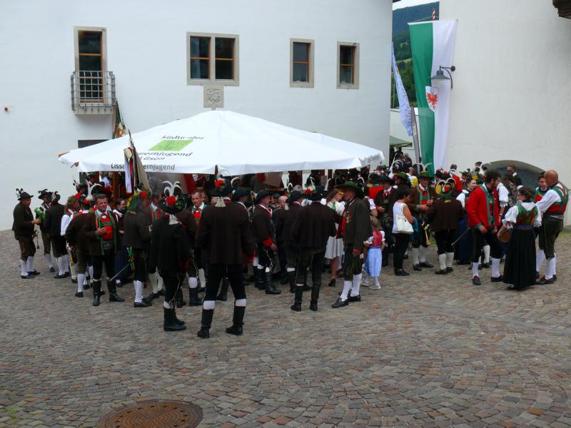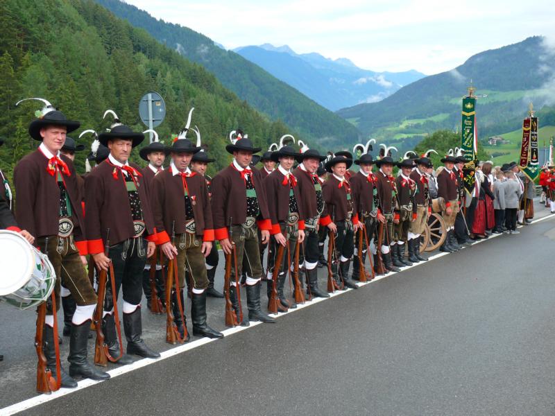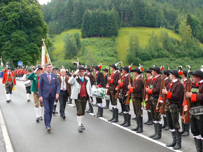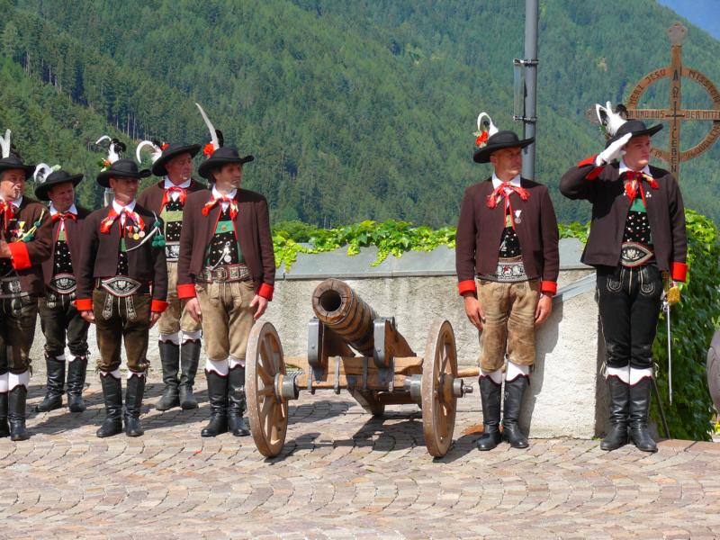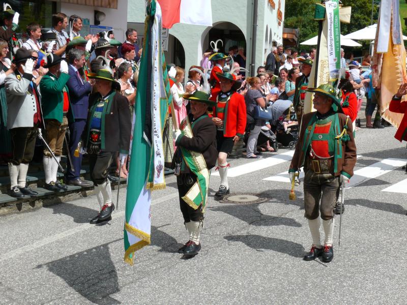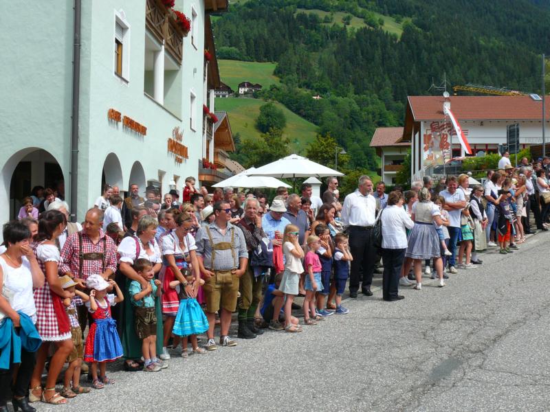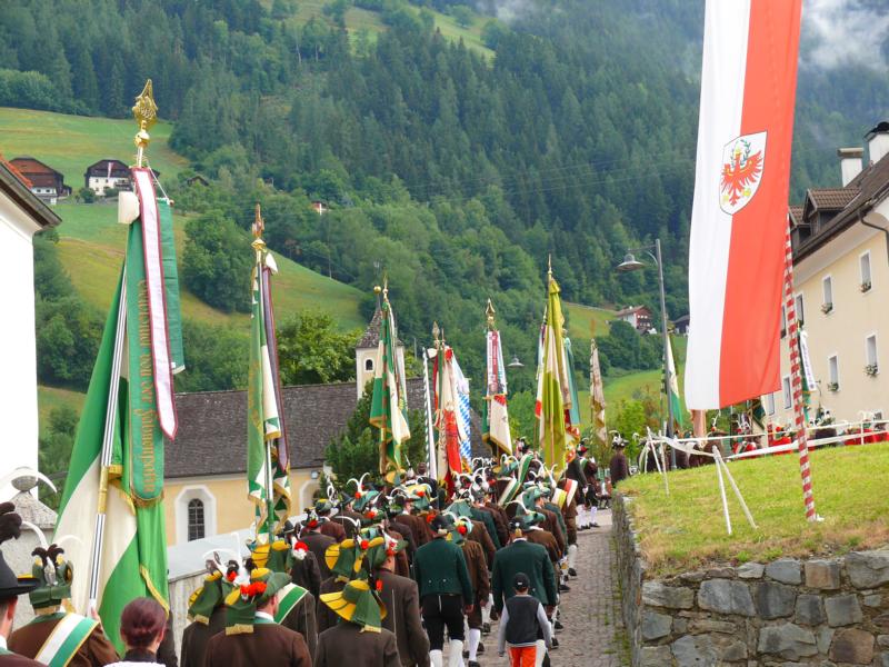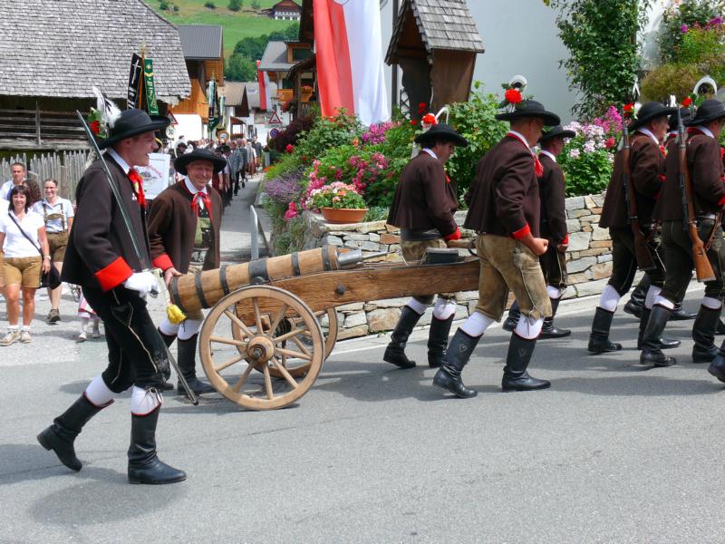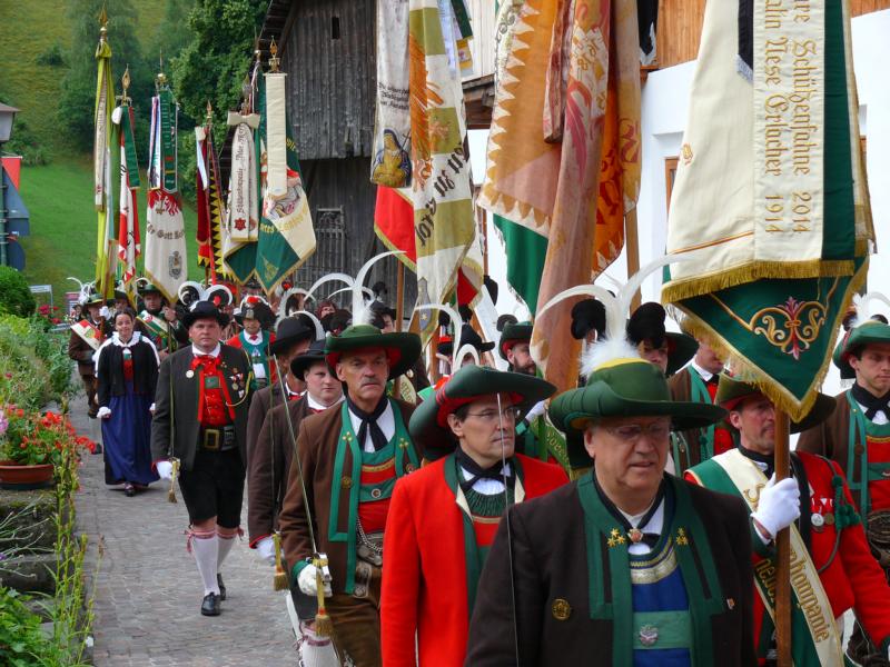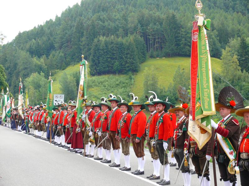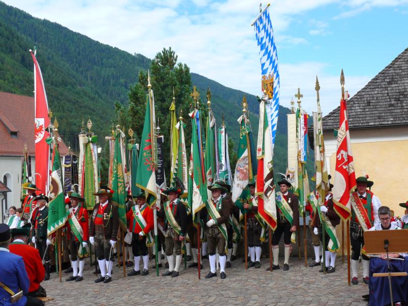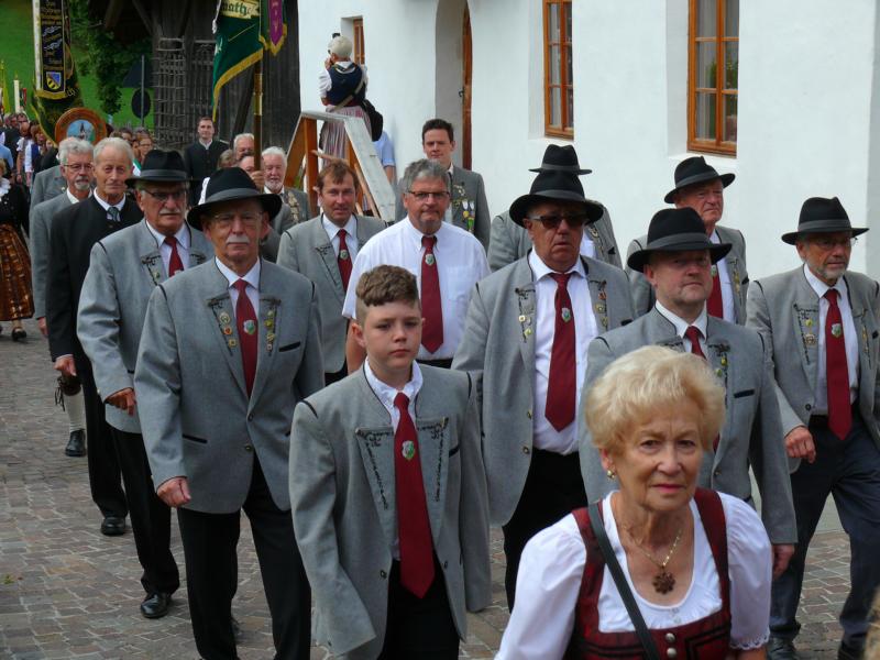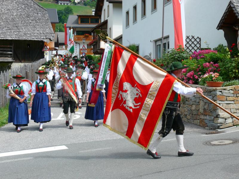 Bereits um 7 Uhr morgens trafen wir uns im Dorf und machten uns mit einem Bus Richtung Lüsen. Nach der Aufstellung, Frontabschreitung und Einzug folgte um 9 Uhr die Feldmesse auf dem Widumhof. Nach der Messe und einer gelungenen Ehrensalve ging der Festumzug mit Defilierung durchs Dorf los. Als wir an Festbesuchern vorbeimarschierten, ertönte lauter Beifall und viel Lob für unser Erscheinungsbild. Ein besonderes Highlight war unter anderem, dass unsere Jungmarketenderinnen beim Einzug mit der Schwegelpfeife spielten aber auch, dass wir unsere Kanone mitführten. An diesem Tag dabei waren 33 Schützen, 6 Marketenderinnen, 1 Jungschütze und 4 Jungmarketenderinnen.