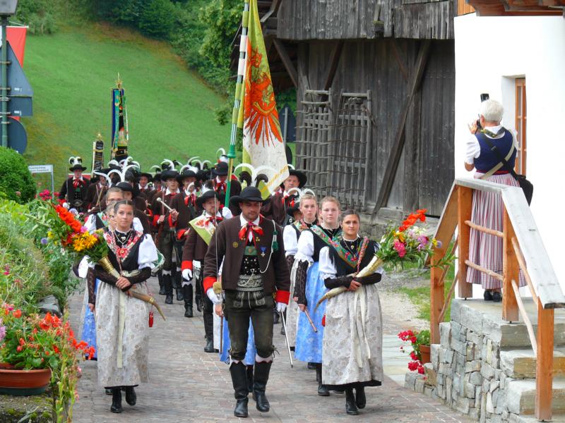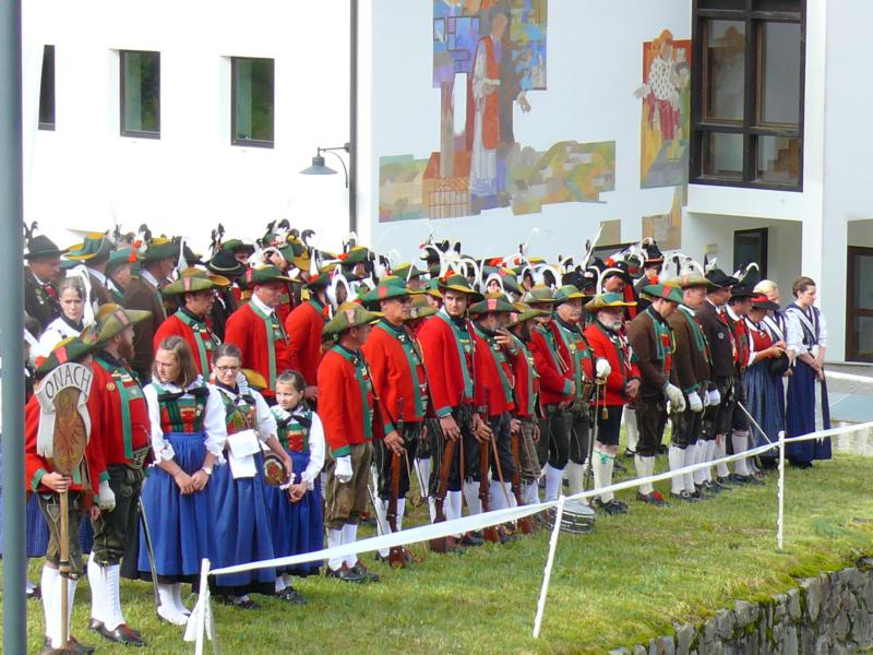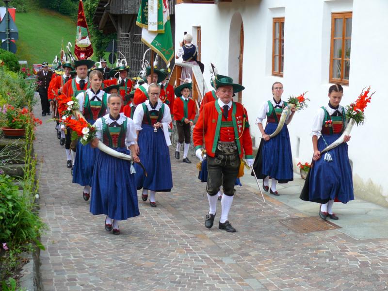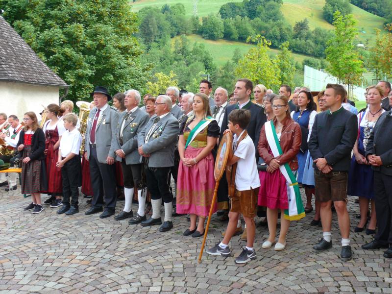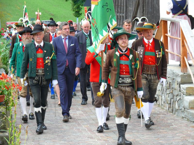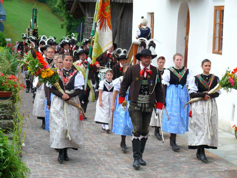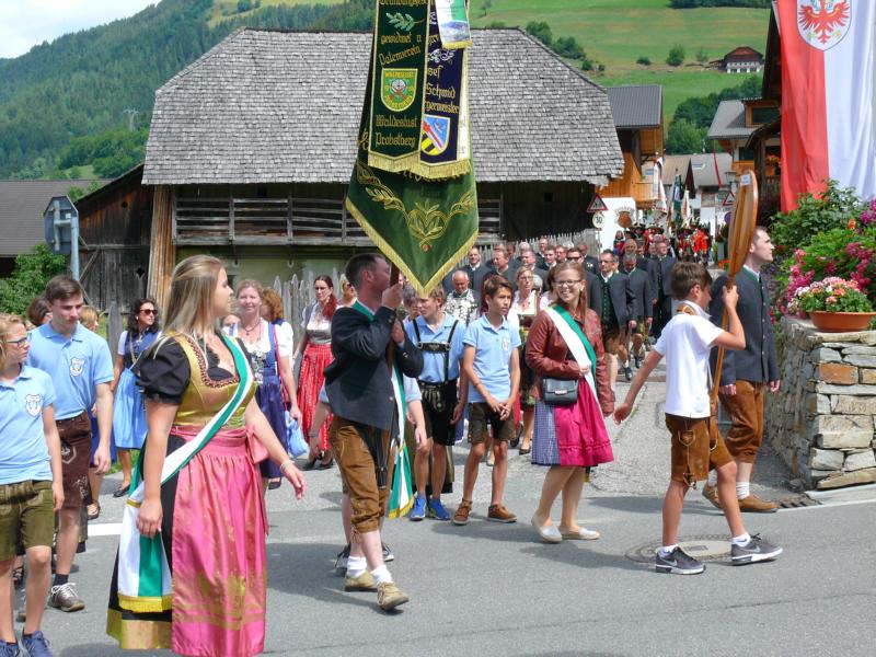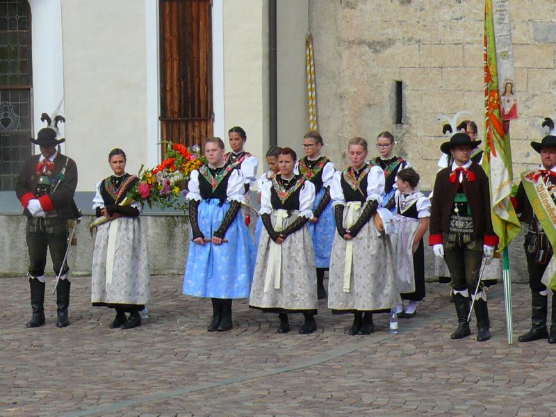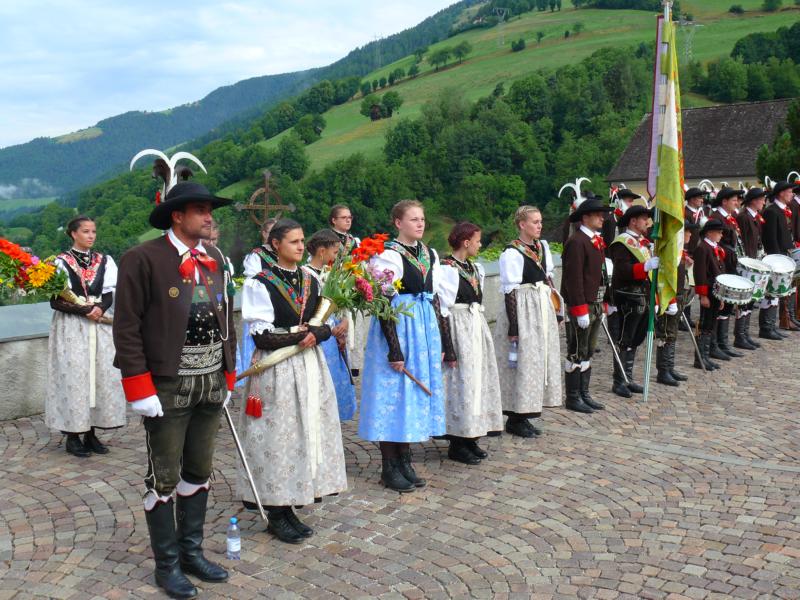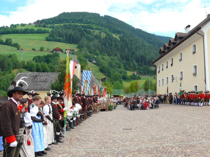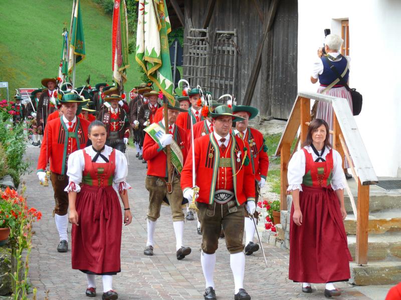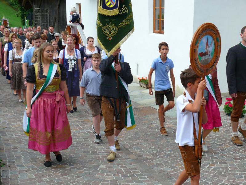 Bereits um 7 Uhr morgens trafen wir uns im Dorf und machten uns mit einem Bus Richtung Lüsen. Nach der Aufstellung, Frontabschreitung und Einzug folgte um 9 Uhr die Feldmesse auf dem Widumhof. Nach der Messe und einer gelungenen Ehrensalve ging der Festumzug mit Defilierung durchs Dorf los. Als wir an Festbesuchern vorbeimarschierten, ertönte lauter Beifall und viel Lob für unser Erscheinungsbild. Ein besonderes Highlight war unter anderem, dass unsere Jungmarketenderinnen beim Einzug mit der Schwegelpfeife spielten aber auch, dass wir unsere Kanone mitführten. An diesem Tag dabei waren 33 Schützen, 6 Marketenderinnen, 1 Jungschütze und 4 Jungmarketenderinnen.