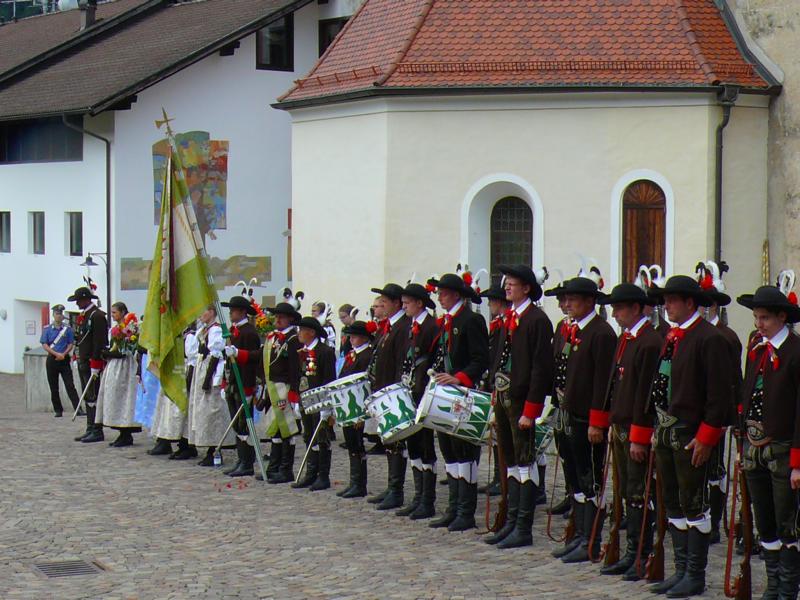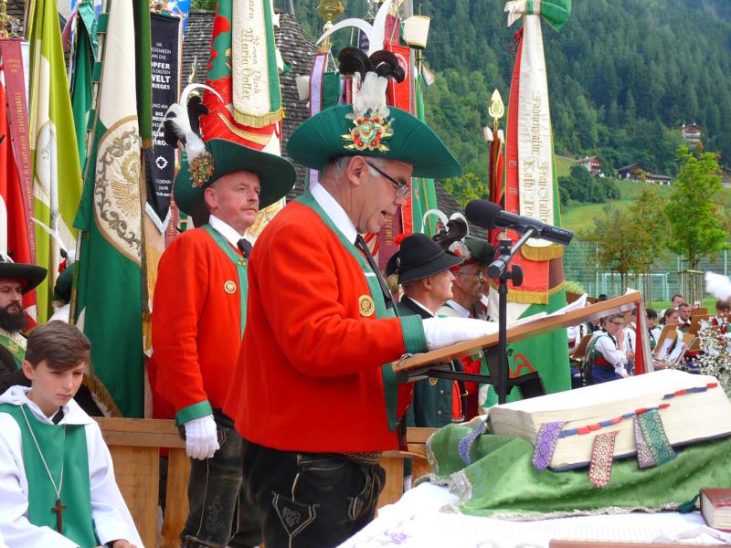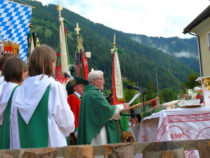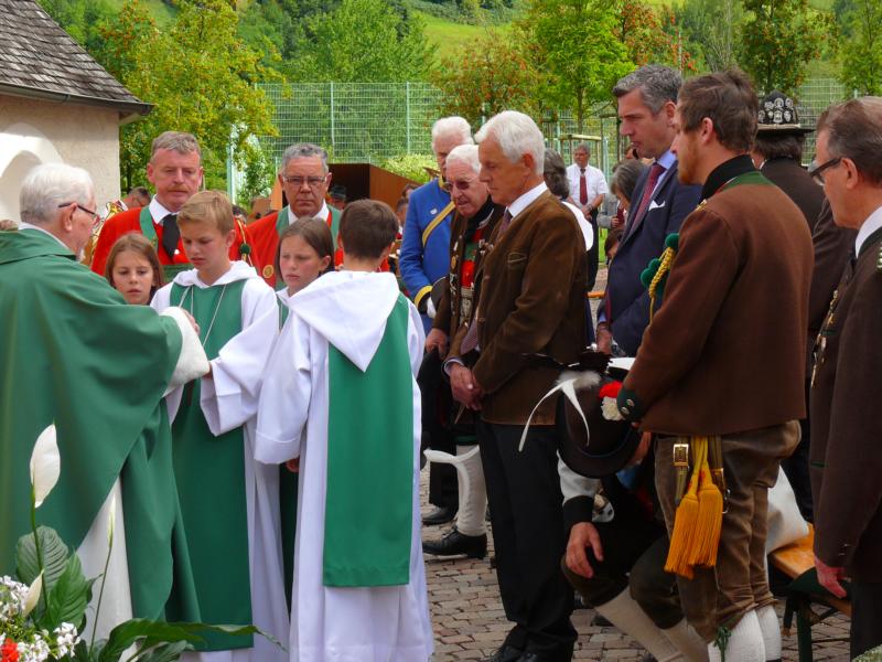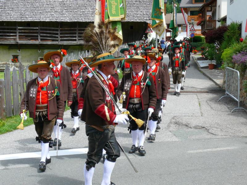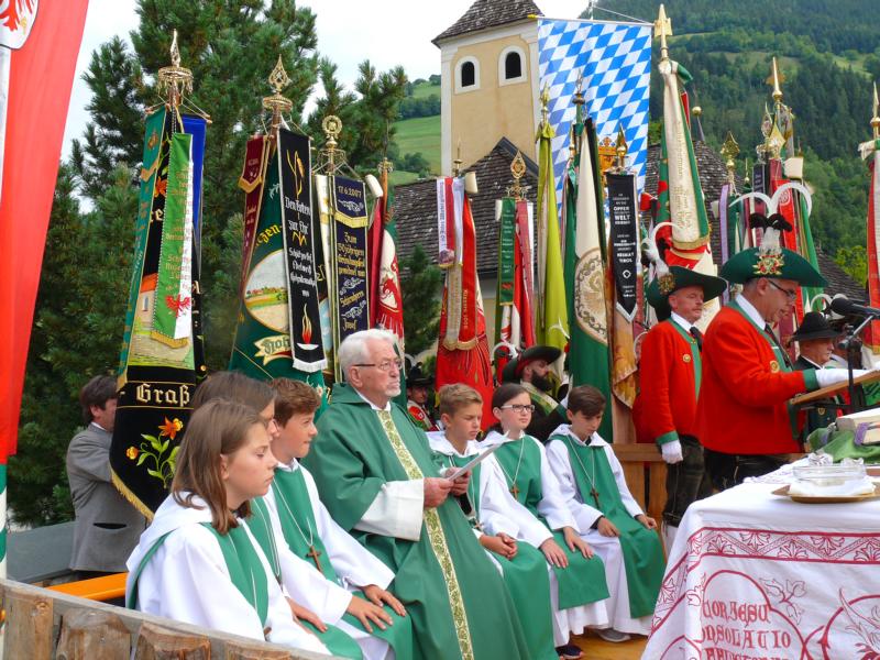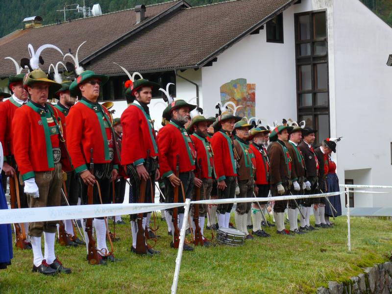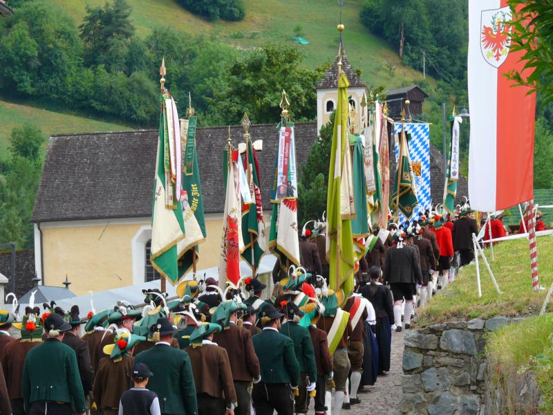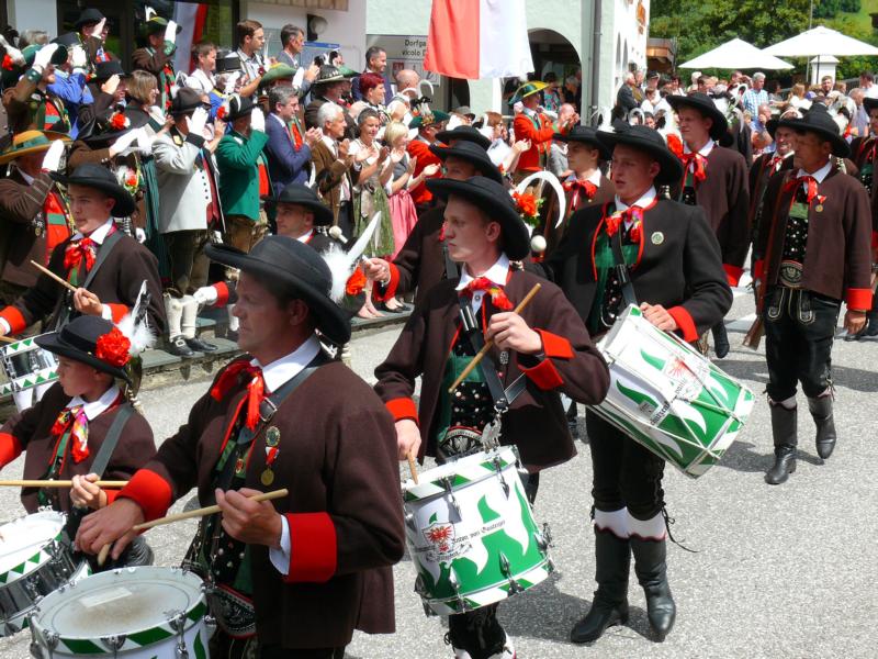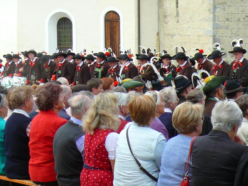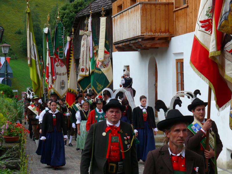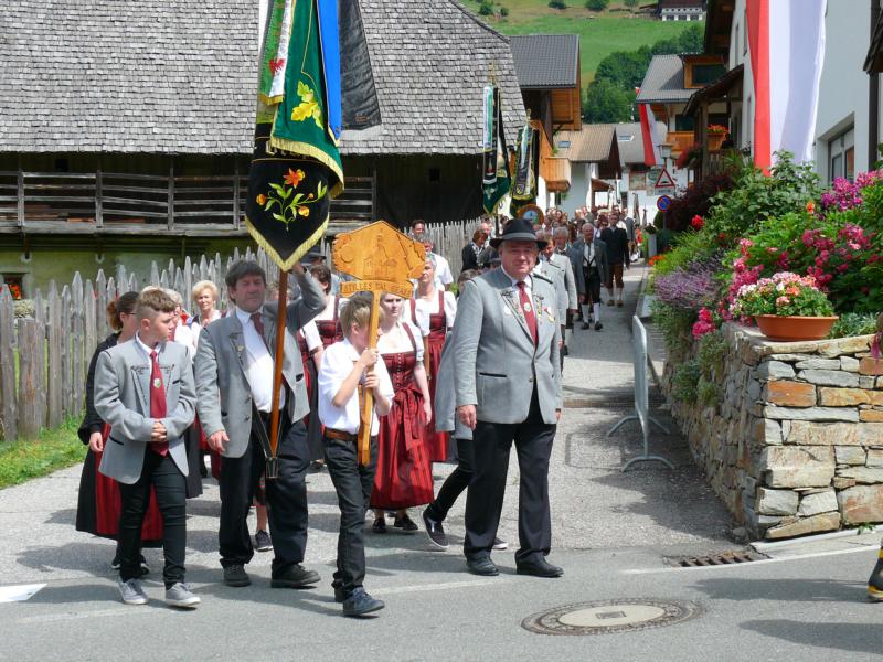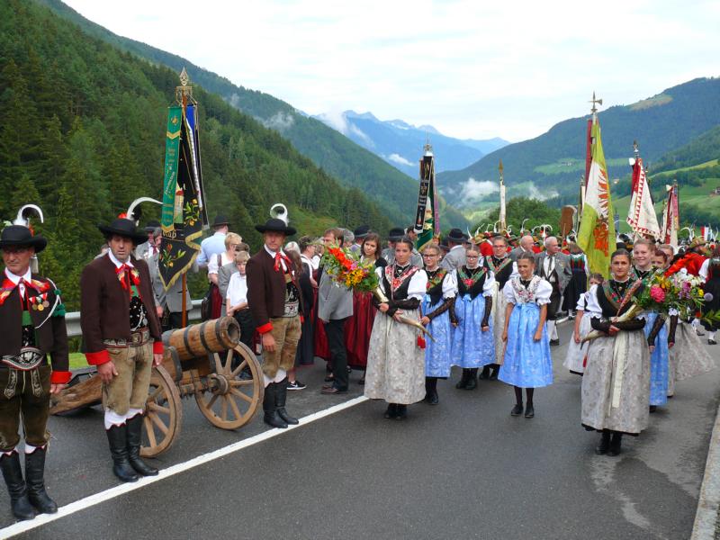 Bereits um 7 Uhr morgens trafen wir uns im Dorf und machten uns mit einem Bus Richtung Lüsen. Nach der Aufstellung, Frontabschreitung und Einzug folgte um 9 Uhr die Feldmesse auf dem Widumhof. Nach der Messe und einer gelungenen Ehrensalve ging der Festumzug mit Defilierung durchs Dorf los. Als wir an Festbesuchern vorbeimarschierten, ertönte lauter Beifall und viel Lob für unser Erscheinungsbild. Ein besonderes Highlight war unter anderem, dass unsere Jungmarketenderinnen beim Einzug mit der Schwegelpfeife spielten aber auch, dass wir unsere Kanone mitführten. An diesem Tag dabei waren 33 Schützen, 6 Marketenderinnen, 1 Jungschütze und 4 Jungmarketenderinnen.