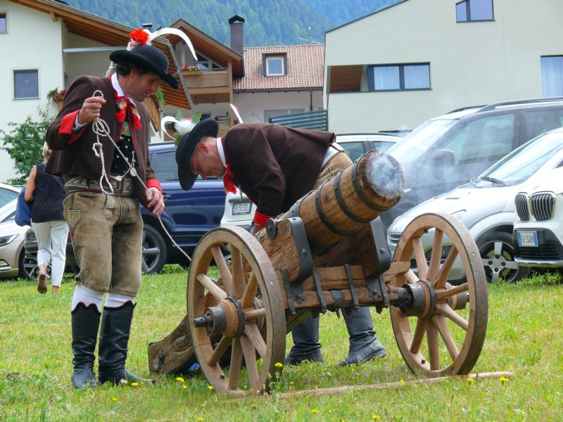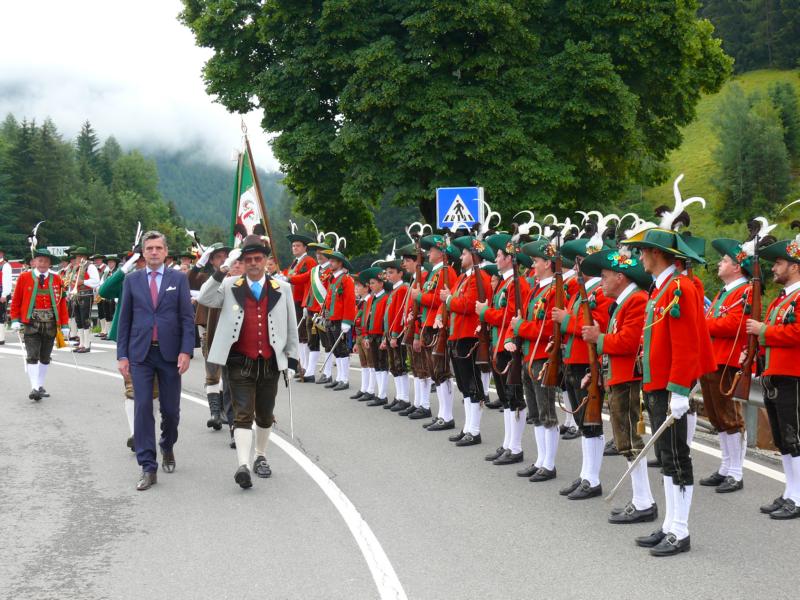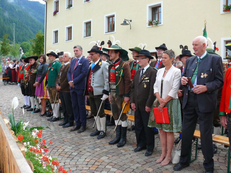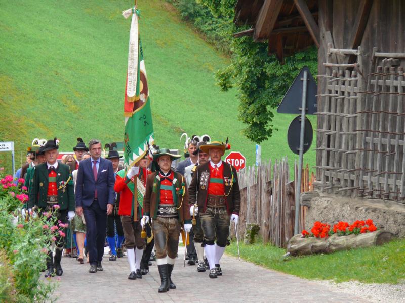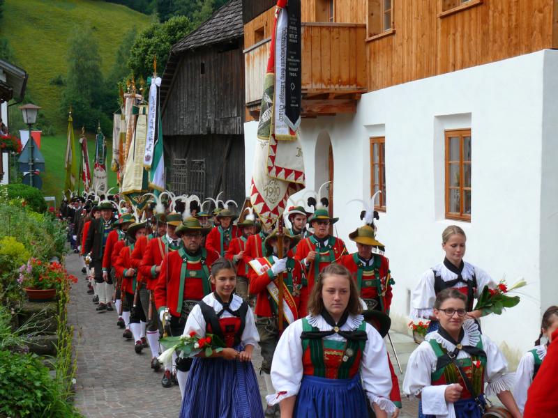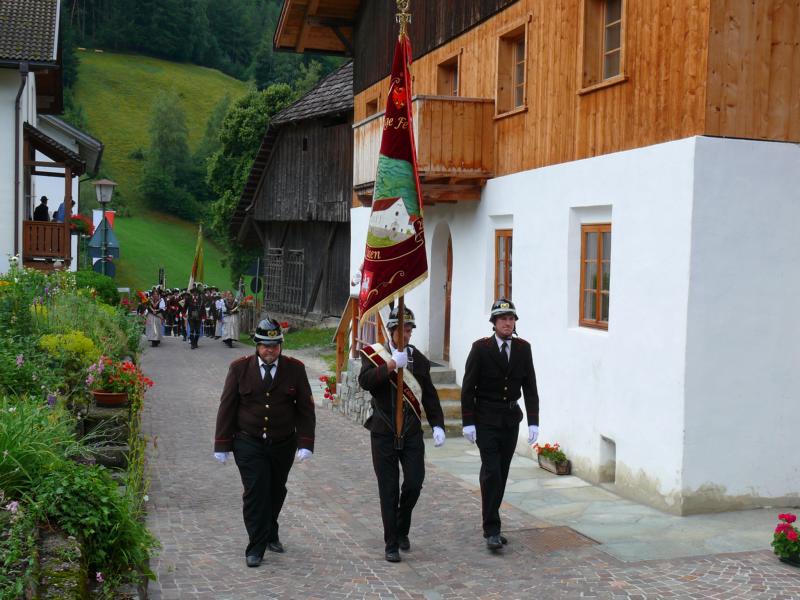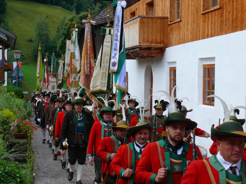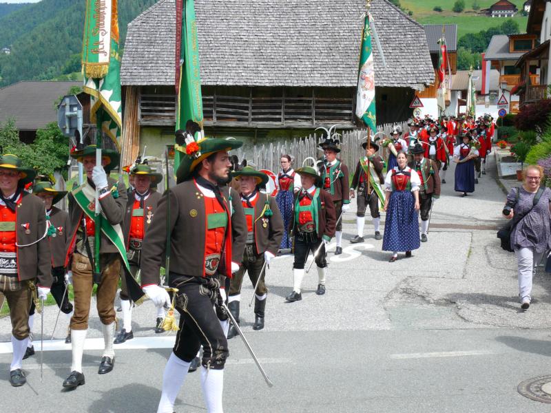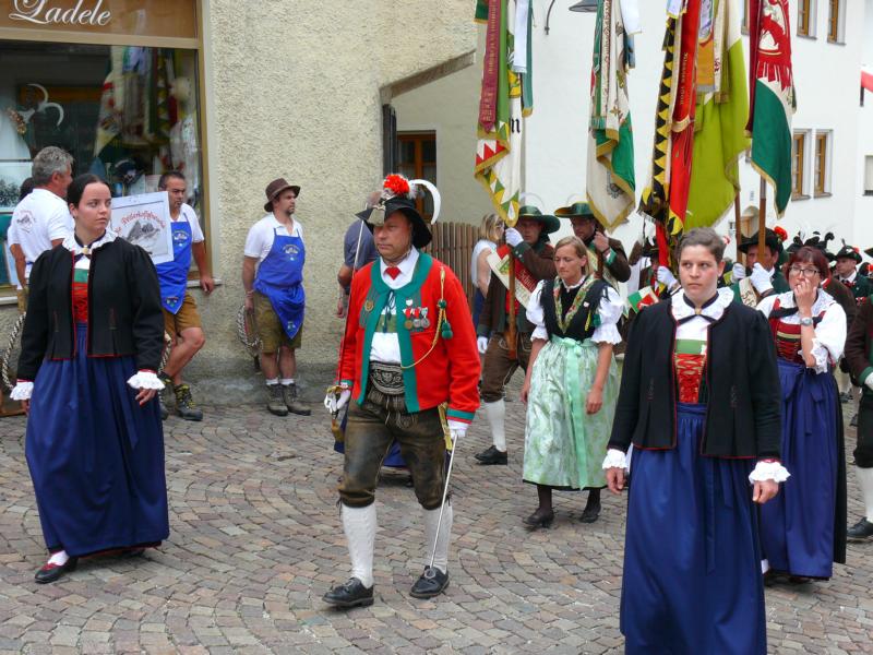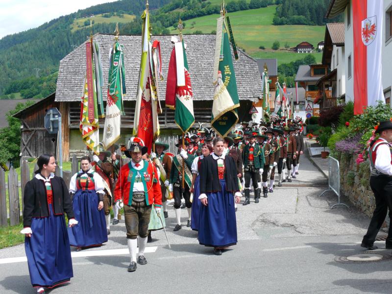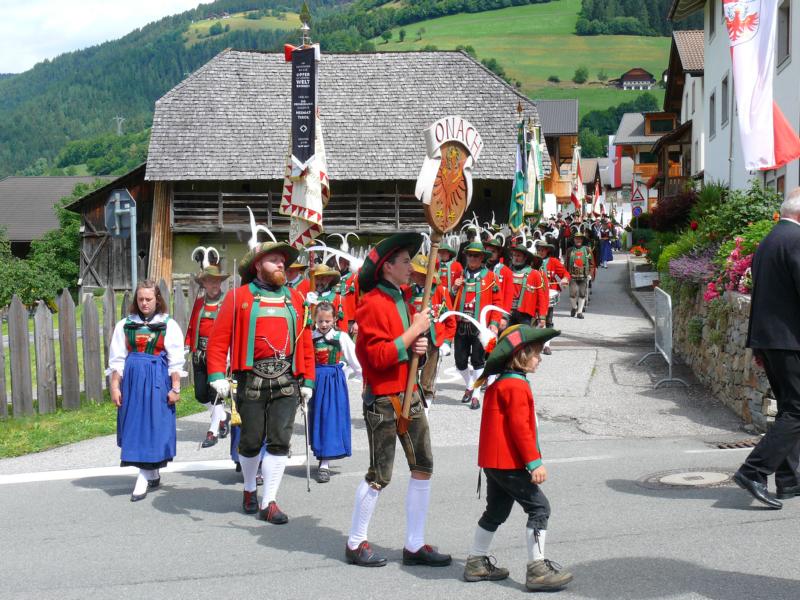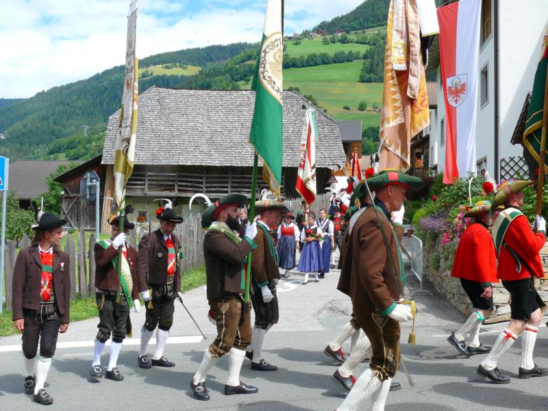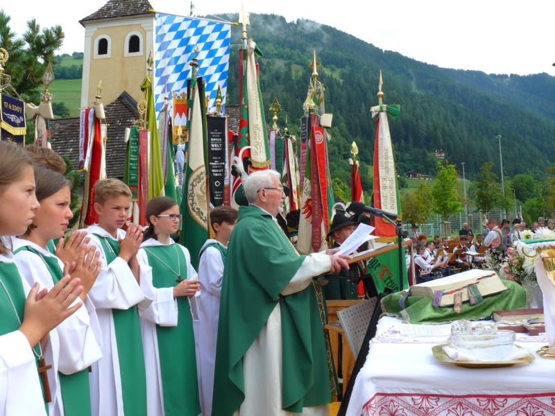Bereits um 7 Uhr morgens trafen wir uns im Dorf und machten uns mit einem Bus Richtung Lüsen. Nach der Aufstellung, Frontabschreitung und Einzug folgte um 9 Uhr die Feldmesse auf dem Widumhof. Nach der Messe und einer gelungenen Ehrensalve ging der Festumzug mit Defilierung durchs Dorf los. Als wir an Festbesuchern vorbeimarschierten, ertönte lauter Beifall und viel Lob für unser Erscheinungsbild. Ein besonderes Highlight war unter anderem, dass unsere Jungmarketenderinnen beim Einzug mit der Schwegelpfeife spielten aber auch, dass wir unsere Kanone mitführten. An diesem Tag dabei waren 33 Schützen, 6 Marketenderinnen, 1 Jungschütze und 4 Jungmarketenderinnen.