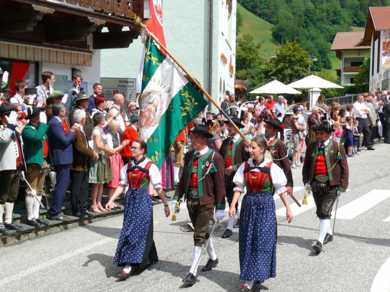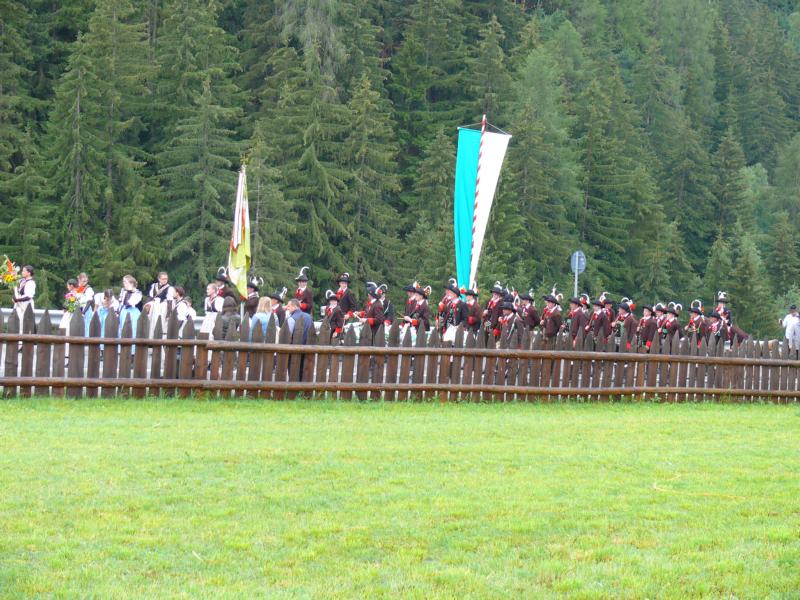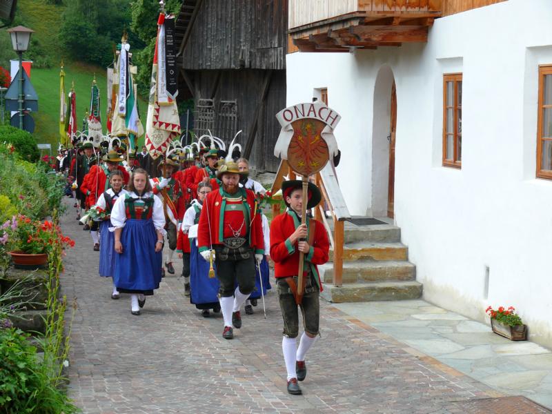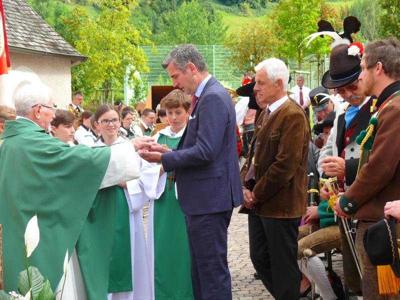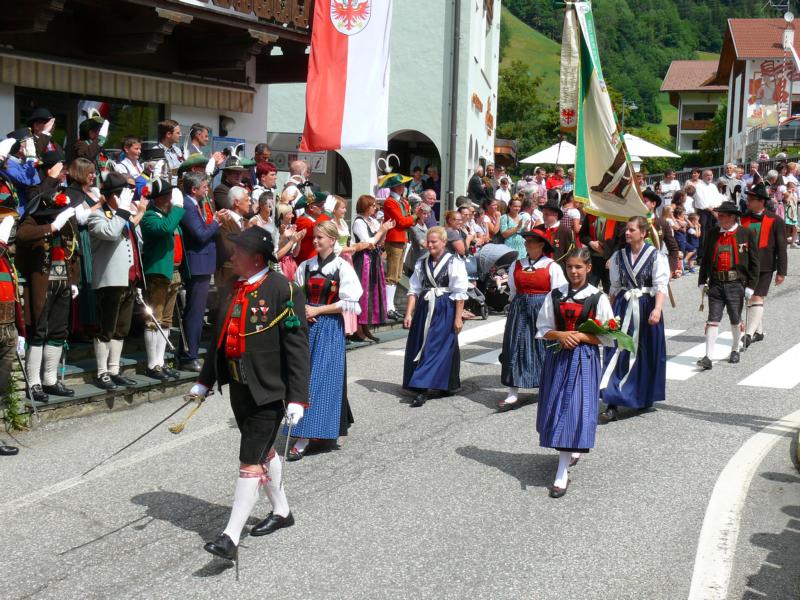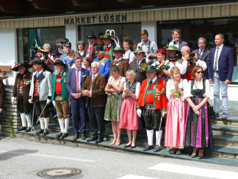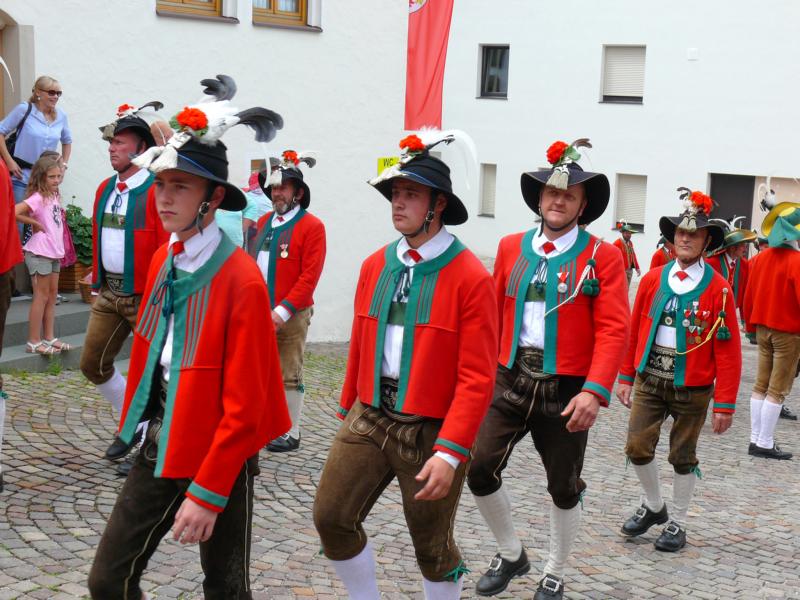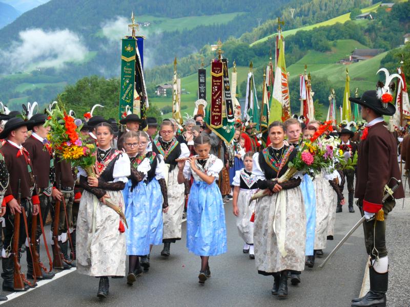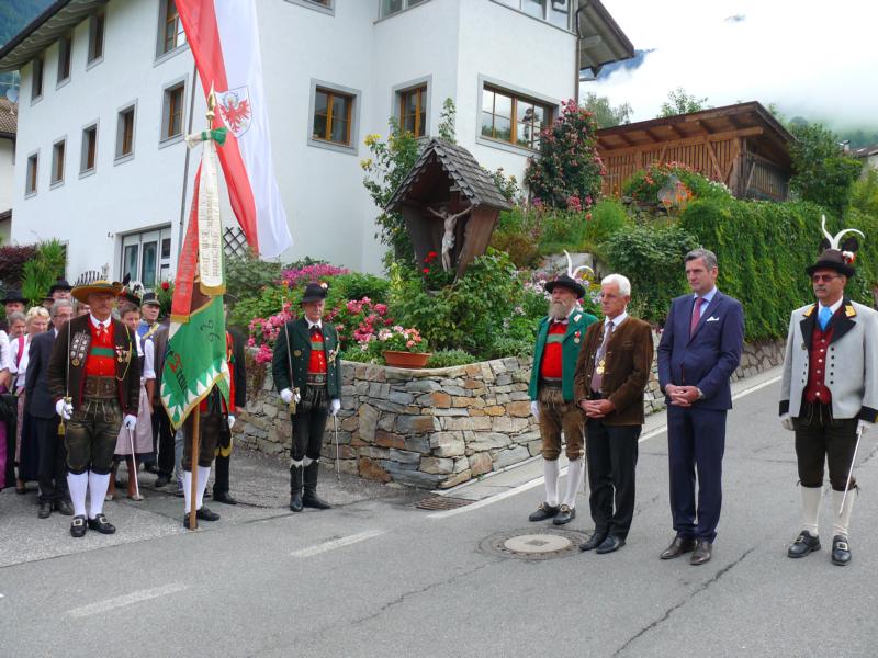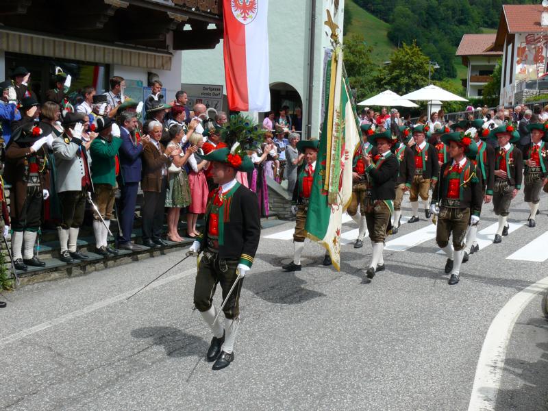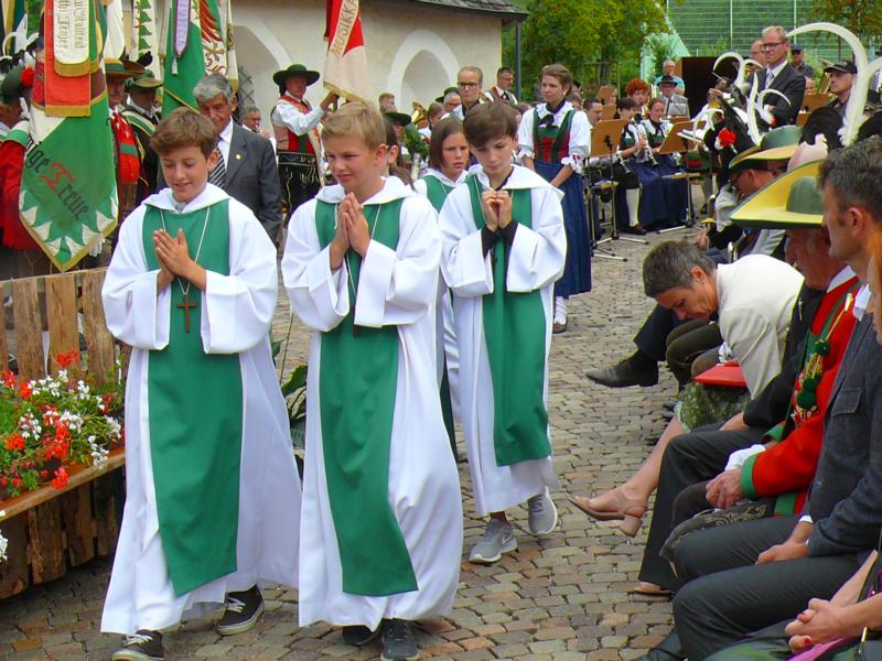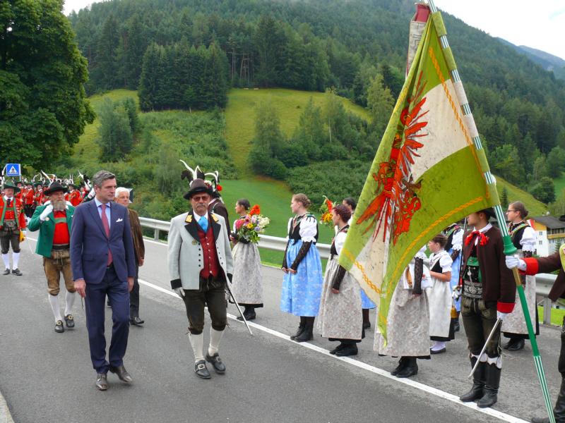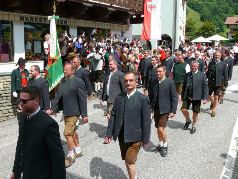 Bereits um 7 Uhr morgens trafen wir uns im Dorf und machten uns mit einem Bus Richtung Lüsen. Nach der Aufstellung, Frontabschreitung und Einzug folgte um 9 Uhr die Feldmesse auf dem Widumhof. Nach der Messe und einer gelungenen Ehrensalve ging der Festumzug mit Defilierung durchs Dorf los. Als wir an Festbesuchern vorbeimarschierten, ertönte lauter Beifall und viel Lob für unser Erscheinungsbild. Ein besonderes Highlight war unter anderem, dass unsere Jungmarketenderinnen beim Einzug mit der Schwegelpfeife spielten aber auch, dass wir unsere Kanone mitführten. An diesem Tag dabei waren 33 Schützen, 6 Marketenderinnen, 1 Jungschütze und 4 Jungmarketenderinnen.
