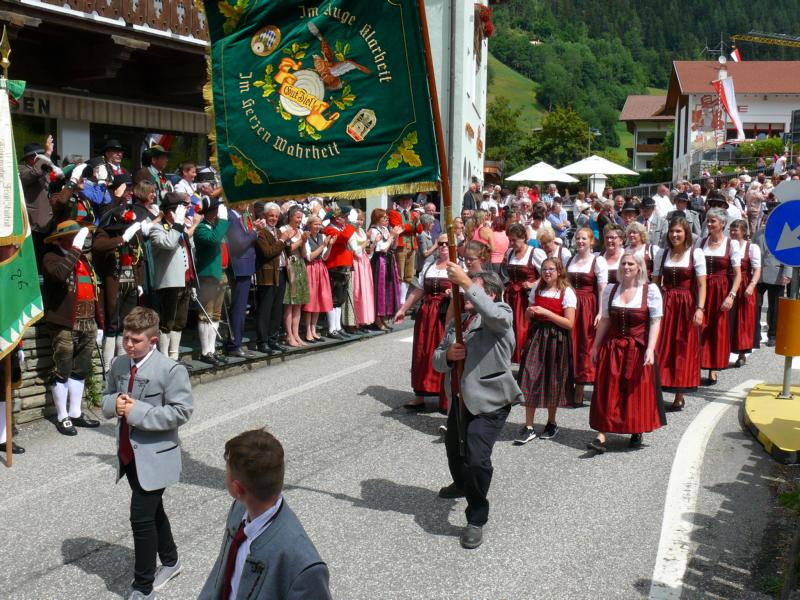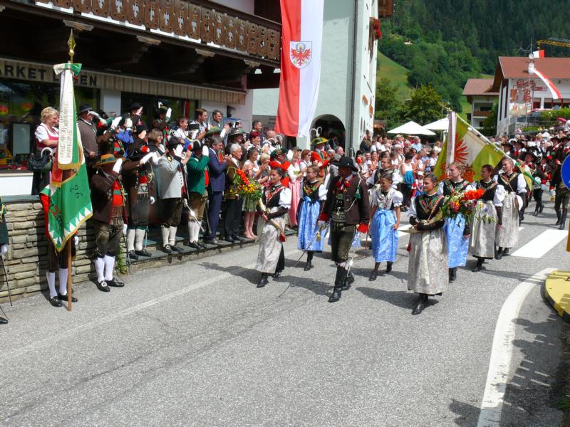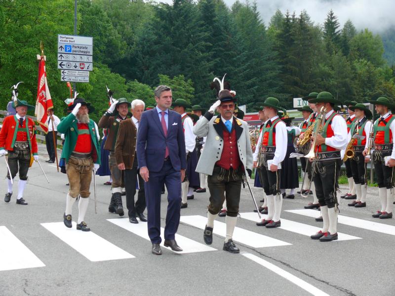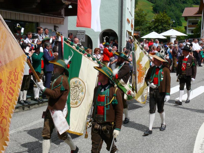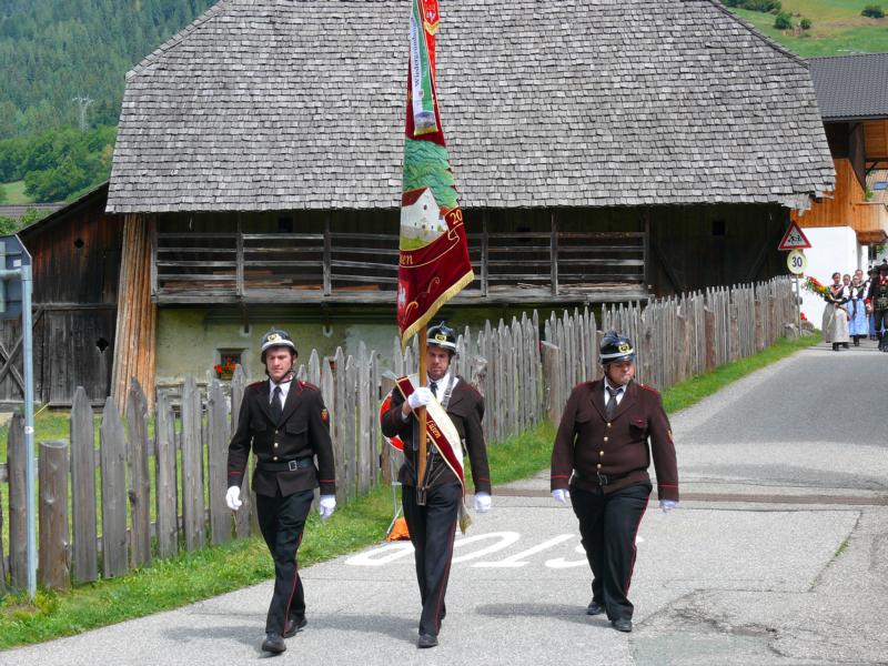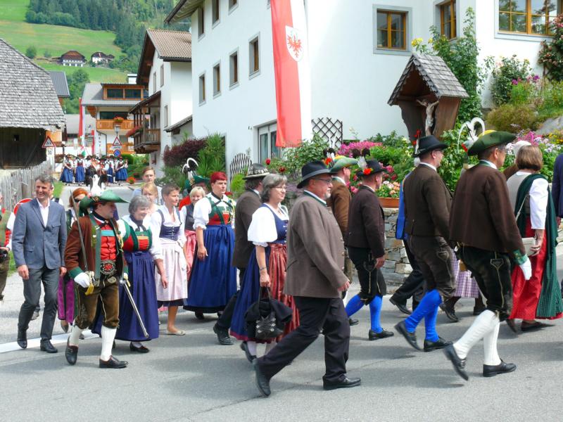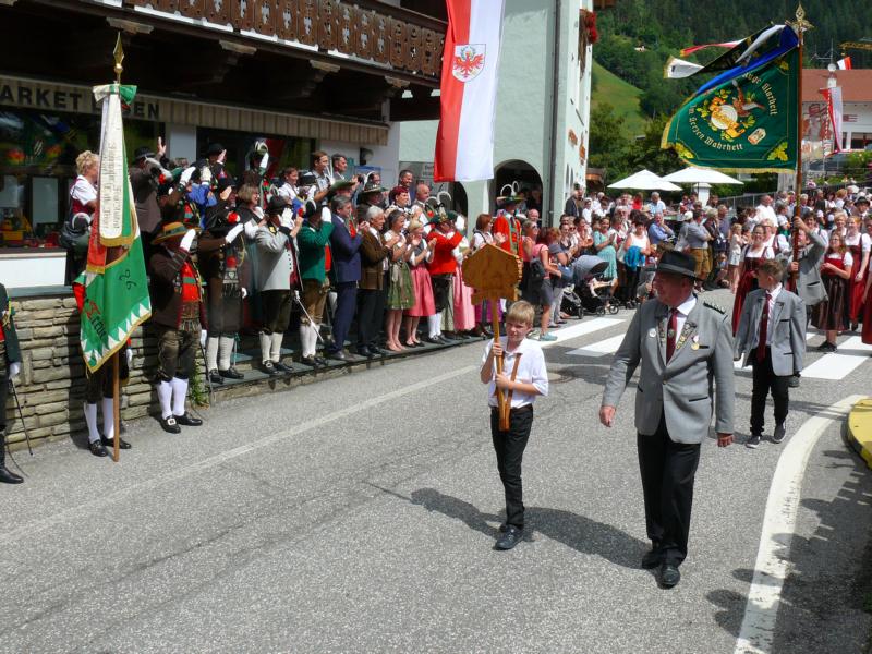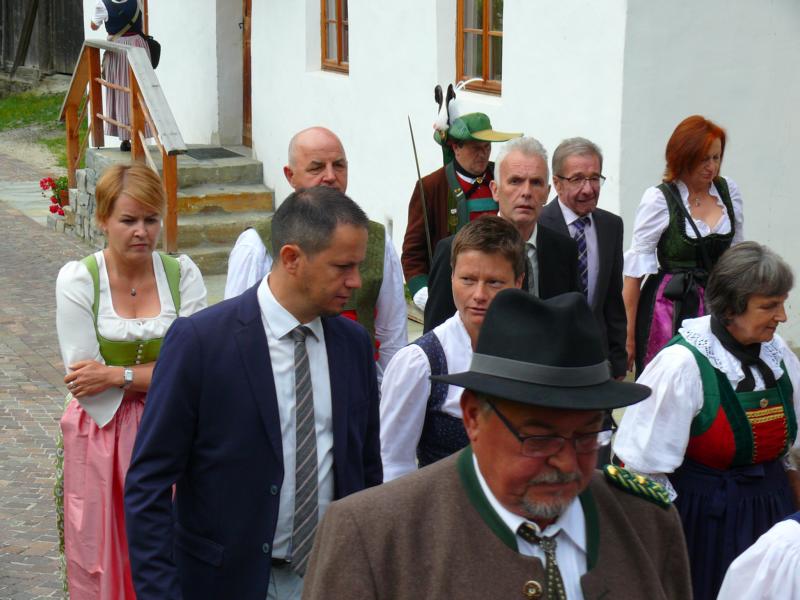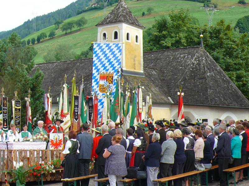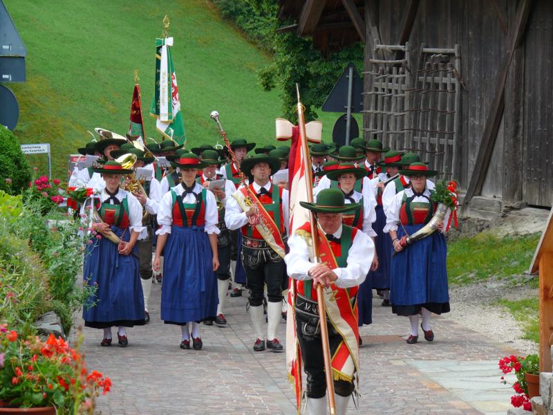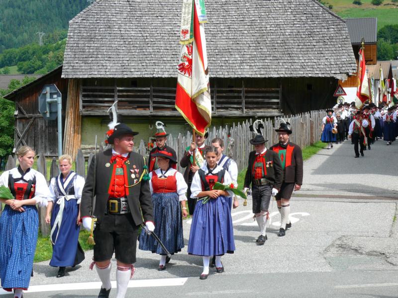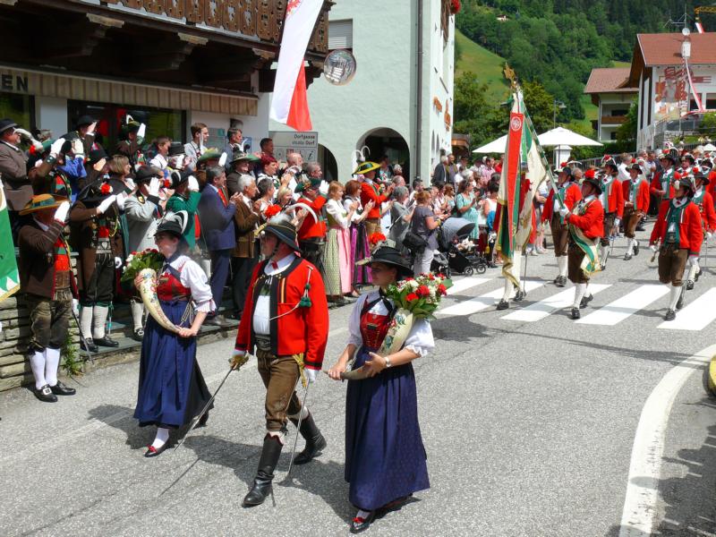 Bereits um 7 Uhr morgens trafen wir uns im Dorf und machten uns mit einem Bus Richtung Lüsen. Nach der Aufstellung, Frontabschreitung und Einzug folgte um 9 Uhr die Feldmesse auf dem Widumhof. Nach der Messe und einer gelungenen Ehrensalve ging der Festumzug mit Defilierung durchs Dorf los. Als wir an Festbesuchern vorbeimarschierten, ertönte lauter Beifall und viel Lob für unser Erscheinungsbild. Ein besonderes Highlight war unter anderem, dass unsere Jungmarketenderinnen beim Einzug mit der Schwegelpfeife spielten aber auch, dass wir unsere Kanone mitführten. An diesem Tag dabei waren 33 Schützen, 6 Marketenderinnen, 1 Jungschütze und 4 Jungmarketenderinnen.