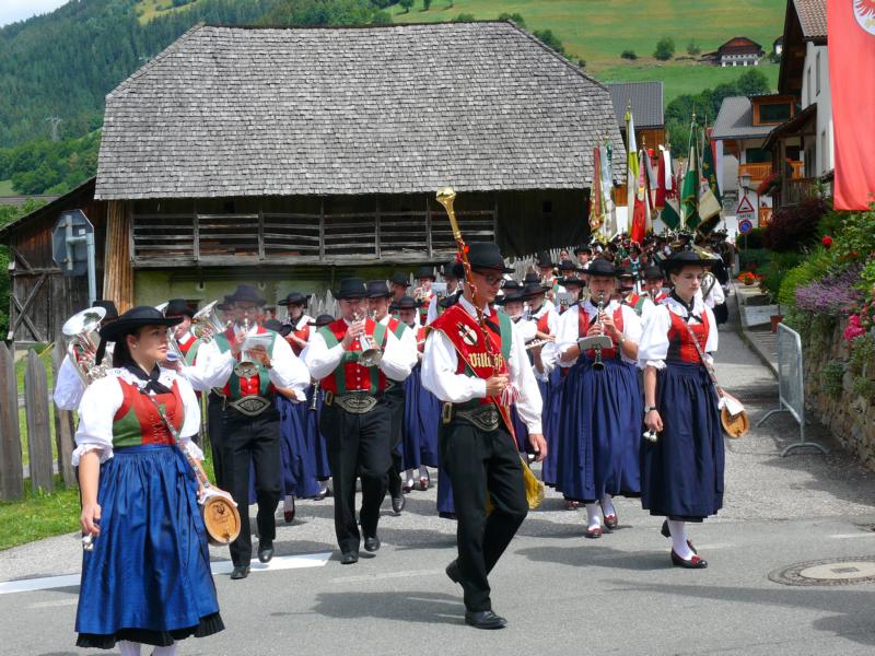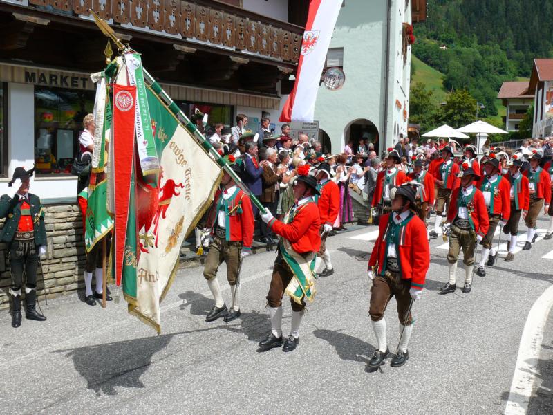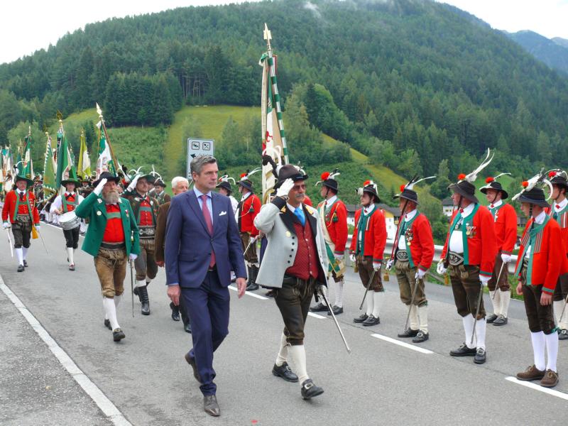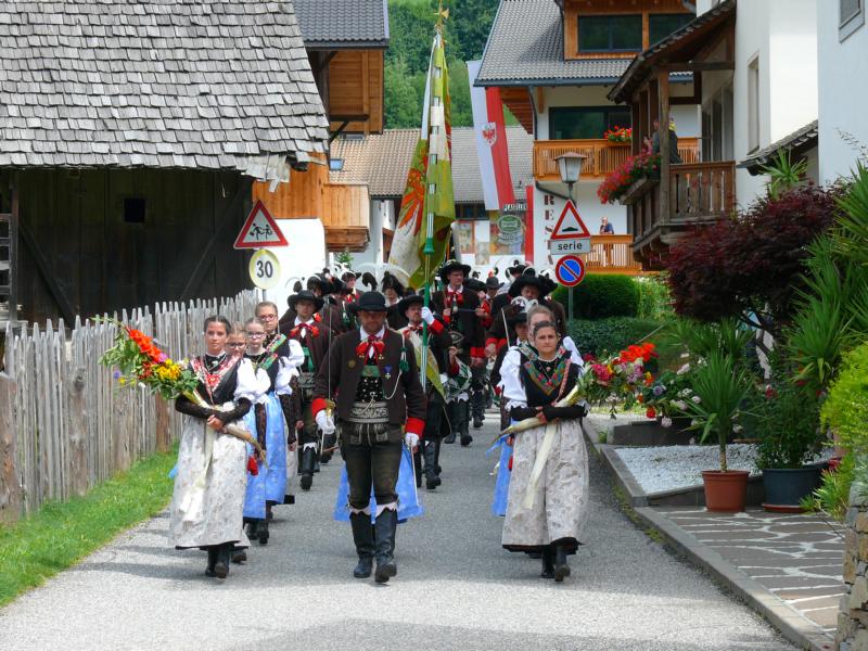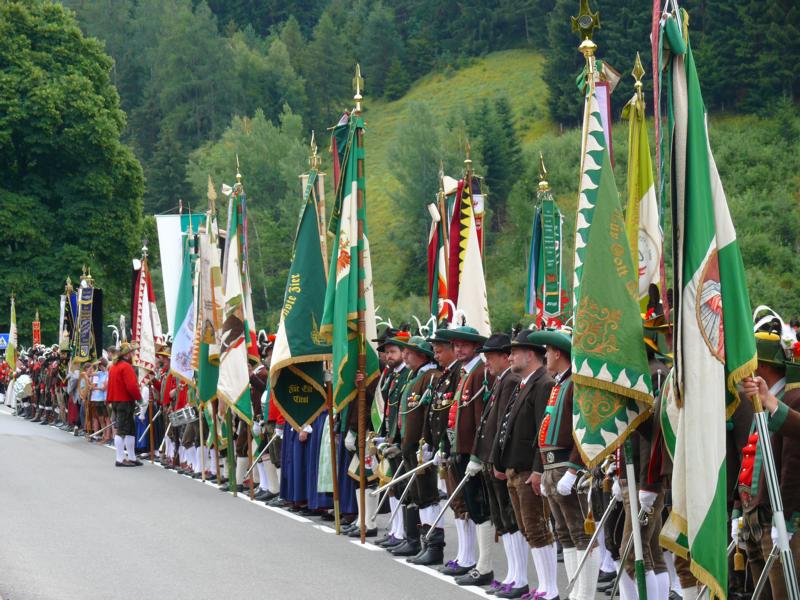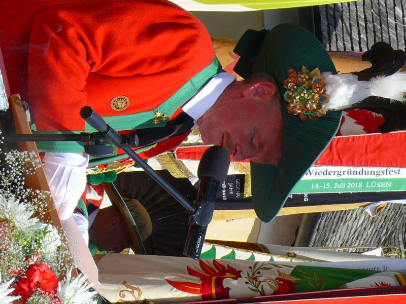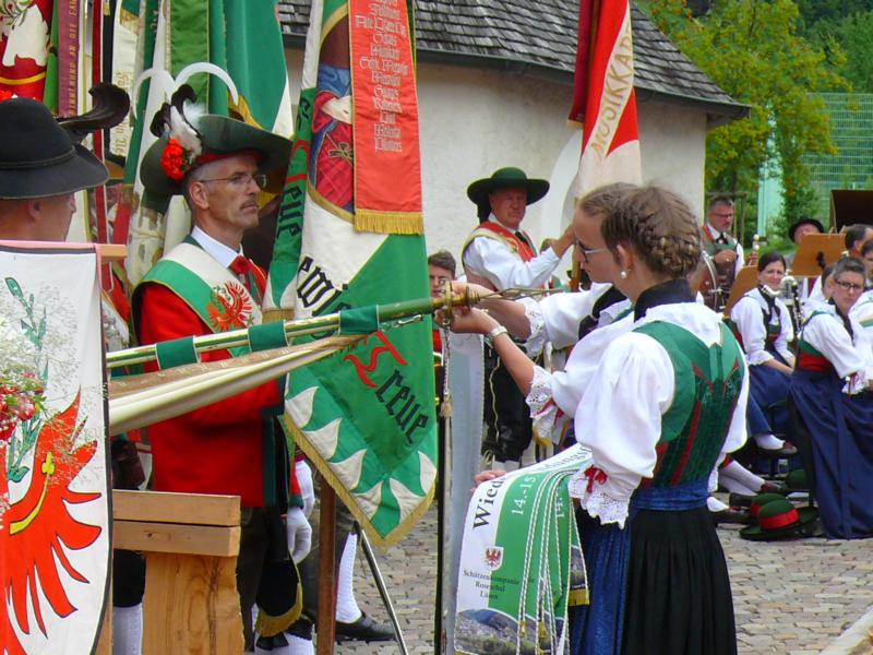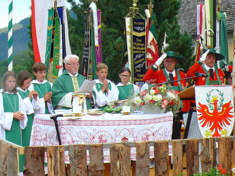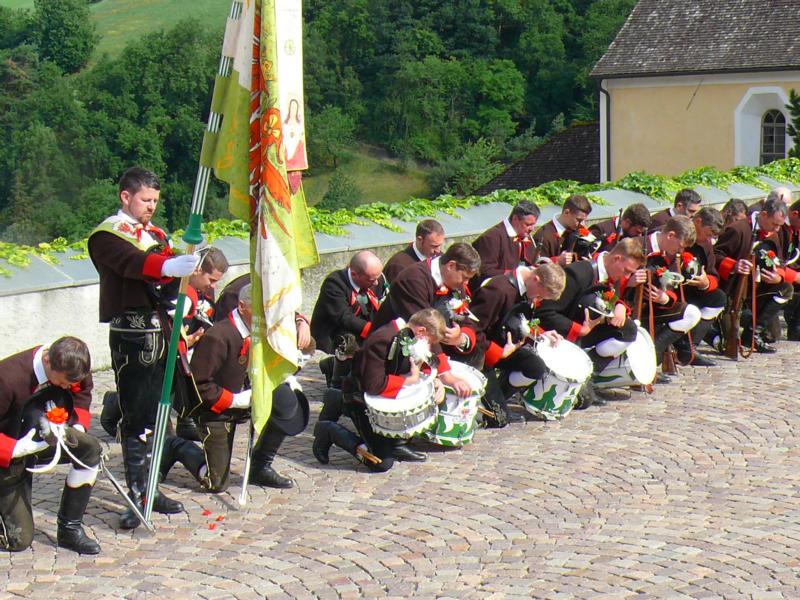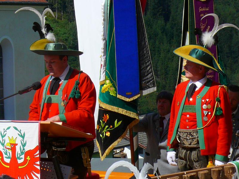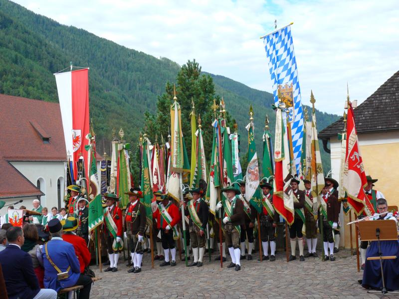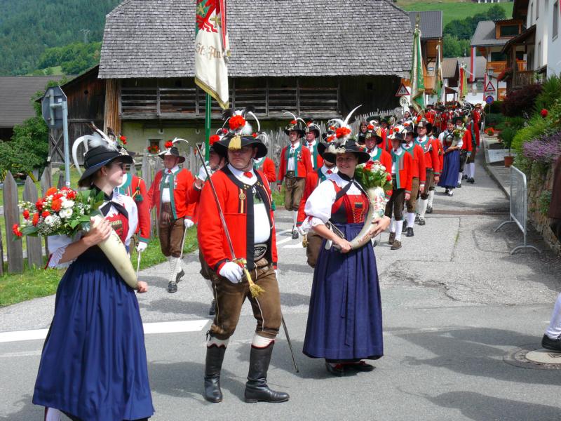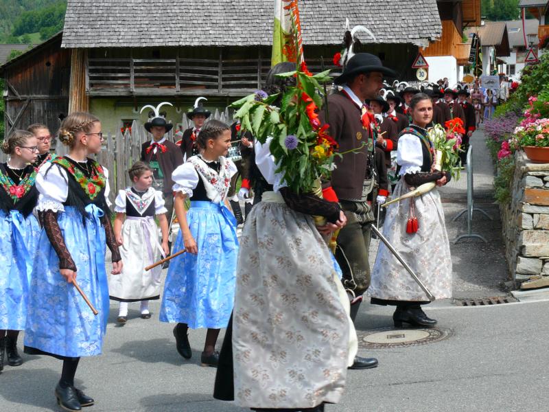 Bereits um 7 Uhr morgens trafen wir uns im Dorf und machten uns mit einem Bus Richtung Lüsen. Nach der Aufstellung, Frontabschreitung und Einzug folgte um 9 Uhr die Feldmesse auf dem Widumhof. Nach der Messe und einer gelungenen Ehrensalve ging der Festumzug mit Defilierung durchs Dorf los. Als wir an Festbesuchern vorbeimarschierten, ertönte lauter Beifall und viel Lob für unser Erscheinungsbild. Ein besonderes Highlight war unter anderem, dass unsere Jungmarketenderinnen beim Einzug mit der Schwegelpfeife spielten aber auch, dass wir unsere Kanone mitführten. An diesem Tag dabei waren 33 Schützen, 6 Marketenderinnen, 1 Jungschütze und 4 Jungmarketenderinnen.