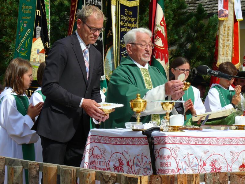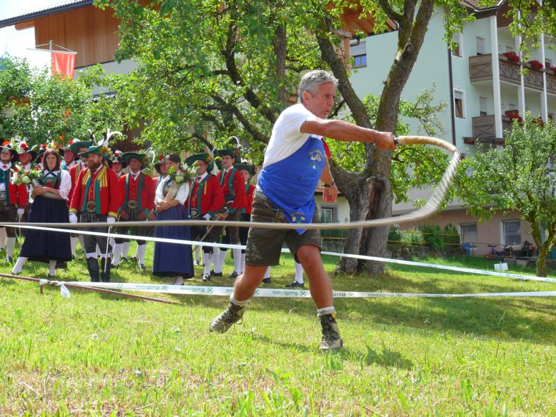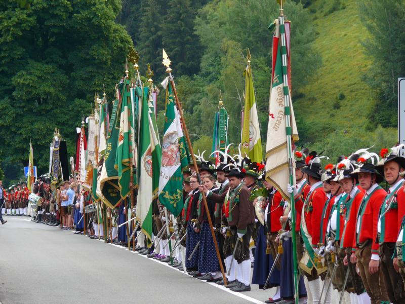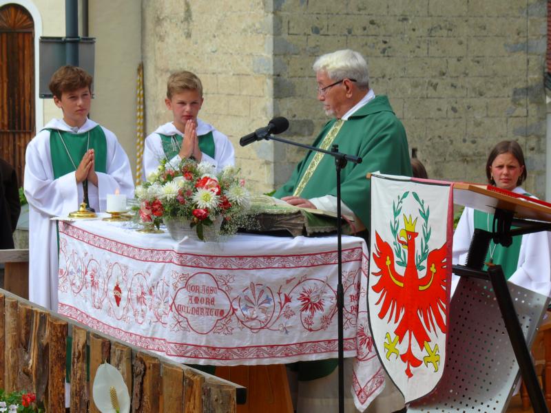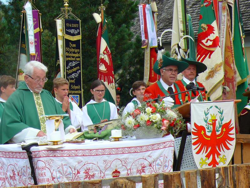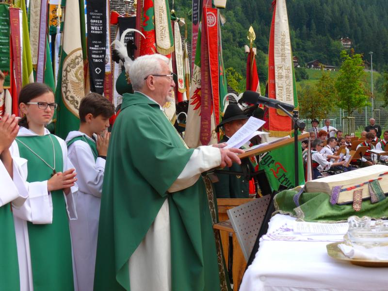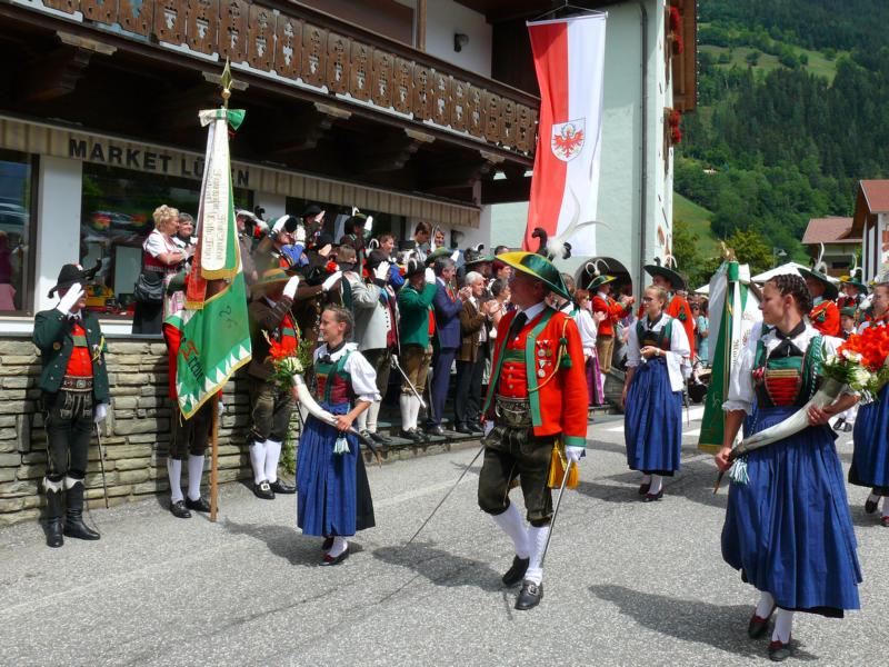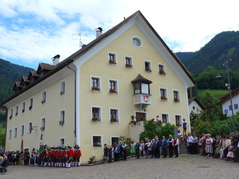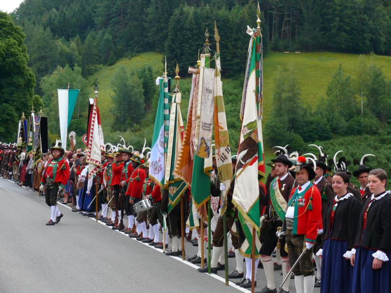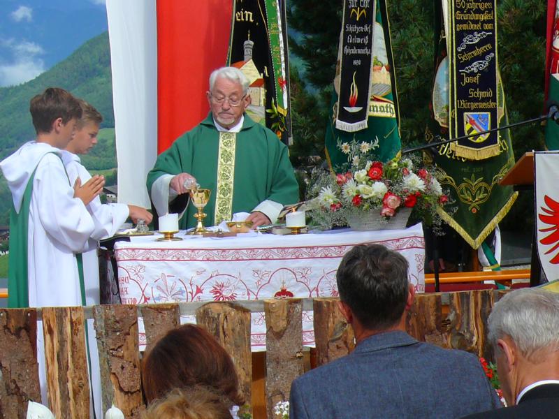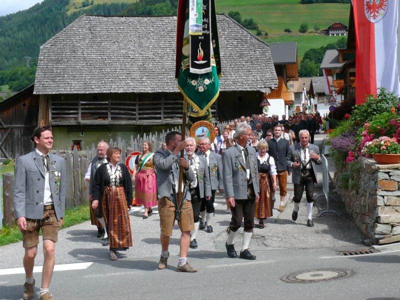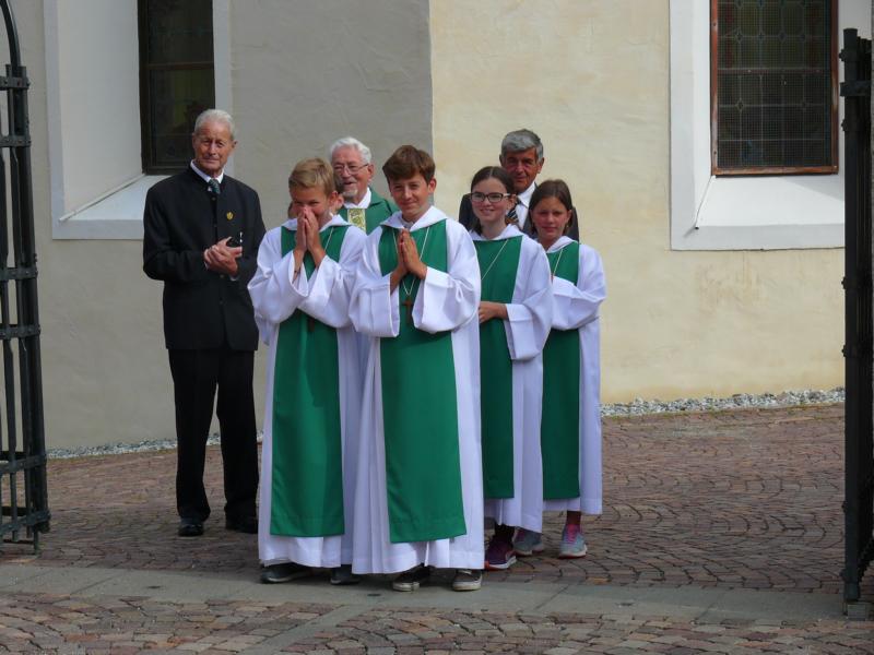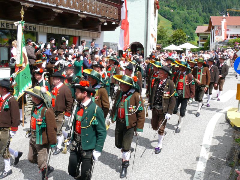 Bereits um 7 Uhr morgens trafen wir uns im Dorf und machten uns mit einem Bus Richtung Lüsen. Nach der Aufstellung, Frontabschreitung und Einzug folgte um 9 Uhr die Feldmesse auf dem Widumhof. Nach der Messe und einer gelungenen Ehrensalve ging der Festumzug mit Defilierung durchs Dorf los. Als wir an Festbesuchern vorbeimarschierten, ertönte lauter Beifall und viel Lob für unser Erscheinungsbild. Ein besonderes Highlight war unter anderem, dass unsere Jungmarketenderinnen beim Einzug mit der Schwegelpfeife spielten aber auch, dass wir unsere Kanone mitführten. An diesem Tag dabei waren 33 Schützen, 6 Marketenderinnen, 1 Jungschütze und 4 Jungmarketenderinnen.