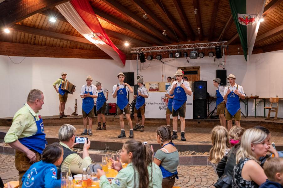 Am Samstag, 31.07.2021 haben wir auf dem Festplatz von Villanders die 1. Schürzenträger Party veranstaltet. Das Motto des blauen Schurzes wurde von der Komandantschaft ausgewählt, da dieser seit jeher Bestandteil der Südtiroler Arbeitsgarderobe ist. „Ein Mann ohne Schurz ist nur halb angezogen“, besagt ein Sprichwort. Der Schurz ist ein Teil der Tiroler Identität zum Teil heute noch allgegenwärtig und für gar manchen unverzichtbar.