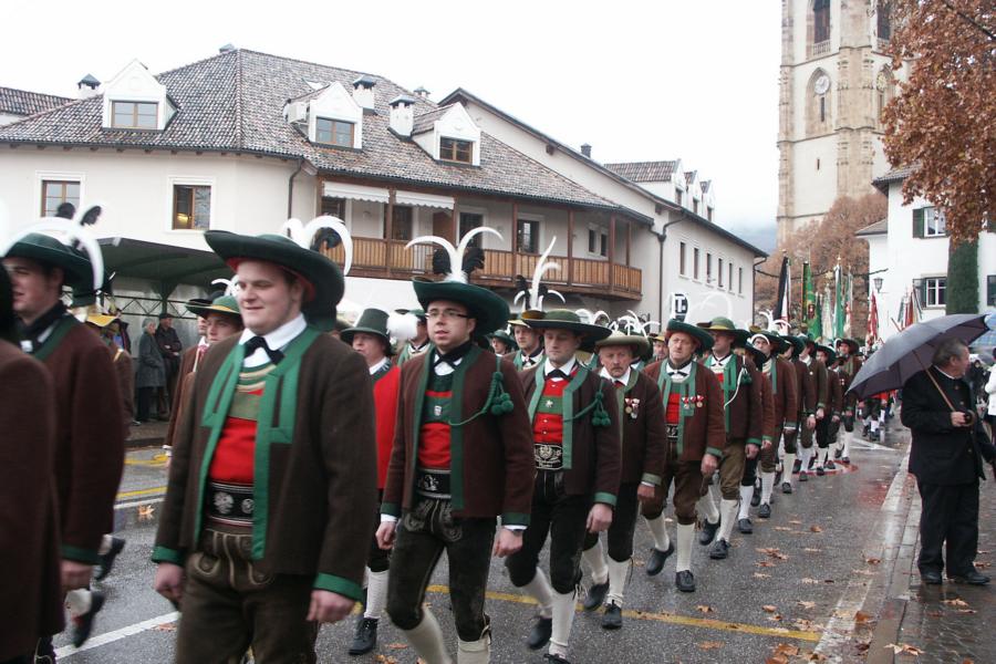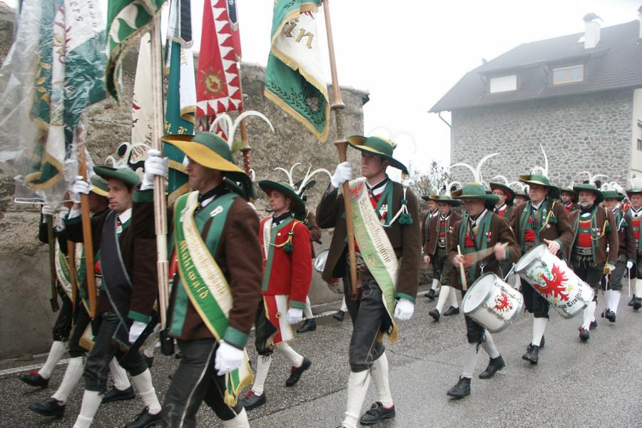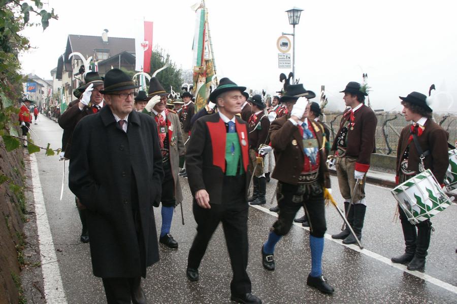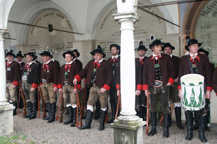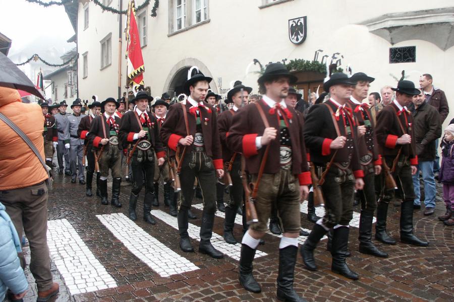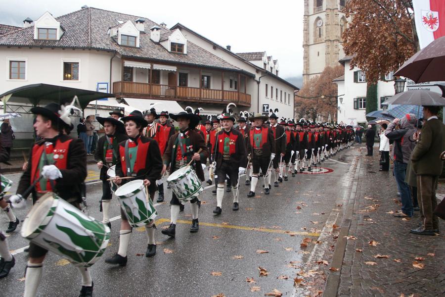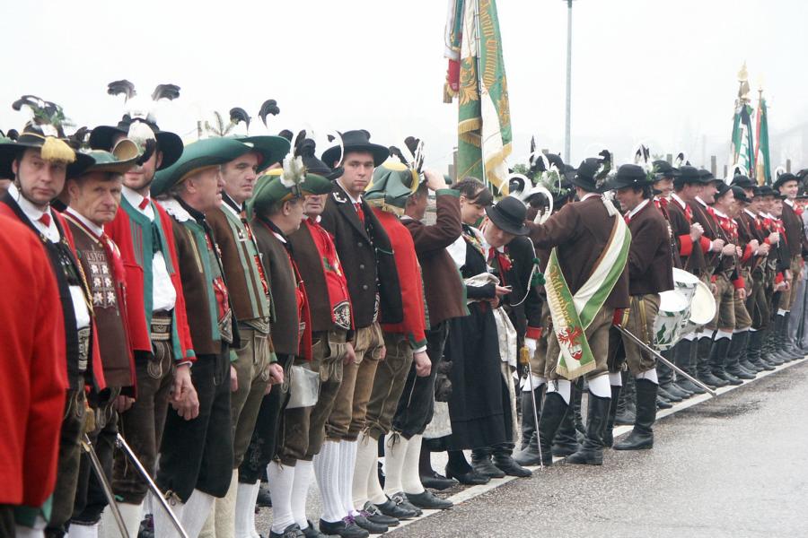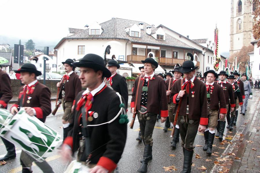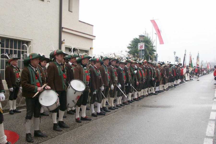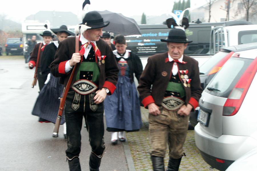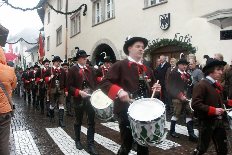 8. Dezember 2009: Nachdem die Schützenkompanie Anton von Gasteiger Villanders wie jedes Jahr fast vollzählig an der Sepp-Kerschbaumer-Gedenkfeier in St. Pauls teilnahm, ging diesmal die Fahrt nicht nach Hause sondern nach Innsbruck, wo die Orig. Tiroler Kaiserjägermusik zu ihrem alljährlichen Galakonzert geladen hatte. In Innsbruck angekommen nutzte die Schützenkompanie die Gelegenheit in der Hofkirche eine Kranzniederlegung vorzunehmen. Man gedachte zum einen, dem Oberkommandanten der Tiroler Schützen, Andreas Hofer sowie dem zweiten Hauptmann der Schützenkompanie Villanders von 1809, Dr. Sebastian-Josef Mayrhofer, für den ein Gedenkstein in der Hofkirche errichtet wurde. Hptm. Hannes Rabensteiner erinnerte in seiner Gedenkrede an die Lebensgeschichte von Dr. Mayrhofer, welcher sich einen Ehrenplatz in der Geschichte der Tiroler Helden verdient. Bei diesem für die Kompanie sehr feierlichen Akt waren auch Kameraden der SK Patsch sowie Senatsrat Dr. Franz-Heinz von Hye anwesend, welcher anschließend noch kurz auf die Geschichte der Hofkirche einging. Abschließend wurde die Landeshymne abgesungen. Nach der feierlichen Kranzniederlegung war es aber auch schon Zeit für den Start des Galakonzertes, welches die Orig. Tiroler Kaiserjägermusik ganz im Zeichen eines gesamttiroler Bildes organisierte. Das Galakonzert begann mit dem Abfeuern einer gelungenen Ehrensalve durch die SK Anton von Gasteiger Villanders in Anwesenheit von Frau Hilde Zach, Bürgermeisterin und Kulturreferentin der Nordtiroler Landeshauptstadt Innsbruck, Frau Dr. Beate Palfrader, Landesrätin für Bildung und Kultur, den beiden Landeskommandanten Otto von Sarnthein und Paul Bacher sowie Bezirksmajor Sepp Kaser. Nachdem der zweite Teil des Galakonzertes ganz im Zeichen des Gedenkjahres stand, stürmten die Kompanien von Patsch und Villanders unter Trommelwirbel den vollbesetzten Tirolersaal im Congresshaus und nahmen Stellung auf der Bühne neben der Orig. Tiroler Kaiserjägermusik. Durch den Auftritt der beiden Kompanien mit der Kaiserjägerkapelle und das Abspielen der Tiroler Märsche schlug jedes Tiroler Herz höher! Man war wohl für diese Stunde mehr als vereint und die Hoffnung, auf eine Wiedervereinigung Tirols war im gesamten Saal spürbar. Außerdem freute es uns, mit der Kompanie aus Patsch Bekanntschaft zu machen.