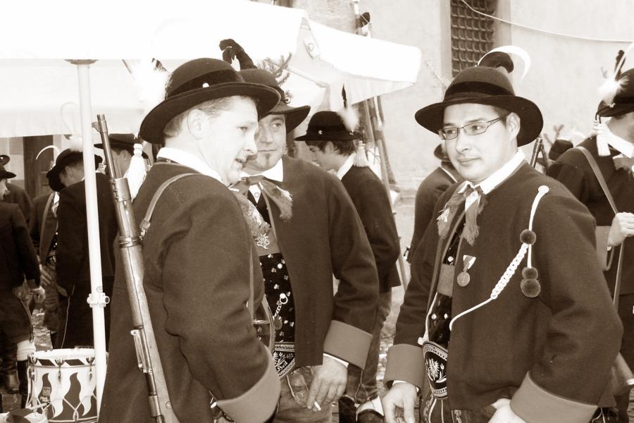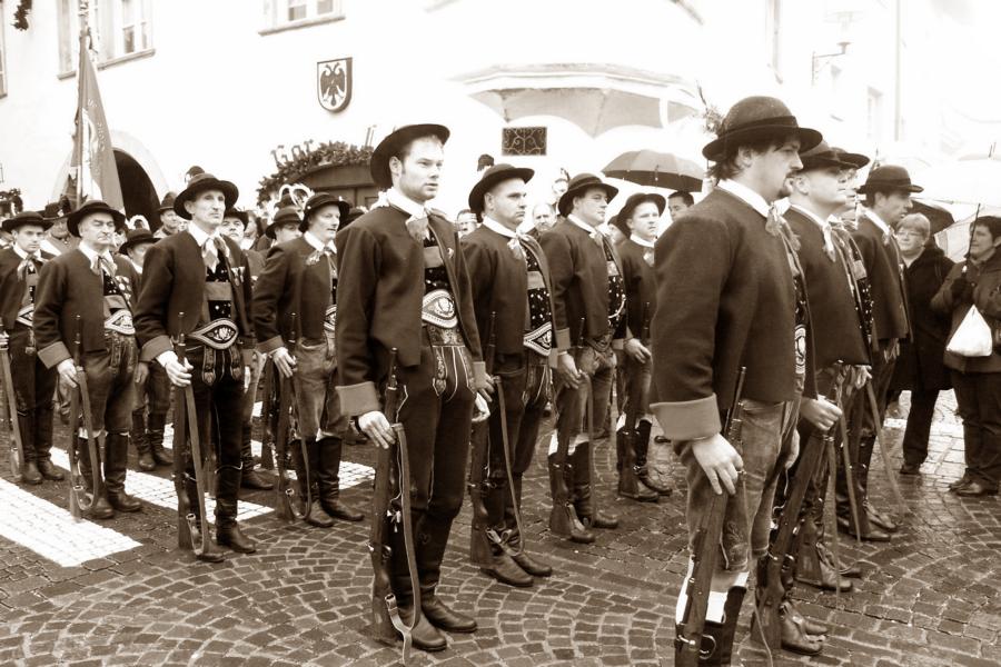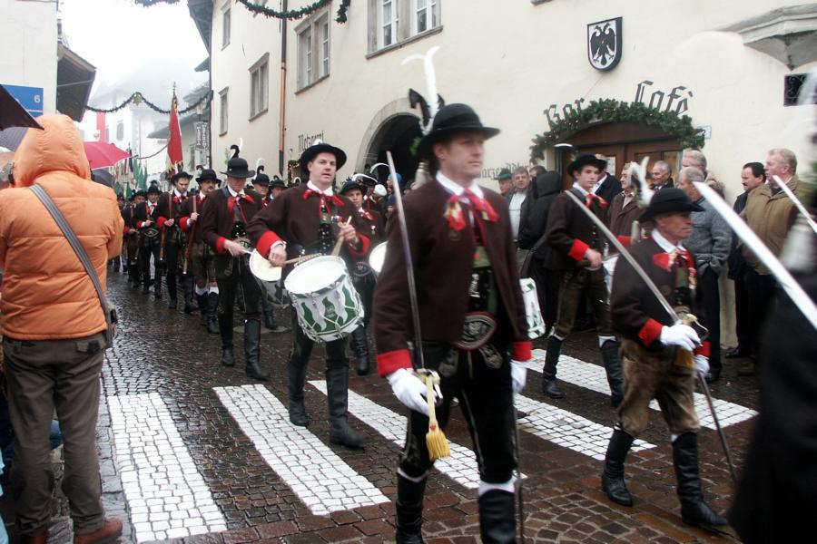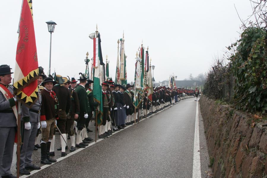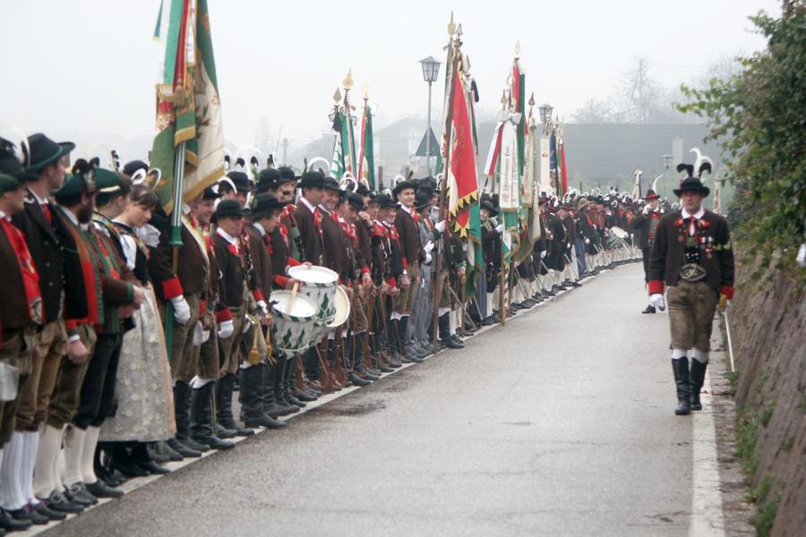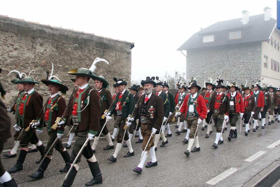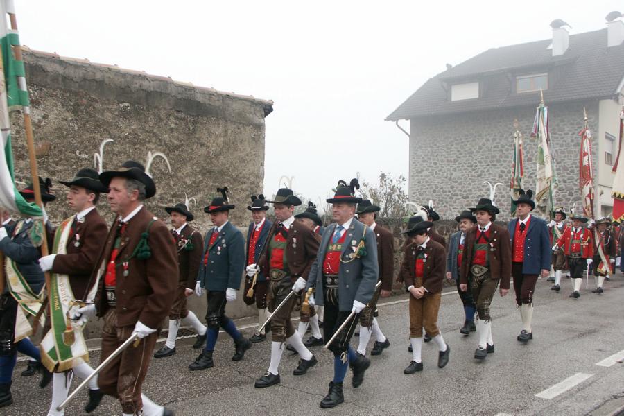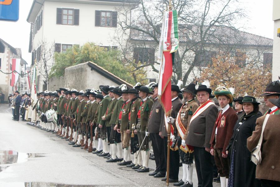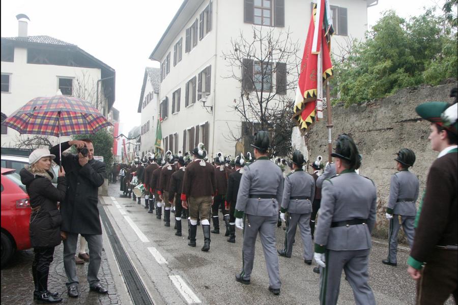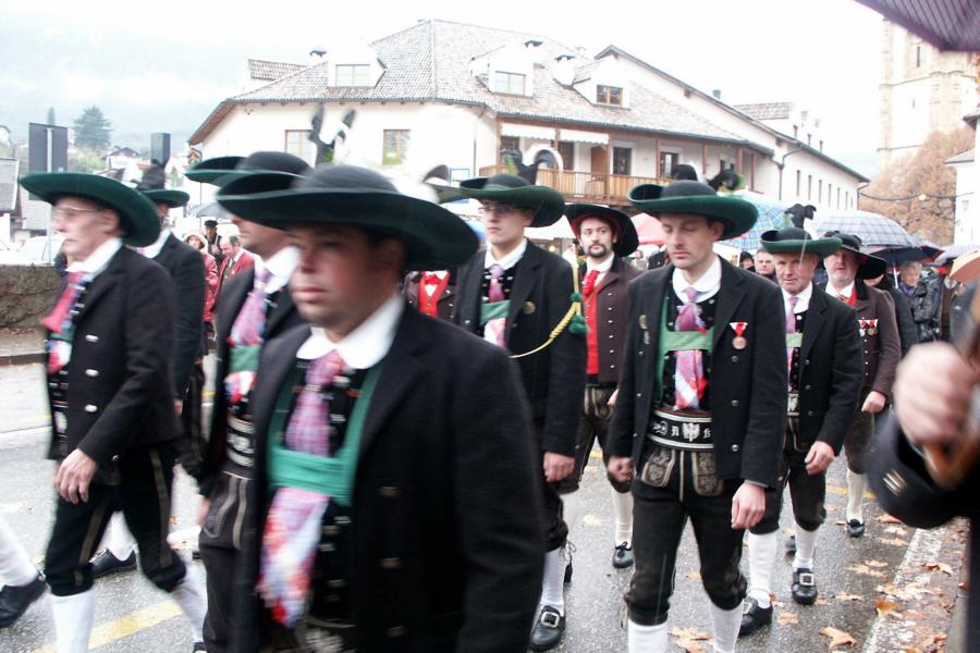 8. Dezember 2009: Nachdem die Schützenkompanie Anton von Gasteiger Villanders wie jedes Jahr fast vollzählig an der Sepp-Kerschbaumer-Gedenkfeier in St. Pauls teilnahm, ging diesmal die Fahrt nicht nach Hause sondern nach Innsbruck, wo die Orig. Tiroler Kaiserjägermusik zu ihrem alljährlichen Galakonzert geladen hatte. In Innsbruck angekommen nutzte die Schützenkompanie die Gelegenheit in der Hofkirche eine Kranzniederlegung vorzunehmen. Man gedachte zum einen, dem Oberkommandanten der Tiroler Schützen, Andreas Hofer sowie dem zweiten Hauptmann der Schützenkompanie Villanders von 1809, Dr. Sebastian-Josef Mayrhofer, für den ein Gedenkstein in der Hofkirche errichtet wurde. Hptm. Hannes Rabensteiner erinnerte in seiner Gedenkrede an die Lebensgeschichte von Dr. Mayrhofer, welcher sich einen Ehrenplatz in der Geschichte der Tiroler Helden verdient. Bei diesem für die Kompanie sehr feierlichen Akt waren auch Kameraden der SK Patsch sowie Senatsrat Dr. Franz-Heinz von Hye anwesend, welcher anschließend noch kurz auf die Geschichte der Hofkirche einging. Abschließend wurde die Landeshymne abgesungen. Nach der feierlichen Kranzniederlegung war es aber auch schon Zeit für den Start des Galakonzertes, welches die Orig. Tiroler Kaiserjägermusik ganz im Zeichen eines gesamttiroler Bildes organisierte. Das Galakonzert begann mit dem Abfeuern einer gelungenen Ehrensalve durch die SK Anton von Gasteiger Villanders in Anwesenheit von Frau Hilde Zach, Bürgermeisterin und Kulturreferentin der Nordtiroler Landeshauptstadt Innsbruck, Frau Dr. Beate Palfrader, Landesrätin für Bildung und Kultur, den beiden Landeskommandanten Otto von Sarnthein und Paul Bacher sowie Bezirksmajor Sepp Kaser. Nachdem der zweite Teil des Galakonzertes ganz im Zeichen des Gedenkjahres stand, stürmten die Kompanien von Patsch und Villanders unter Trommelwirbel den vollbesetzten Tirolersaal im Congresshaus und nahmen Stellung auf der Bühne neben der Orig. Tiroler Kaiserjägermusik. Durch den Auftritt der beiden Kompanien mit der Kaiserjägerkapelle und das Abspielen der Tiroler Märsche schlug jedes Tiroler Herz höher! Man war wohl für diese Stunde mehr als vereint und die Hoffnung, auf eine Wiedervereinigung Tirols war im gesamten Saal spürbar. Außerdem freute es uns, mit der Kompanie aus Patsch Bekanntschaft zu machen.