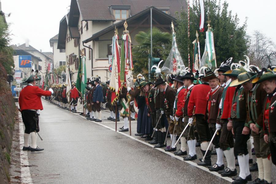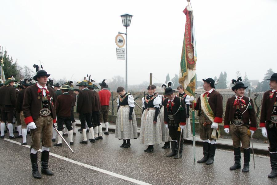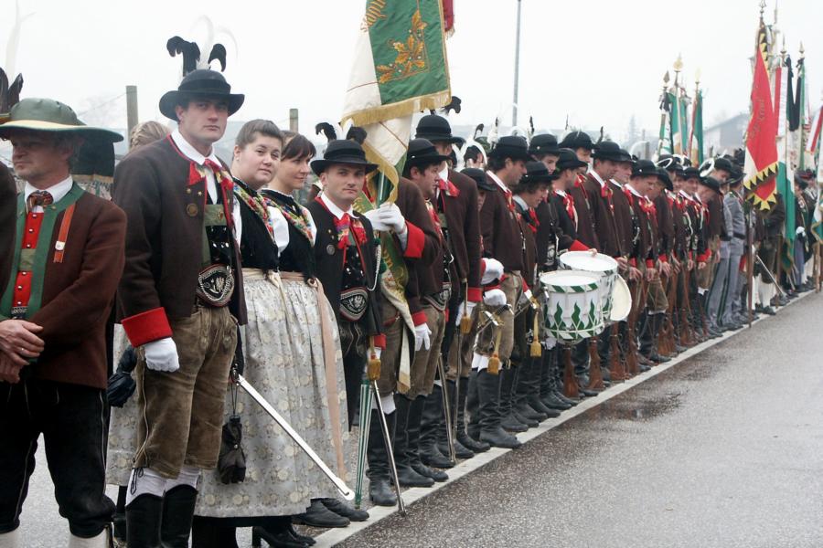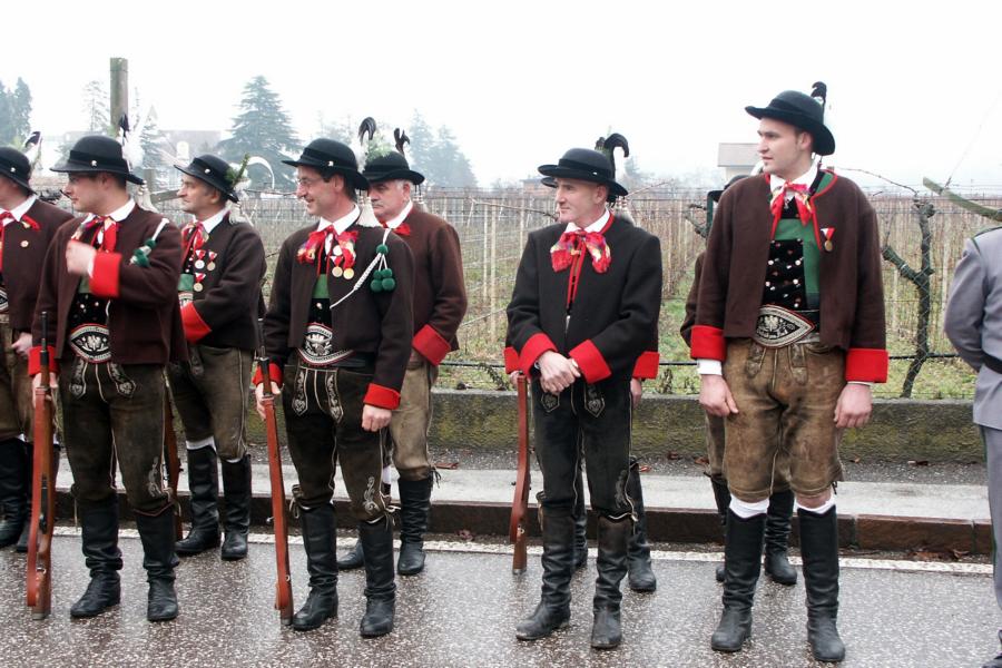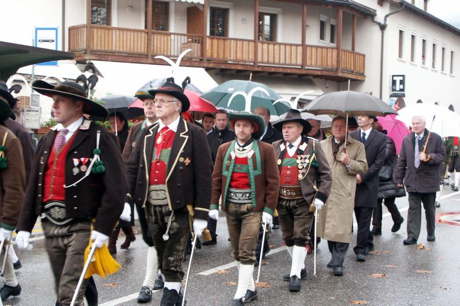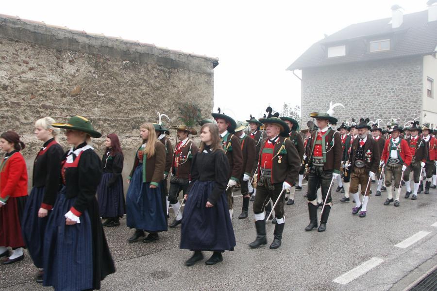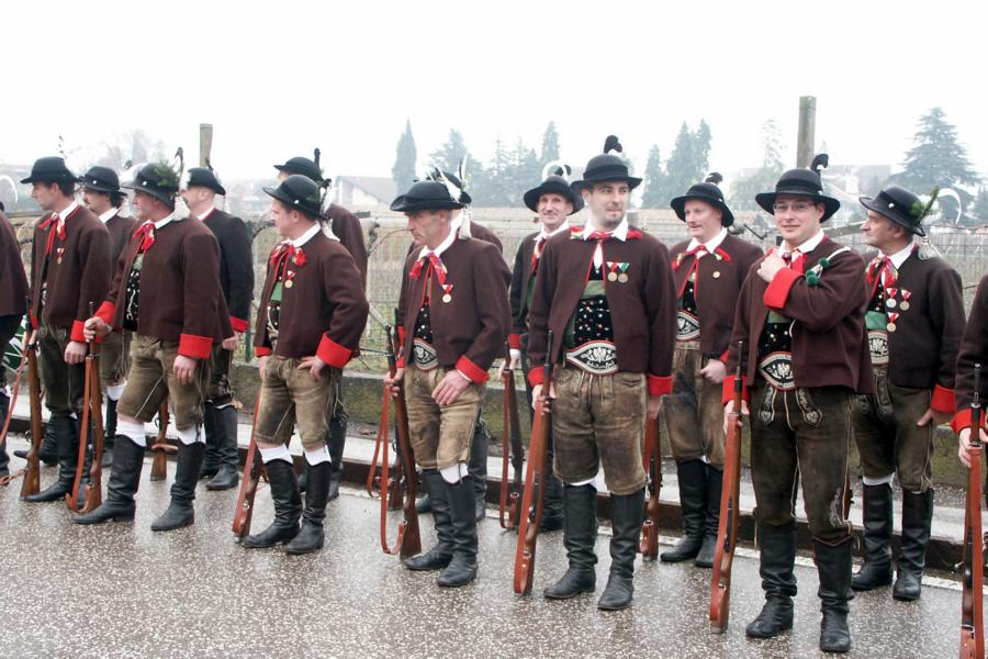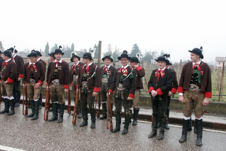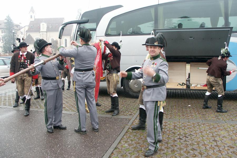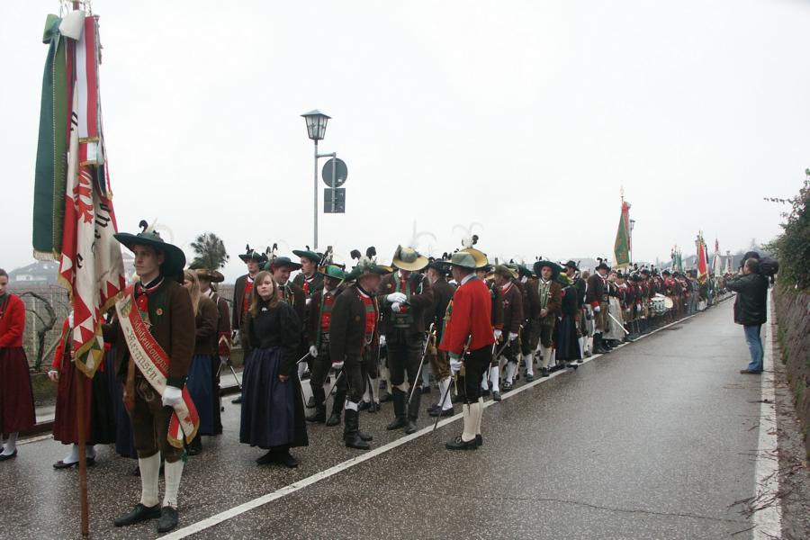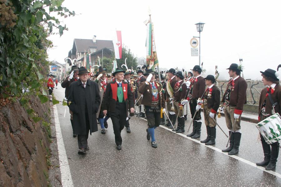 8. Dezember 2009: Nachdem die Schützenkompanie Anton von Gasteiger Villanders wie jedes Jahr fast vollzählig an der Sepp-Kerschbaumer-Gedenkfeier in St. Pauls teilnahm, ging diesmal die Fahrt nicht nach Hause sondern nach Innsbruck, wo die Orig. Tiroler Kaiserjägermusik zu ihrem alljährlichen Galakonzert geladen hatte. In Innsbruck angekommen nutzte die Schützenkompanie die Gelegenheit in der Hofkirche eine Kranzniederlegung vorzunehmen. Man gedachte zum einen, dem Oberkommandanten der Tiroler Schützen, Andreas Hofer sowie dem zweiten Hauptmann der Schützenkompanie Villanders von 1809, Dr. Sebastian-Josef Mayrhofer, für den ein Gedenkstein in der Hofkirche errichtet wurde. Hptm. Hannes Rabensteiner erinnerte in seiner Gedenkrede an die Lebensgeschichte von Dr. Mayrhofer, welcher sich einen Ehrenplatz in der Geschichte der Tiroler Helden verdient. Bei diesem für die Kompanie sehr feierlichen Akt waren auch Kameraden der SK Patsch sowie Senatsrat Dr. Franz-Heinz von Hye anwesend, welcher anschließend noch kurz auf die Geschichte der Hofkirche einging. Abschließend wurde die Landeshymne abgesungen. Nach der feierlichen Kranzniederlegung war es aber auch schon Zeit für den Start des Galakonzertes, welches die Orig. Tiroler Kaiserjägermusik ganz im Zeichen eines gesamttiroler Bildes organisierte. Das Galakonzert begann mit dem Abfeuern einer gelungenen Ehrensalve durch die SK Anton von Gasteiger Villanders in Anwesenheit von Frau Hilde Zach, Bürgermeisterin und Kulturreferentin der Nordtiroler Landeshauptstadt Innsbruck, Frau Dr. Beate Palfrader, Landesrätin für Bildung und Kultur, den beiden Landeskommandanten Otto von Sarnthein und Paul Bacher sowie Bezirksmajor Sepp Kaser. Nachdem der zweite Teil des Galakonzertes ganz im Zeichen des Gedenkjahres stand, stürmten die Kompanien von Patsch und Villanders unter Trommelwirbel den vollbesetzten Tirolersaal im Congresshaus und nahmen Stellung auf der Bühne neben der Orig. Tiroler Kaiserjägermusik. Durch den Auftritt der beiden Kompanien mit der Kaiserjägerkapelle und das Abspielen der Tiroler Märsche schlug jedes Tiroler Herz höher! Man war wohl für diese Stunde mehr als vereint und die Hoffnung, auf eine Wiedervereinigung Tirols war im gesamten Saal spürbar. Außerdem freute es uns, mit der Kompanie aus Patsch Bekanntschaft zu machen.