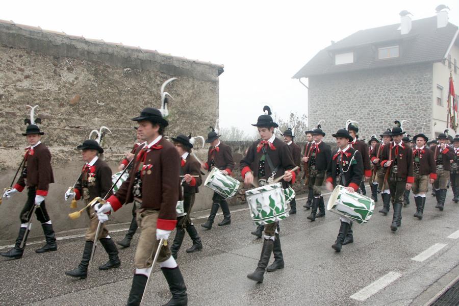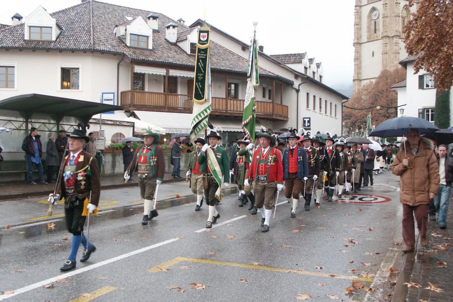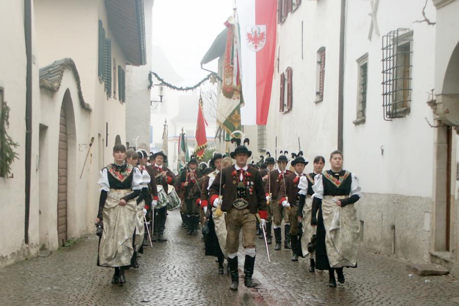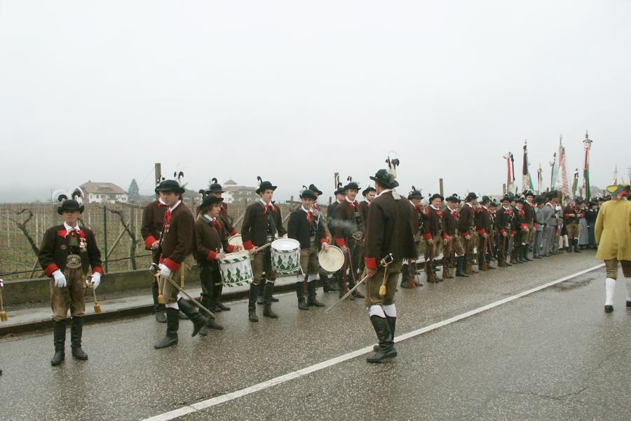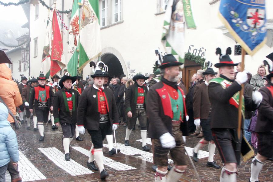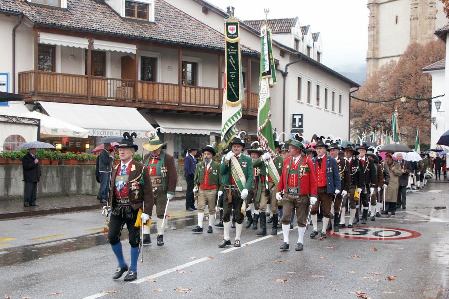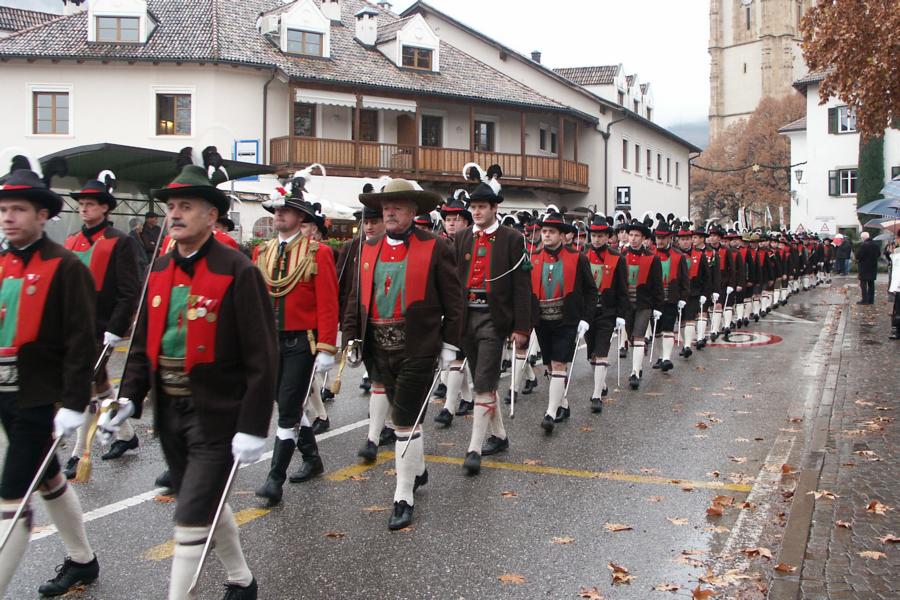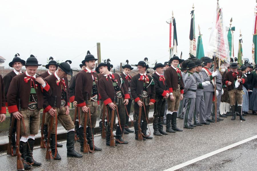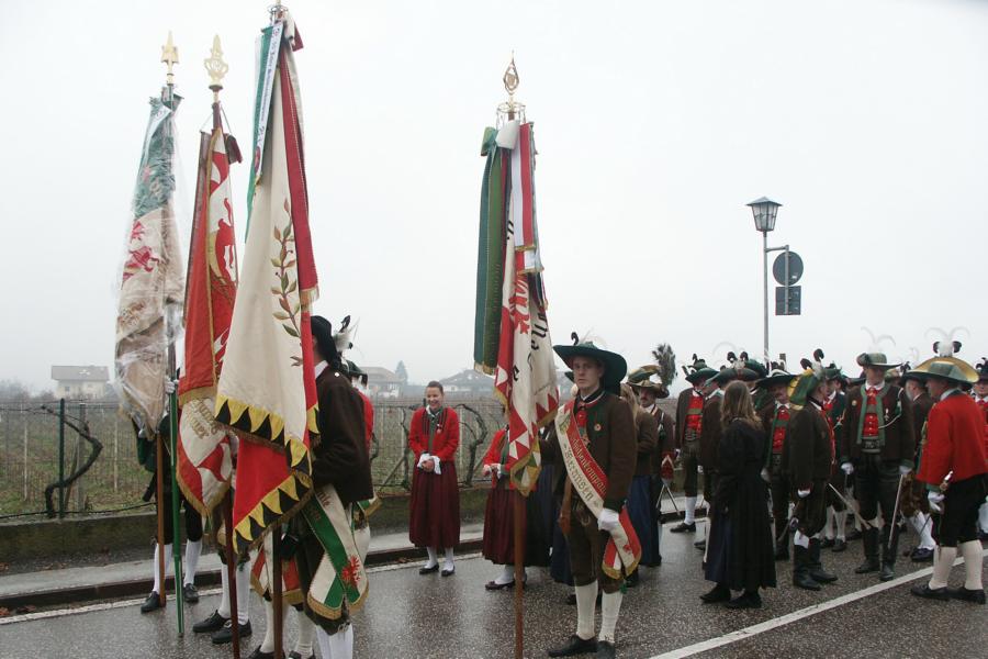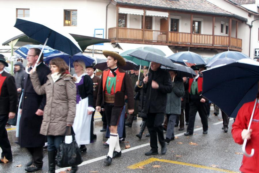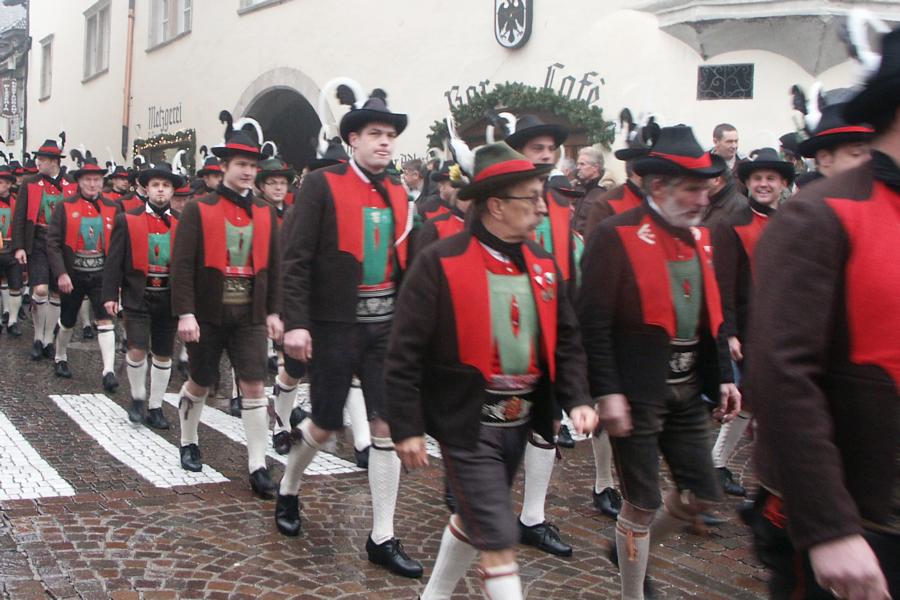 8. Dezember 2009: Nachdem die Schützenkompanie Anton von Gasteiger Villanders wie jedes Jahr fast vollzählig an der Sepp-Kerschbaumer-Gedenkfeier in St. Pauls teilnahm, ging diesmal die Fahrt nicht nach Hause sondern nach Innsbruck, wo die Orig. Tiroler Kaiserjägermusik zu ihrem alljährlichen Galakonzert geladen hatte. In Innsbruck angekommen nutzte die Schützenkompanie die Gelegenheit in der Hofkirche eine Kranzniederlegung vorzunehmen. Man gedachte zum einen, dem Oberkommandanten der Tiroler Schützen, Andreas Hofer sowie dem zweiten Hauptmann der Schützenkompanie Villanders von 1809, Dr. Sebastian-Josef Mayrhofer, für den ein Gedenkstein in der Hofkirche errichtet wurde. Hptm. Hannes Rabensteiner erinnerte in seiner Gedenkrede an die Lebensgeschichte von Dr. Mayrhofer, welcher sich einen Ehrenplatz in der Geschichte der Tiroler Helden verdient. Bei diesem für die Kompanie sehr feierlichen Akt waren auch Kameraden der SK Patsch sowie Senatsrat Dr. Franz-Heinz von Hye anwesend, welcher anschließend noch kurz auf die Geschichte der Hofkirche einging. Abschließend wurde die Landeshymne abgesungen. Nach der feierlichen Kranzniederlegung war es aber auch schon Zeit für den Start des Galakonzertes, welches die Orig. Tiroler Kaiserjägermusik ganz im Zeichen eines gesamttiroler Bildes organisierte. Das Galakonzert begann mit dem Abfeuern einer gelungenen Ehrensalve durch die SK Anton von Gasteiger Villanders in Anwesenheit von Frau Hilde Zach, Bürgermeisterin und Kulturreferentin der Nordtiroler Landeshauptstadt Innsbruck, Frau Dr. Beate Palfrader, Landesrätin für Bildung und Kultur, den beiden Landeskommandanten Otto von Sarnthein und Paul Bacher sowie Bezirksmajor Sepp Kaser. Nachdem der zweite Teil des Galakonzertes ganz im Zeichen des Gedenkjahres stand, stürmten die Kompanien von Patsch und Villanders unter Trommelwirbel den vollbesetzten Tirolersaal im Congresshaus und nahmen Stellung auf der Bühne neben der Orig. Tiroler Kaiserjägermusik. Durch den Auftritt der beiden Kompanien mit der Kaiserjägerkapelle und das Abspielen der Tiroler Märsche schlug jedes Tiroler Herz höher! Man war wohl für diese Stunde mehr als vereint und die Hoffnung, auf eine Wiedervereinigung Tirols war im gesamten Saal spürbar. Außerdem freute es uns, mit der Kompanie aus Patsch Bekanntschaft zu machen.