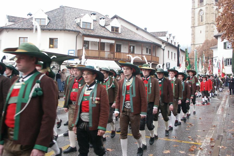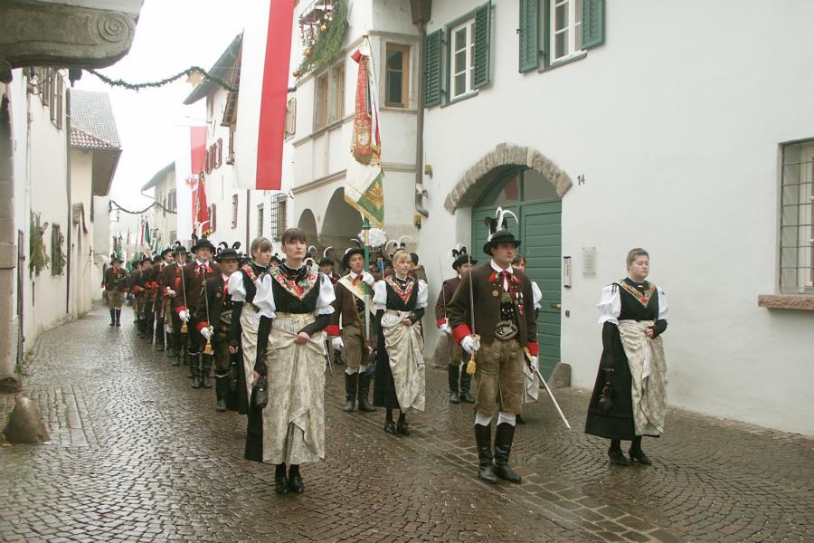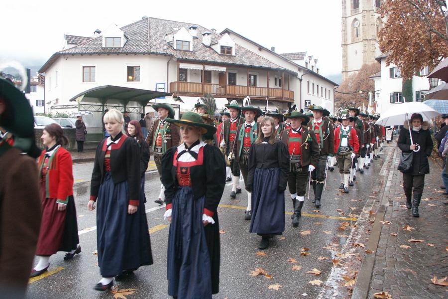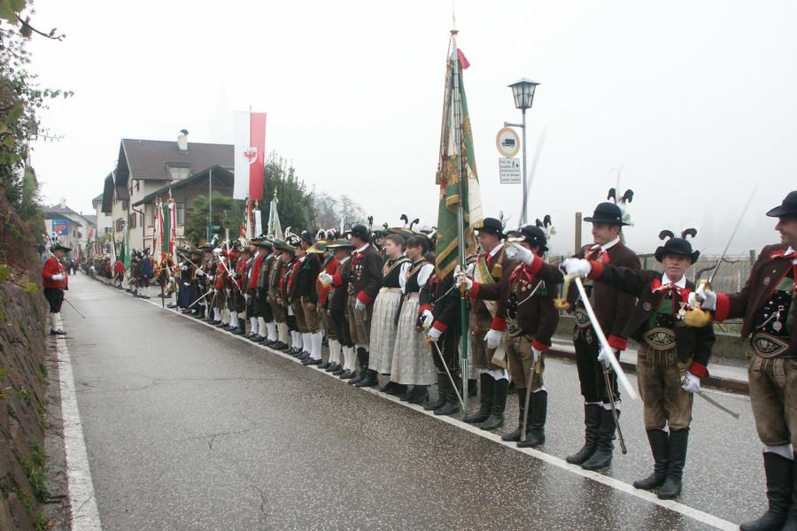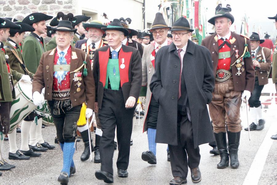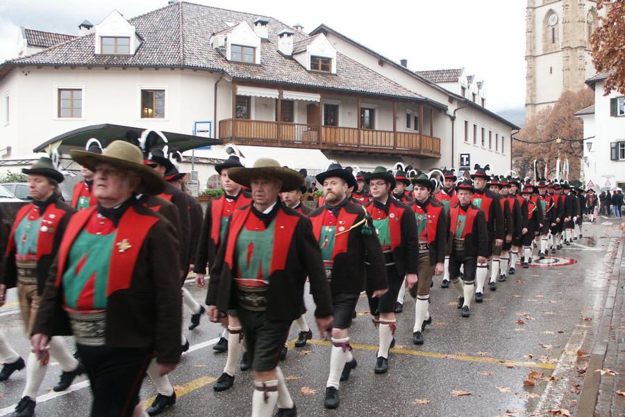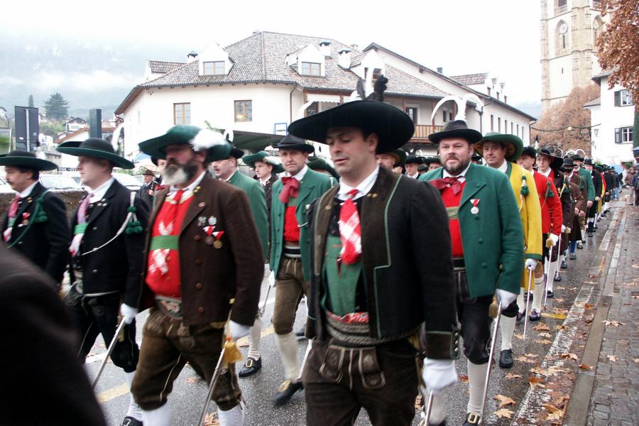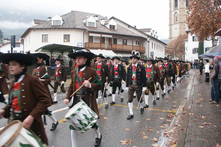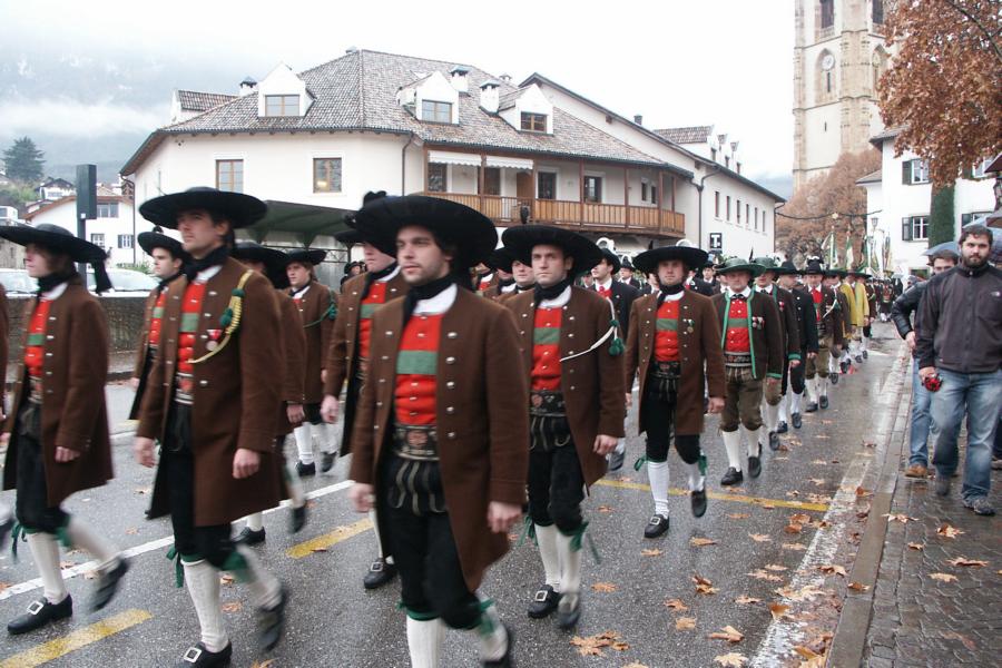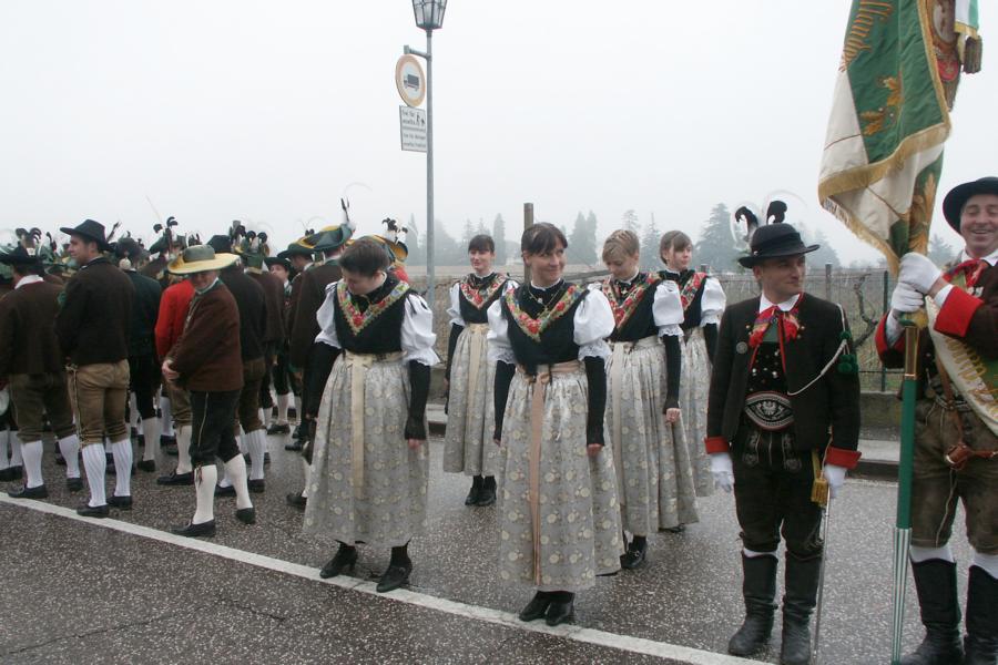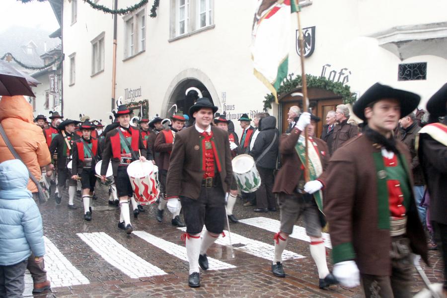 8. Dezember 2009: Nachdem die Schützenkompanie Anton von Gasteiger Villanders wie jedes Jahr fast vollzählig an der Sepp-Kerschbaumer-Gedenkfeier in St. Pauls teilnahm, ging diesmal die Fahrt nicht nach Hause sondern nach Innsbruck, wo die Orig. Tiroler Kaiserjägermusik zu ihrem alljährlichen Galakonzert geladen hatte. In Innsbruck angekommen nutzte die Schützenkompanie die Gelegenheit in der Hofkirche eine Kranzniederlegung vorzunehmen. Man gedachte zum einen, dem Oberkommandanten der Tiroler Schützen, Andreas Hofer sowie dem zweiten Hauptmann der Schützenkompanie Villanders von 1809, Dr. Sebastian-Josef Mayrhofer, für den ein Gedenkstein in der Hofkirche errichtet wurde. Hptm. Hannes Rabensteiner erinnerte in seiner Gedenkrede an die Lebensgeschichte von Dr. Mayrhofer, welcher sich einen Ehrenplatz in der Geschichte der Tiroler Helden verdient. Bei diesem für die Kompanie sehr feierlichen Akt waren auch Kameraden der SK Patsch sowie Senatsrat Dr. Franz-Heinz von Hye anwesend, welcher anschließend noch kurz auf die Geschichte der Hofkirche einging. Abschließend wurde die Landeshymne abgesungen. Nach der feierlichen Kranzniederlegung war es aber auch schon Zeit für den Start des Galakonzertes, welches die Orig. Tiroler Kaiserjägermusik ganz im Zeichen eines gesamttiroler Bildes organisierte. Das Galakonzert begann mit dem Abfeuern einer gelungenen Ehrensalve durch die SK Anton von Gasteiger Villanders in Anwesenheit von Frau Hilde Zach, Bürgermeisterin und Kulturreferentin der Nordtiroler Landeshauptstadt Innsbruck, Frau Dr. Beate Palfrader, Landesrätin für Bildung und Kultur, den beiden Landeskommandanten Otto von Sarnthein und Paul Bacher sowie Bezirksmajor Sepp Kaser. Nachdem der zweite Teil des Galakonzertes ganz im Zeichen des Gedenkjahres stand, stürmten die Kompanien von Patsch und Villanders unter Trommelwirbel den vollbesetzten Tirolersaal im Congresshaus und nahmen Stellung auf der Bühne neben der Orig. Tiroler Kaiserjägermusik. Durch den Auftritt der beiden Kompanien mit der Kaiserjägerkapelle und das Abspielen der Tiroler Märsche schlug jedes Tiroler Herz höher! Man war wohl für diese Stunde mehr als vereint und die Hoffnung, auf eine Wiedervereinigung Tirols war im gesamten Saal spürbar. Außerdem freute es uns, mit der Kompanie aus Patsch Bekanntschaft zu machen.