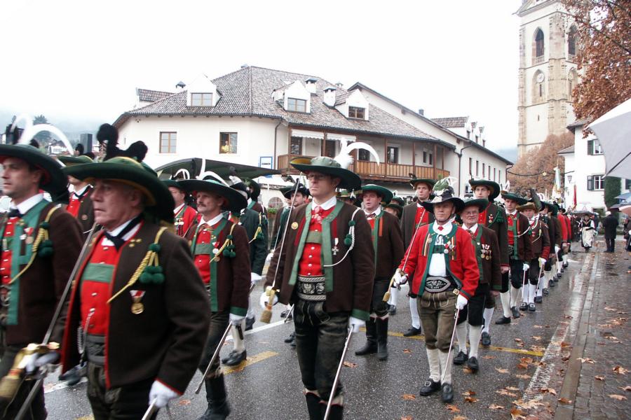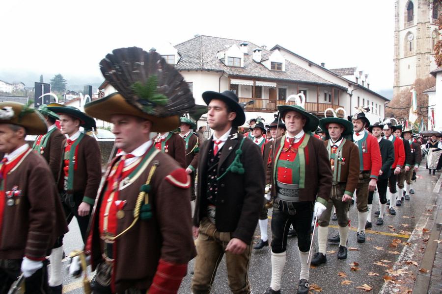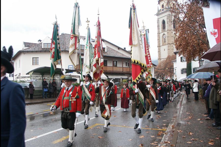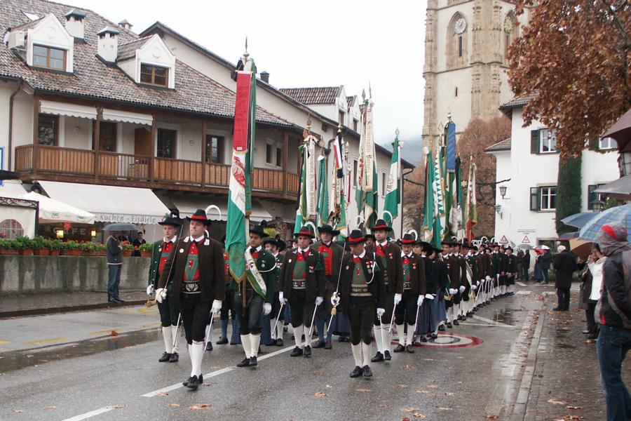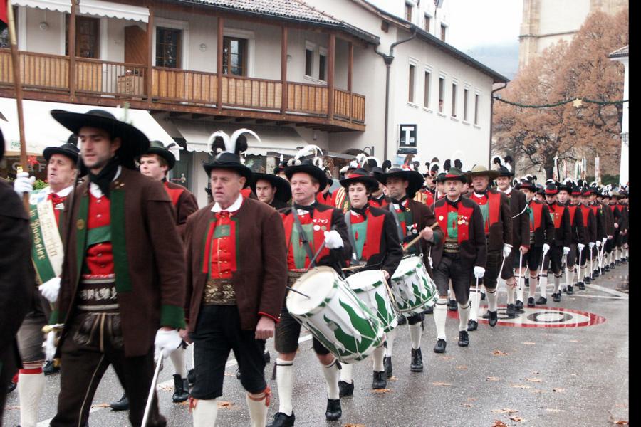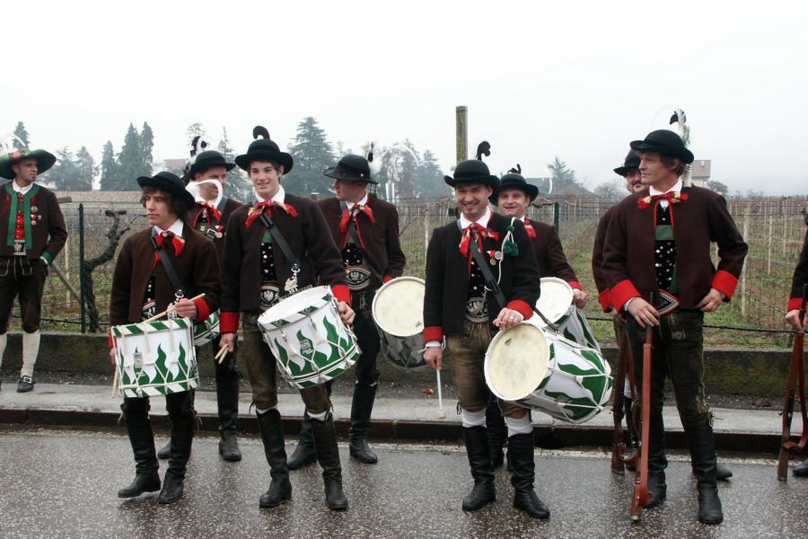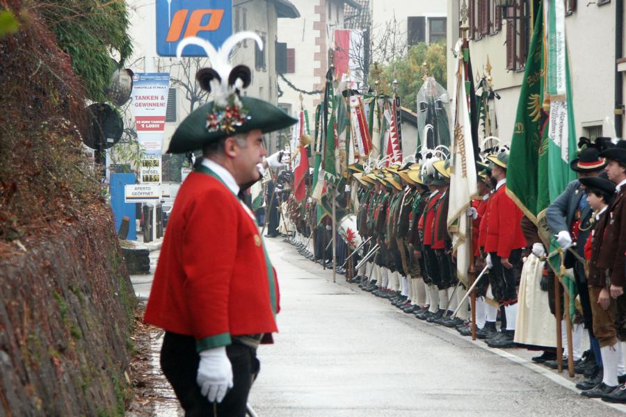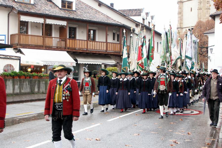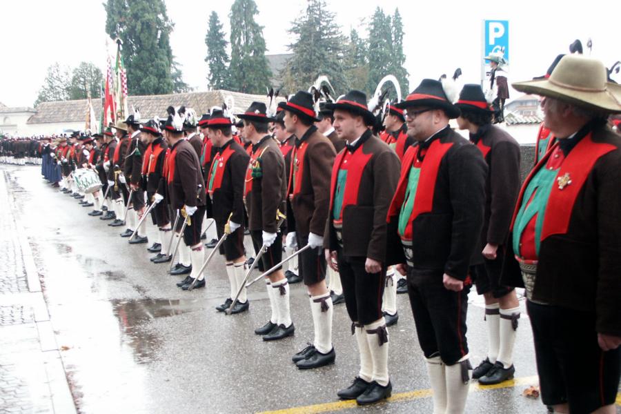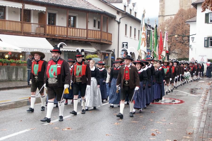 8. Dezember 2009: Nachdem die Schützenkompanie Anton von Gasteiger Villanders wie jedes Jahr fast vollzählig an der Sepp-Kerschbaumer-Gedenkfeier in St. Pauls teilnahm, ging diesmal die Fahrt nicht nach Hause sondern nach Innsbruck, wo die Orig. Tiroler Kaiserjägermusik zu ihrem alljährlichen Galakonzert geladen hatte. In Innsbruck angekommen nutzte die Schützenkompanie die Gelegenheit in der Hofkirche eine Kranzniederlegung vorzunehmen. Man gedachte zum einen, dem Oberkommandanten der Tiroler Schützen, Andreas Hofer sowie dem zweiten Hauptmann der Schützenkompanie Villanders von 1809, Dr. Sebastian-Josef Mayrhofer, für den ein Gedenkstein in der Hofkirche errichtet wurde. Hptm. Hannes Rabensteiner erinnerte in seiner Gedenkrede an die Lebensgeschichte von Dr. Mayrhofer, welcher sich einen Ehrenplatz in der Geschichte der Tiroler Helden verdient. Bei diesem für die Kompanie sehr feierlichen Akt waren auch Kameraden der SK Patsch sowie Senatsrat Dr. Franz-Heinz von Hye anwesend, welcher anschließend noch kurz auf die Geschichte der Hofkirche einging. Abschließend wurde die Landeshymne abgesungen. Nach der feierlichen Kranzniederlegung war es aber auch schon Zeit für den Start des Galakonzertes, welches die Orig. Tiroler Kaiserjägermusik ganz im Zeichen eines gesamttiroler Bildes organisierte. Das Galakonzert begann mit dem Abfeuern einer gelungenen Ehrensalve durch die SK Anton von Gasteiger Villanders in Anwesenheit von Frau Hilde Zach, Bürgermeisterin und Kulturreferentin der Nordtiroler Landeshauptstadt Innsbruck, Frau Dr. Beate Palfrader, Landesrätin für Bildung und Kultur, den beiden Landeskommandanten Otto von Sarnthein und Paul Bacher sowie Bezirksmajor Sepp Kaser. Nachdem der zweite Teil des Galakonzertes ganz im Zeichen des Gedenkjahres stand, stürmten die Kompanien von Patsch und Villanders unter Trommelwirbel den vollbesetzten Tirolersaal im Congresshaus und nahmen Stellung auf der Bühne neben der Orig. Tiroler Kaiserjägermusik. Durch den Auftritt der beiden Kompanien mit der Kaiserjägerkapelle und das Abspielen der Tiroler Märsche schlug jedes Tiroler Herz höher! Man war wohl für diese Stunde mehr als vereint und die Hoffnung, auf eine Wiedervereinigung Tirols war im gesamten Saal spürbar. Außerdem freute es uns, mit der Kompanie aus Patsch Bekanntschaft zu machen.
