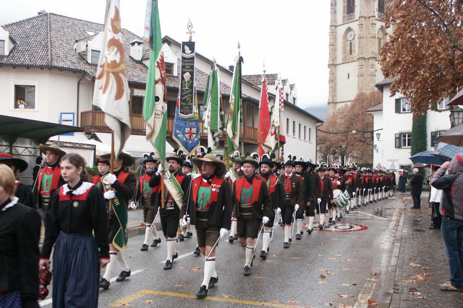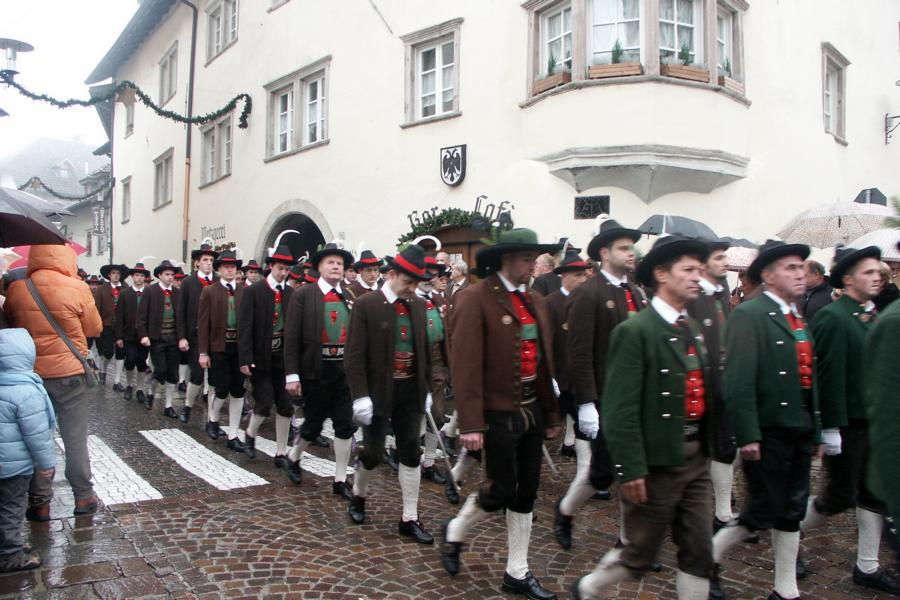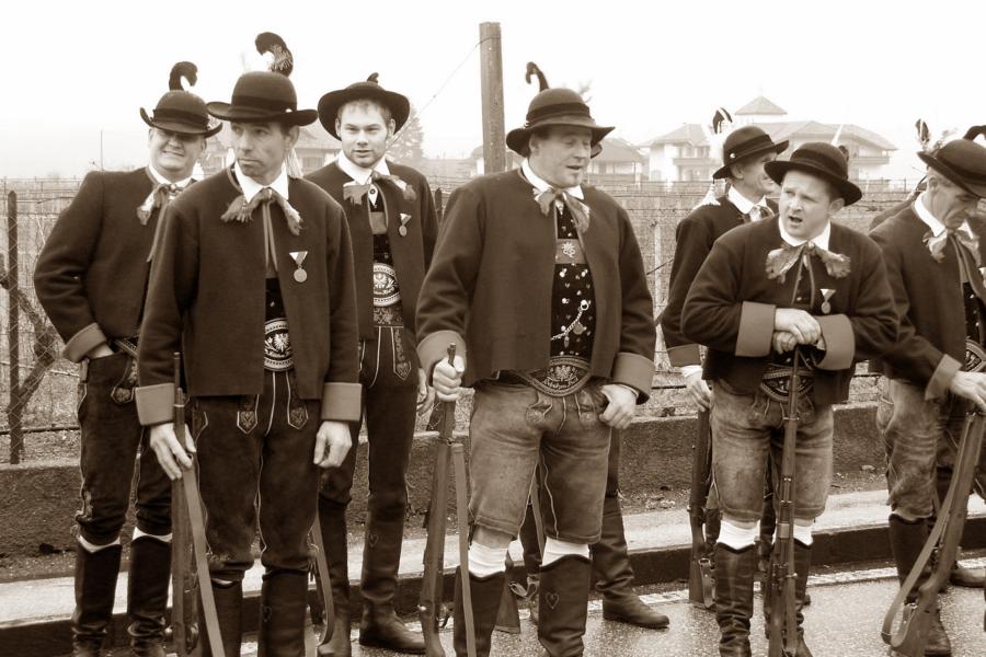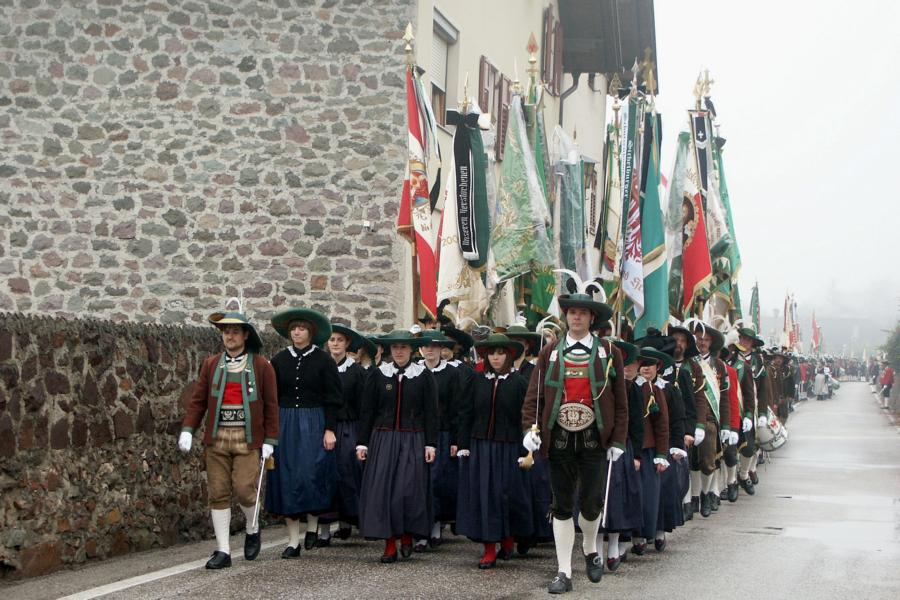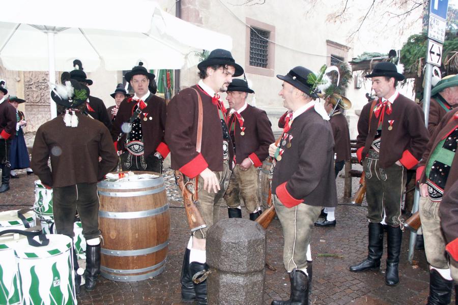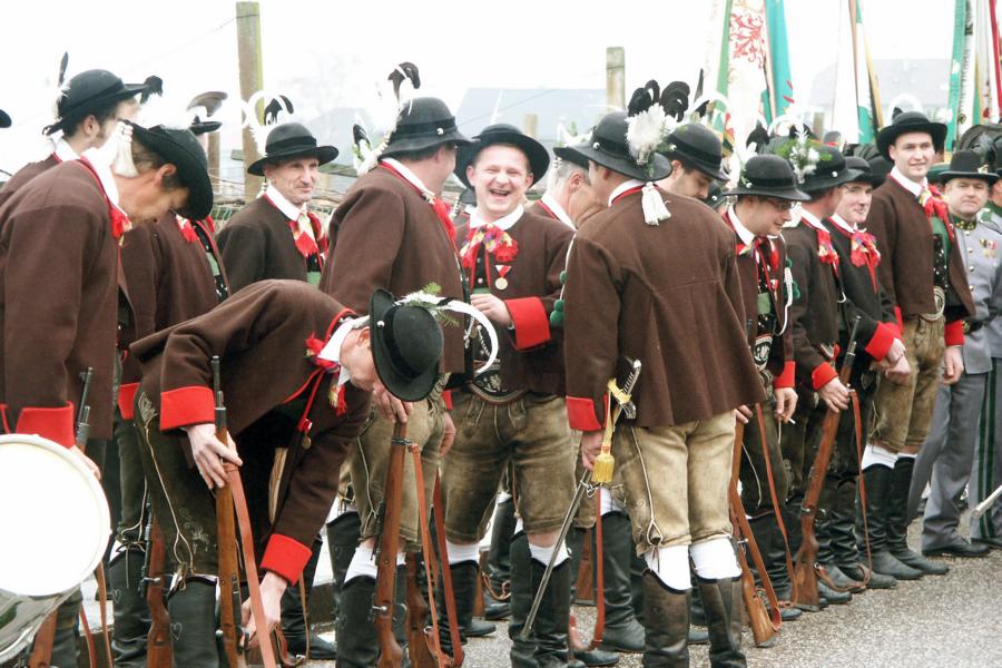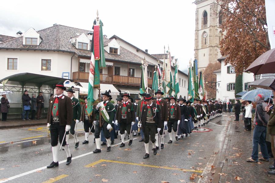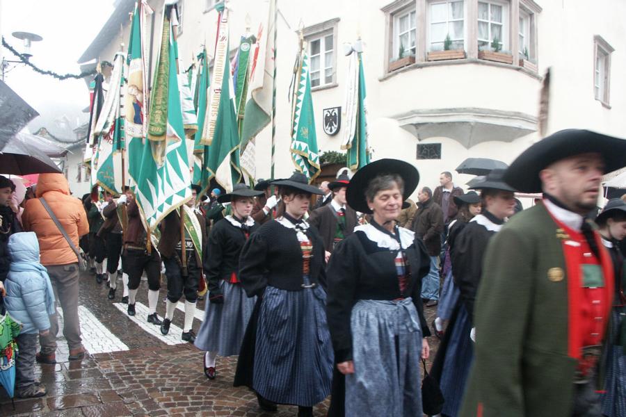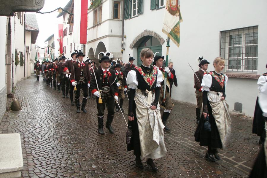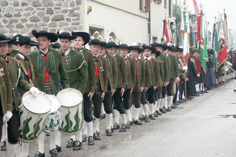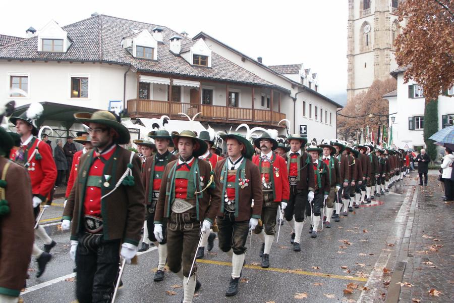8. Dezember 2009: Nachdem die Schützenkompanie Anton von Gasteiger Villanders wie jedes Jahr fast vollzählig an der Sepp-Kerschbaumer-Gedenkfeier in St. Pauls teilnahm, ging diesmal die Fahrt nicht nach Hause sondern nach Innsbruck, wo die Orig. Tiroler Kaiserjägermusik zu ihrem alljährlichen Galakonzert geladen hatte. In Innsbruck angekommen nutzte die Schützenkompanie die Gelegenheit in der Hofkirche eine Kranzniederlegung vorzunehmen. Man gedachte zum einen, dem Oberkommandanten der Tiroler Schützen, Andreas Hofer sowie dem zweiten Hauptmann der Schützenkompanie Villanders von 1809, Dr. Sebastian-Josef Mayrhofer, für den ein Gedenkstein in der Hofkirche errichtet wurde. Hptm. Hannes Rabensteiner erinnerte in seiner Gedenkrede an die Lebensgeschichte von Dr. Mayrhofer, welcher sich einen Ehrenplatz in der Geschichte der Tiroler Helden verdient. Bei diesem für die Kompanie sehr feierlichen Akt waren auch Kameraden der SK Patsch sowie Senatsrat Dr. Franz-Heinz von Hye anwesend, welcher anschließend noch kurz auf die Geschichte der Hofkirche einging. Abschließend wurde die Landeshymne abgesungen. Nach der feierlichen Kranzniederlegung war es aber auch schon Zeit für den Start des Galakonzertes, welches die Orig. Tiroler Kaiserjägermusik ganz im Zeichen eines gesamttiroler Bildes organisierte. Das Galakonzert begann mit dem Abfeuern einer gelungenen Ehrensalve durch die SK Anton von Gasteiger Villanders in Anwesenheit von Frau Hilde Zach, Bürgermeisterin und Kulturreferentin der Nordtiroler Landeshauptstadt Innsbruck, Frau Dr. Beate Palfrader, Landesrätin für Bildung und Kultur, den beiden Landeskommandanten Otto von Sarnthein und Paul Bacher sowie Bezirksmajor Sepp Kaser. Nachdem der zweite Teil des Galakonzertes ganz im Zeichen des Gedenkjahres stand, stürmten die Kompanien von Patsch und Villanders unter Trommelwirbel den vollbesetzten Tirolersaal im Congresshaus und nahmen Stellung auf der Bühne neben der Orig. Tiroler Kaiserjägermusik. Durch den Auftritt der beiden Kompanien mit der Kaiserjägerkapelle und das Abspielen der Tiroler Märsche schlug jedes Tiroler Herz höher! Man war wohl für diese Stunde mehr als vereint und die Hoffnung, auf eine Wiedervereinigung Tirols war im gesamten Saal spürbar. Außerdem freute es uns, mit der Kompanie aus Patsch Bekanntschaft zu machen.