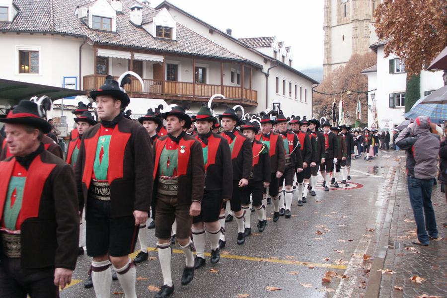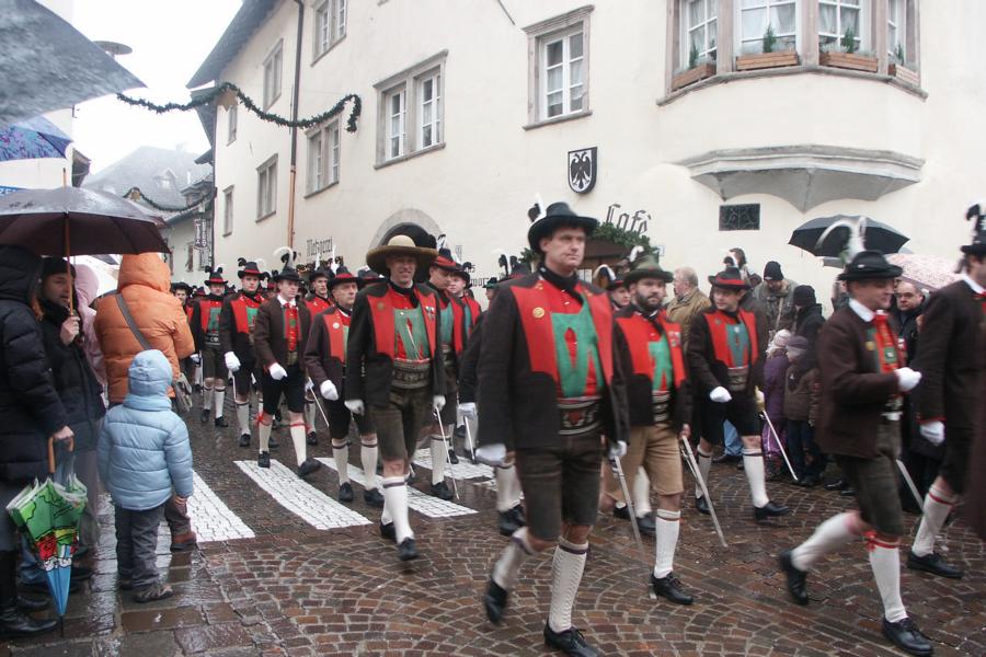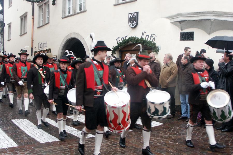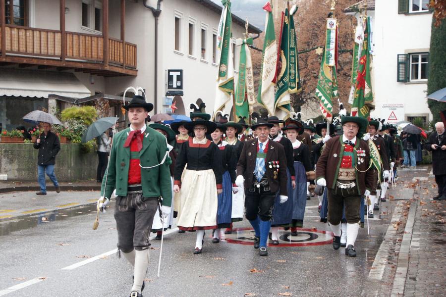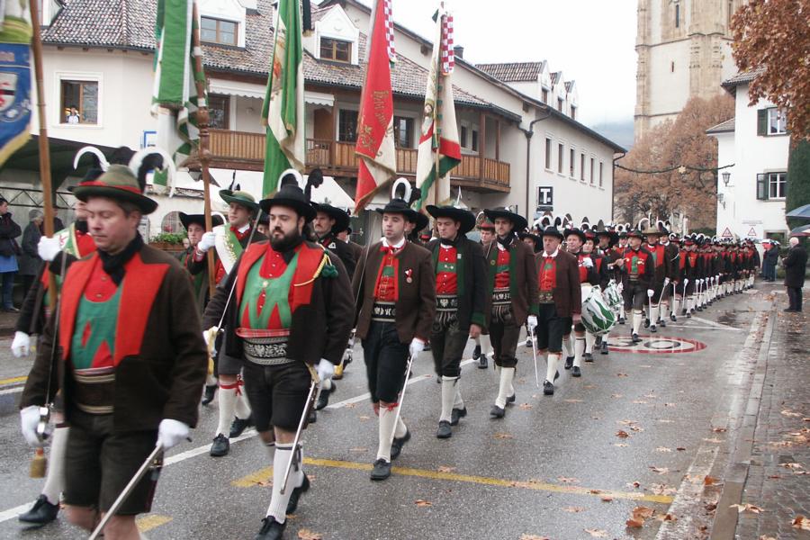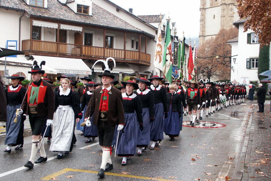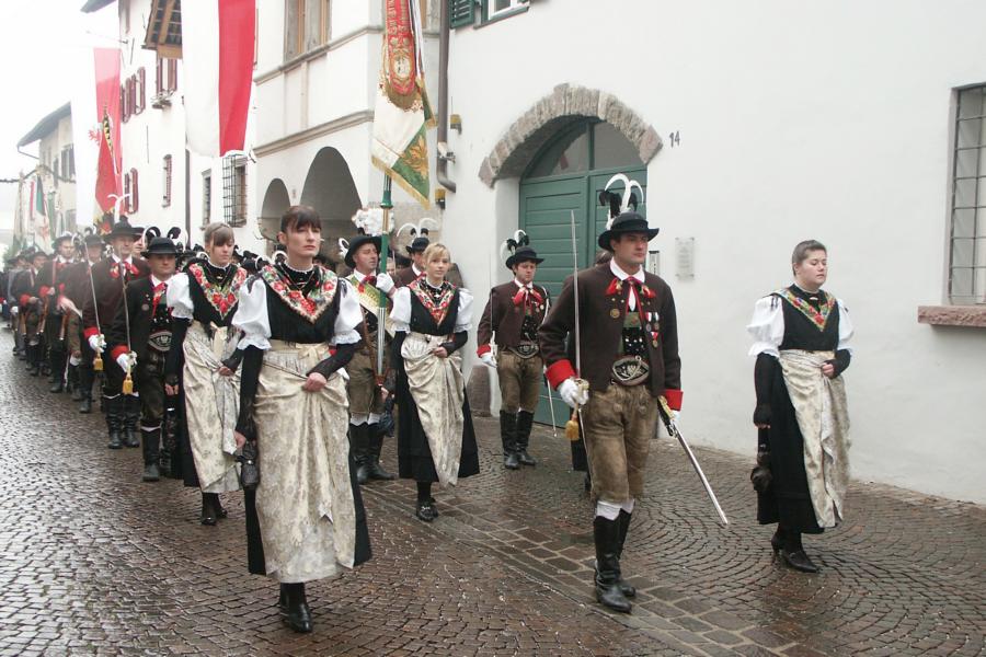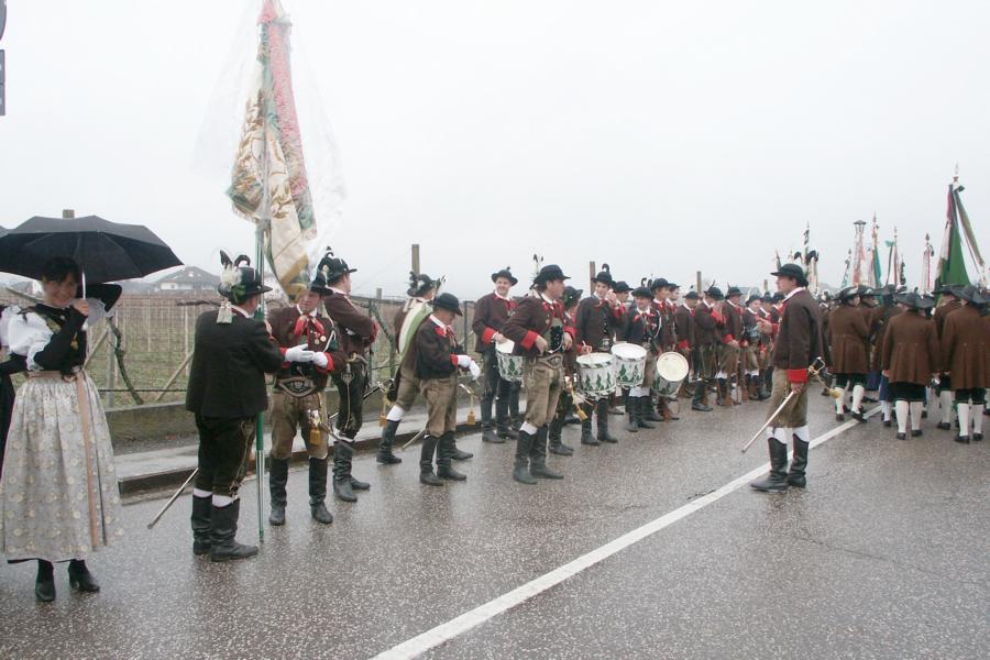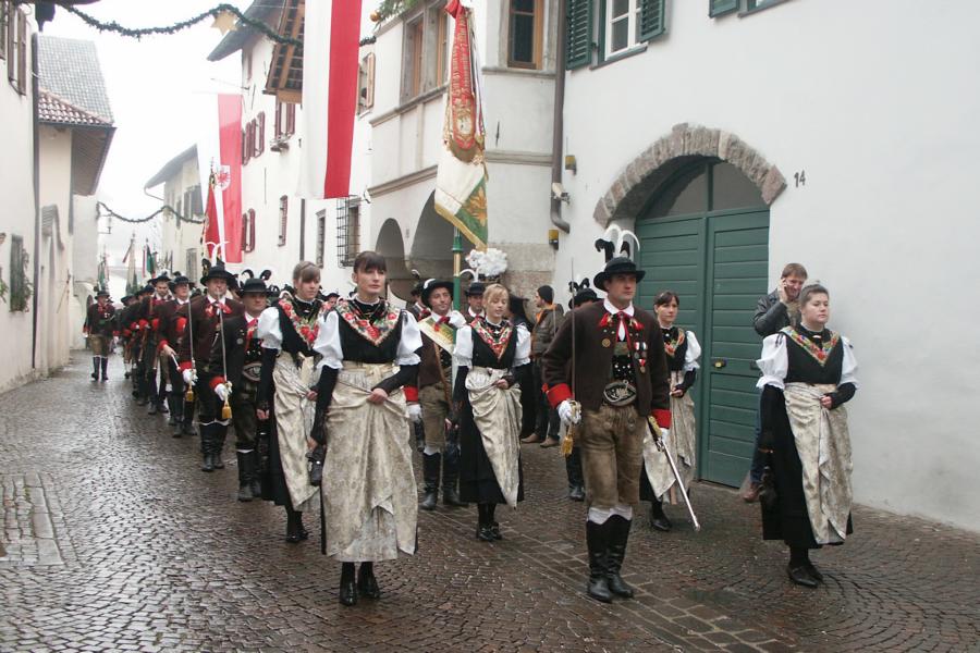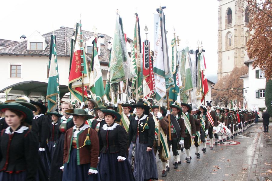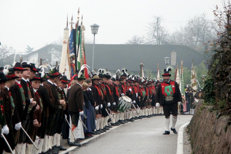 8. Dezember 2009: Nachdem die Schützenkompanie Anton von Gasteiger Villanders wie jedes Jahr fast vollzählig an der Sepp-Kerschbaumer-Gedenkfeier in St. Pauls teilnahm, ging diesmal die Fahrt nicht nach Hause sondern nach Innsbruck, wo die Orig. Tiroler Kaiserjägermusik zu ihrem alljährlichen Galakonzert geladen hatte. In Innsbruck angekommen nutzte die Schützenkompanie die Gelegenheit in der Hofkirche eine Kranzniederlegung vorzunehmen. Man gedachte zum einen, dem Oberkommandanten der Tiroler Schützen, Andreas Hofer sowie dem zweiten Hauptmann der Schützenkompanie Villanders von 1809, Dr. Sebastian-Josef Mayrhofer, für den ein Gedenkstein in der Hofkirche errichtet wurde. Hptm. Hannes Rabensteiner erinnerte in seiner Gedenkrede an die Lebensgeschichte von Dr. Mayrhofer, welcher sich einen Ehrenplatz in der Geschichte der Tiroler Helden verdient. Bei diesem für die Kompanie sehr feierlichen Akt waren auch Kameraden der SK Patsch sowie Senatsrat Dr. Franz-Heinz von Hye anwesend, welcher anschließend noch kurz auf die Geschichte der Hofkirche einging. Abschließend wurde die Landeshymne abgesungen. Nach der feierlichen Kranzniederlegung war es aber auch schon Zeit für den Start des Galakonzertes, welches die Orig. Tiroler Kaiserjägermusik ganz im Zeichen eines gesamttiroler Bildes organisierte. Das Galakonzert begann mit dem Abfeuern einer gelungenen Ehrensalve durch die SK Anton von Gasteiger Villanders in Anwesenheit von Frau Hilde Zach, Bürgermeisterin und Kulturreferentin der Nordtiroler Landeshauptstadt Innsbruck, Frau Dr. Beate Palfrader, Landesrätin für Bildung und Kultur, den beiden Landeskommandanten Otto von Sarnthein und Paul Bacher sowie Bezirksmajor Sepp Kaser. Nachdem der zweite Teil des Galakonzertes ganz im Zeichen des Gedenkjahres stand, stürmten die Kompanien von Patsch und Villanders unter Trommelwirbel den vollbesetzten Tirolersaal im Congresshaus und nahmen Stellung auf der Bühne neben der Orig. Tiroler Kaiserjägermusik. Durch den Auftritt der beiden Kompanien mit der Kaiserjägerkapelle und das Abspielen der Tiroler Märsche schlug jedes Tiroler Herz höher! Man war wohl für diese Stunde mehr als vereint und die Hoffnung, auf eine Wiedervereinigung Tirols war im gesamten Saal spürbar. Außerdem freute es uns, mit der Kompanie aus Patsch Bekanntschaft zu machen.