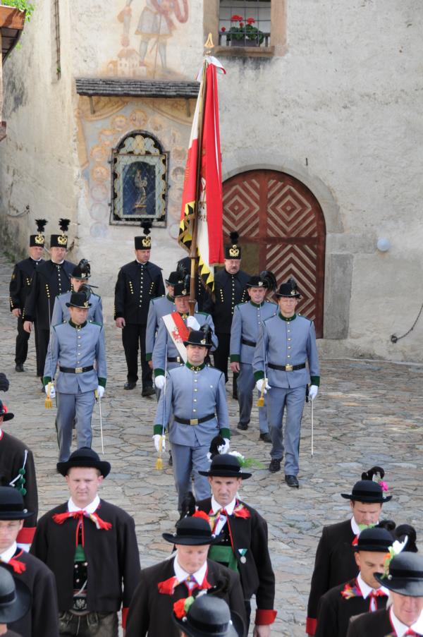 Bei der diesjährigen Herz-Jesu-Prozession, welche bei herrlichem Wetter statt fand, wurde anschließend das Gelöbnis der ganzen Kompanie sowie der Neumitglieder durchgeführt. Auch die Ehrensalve durfte bei diesem besonderen Anlass nicht fehlen. Nach den Feierlichkeiten wurde der Jubileumsbaum (Bergahorn) entlang des neu angelegten Prozessionsweges gepflanzt. Dieser soll Sinnbild für unsere Verwurzelung mit der Tiroler Heimat sowie als Zeichen der Ehrfurcht vor unseren rumreichen Vorfahren sein.