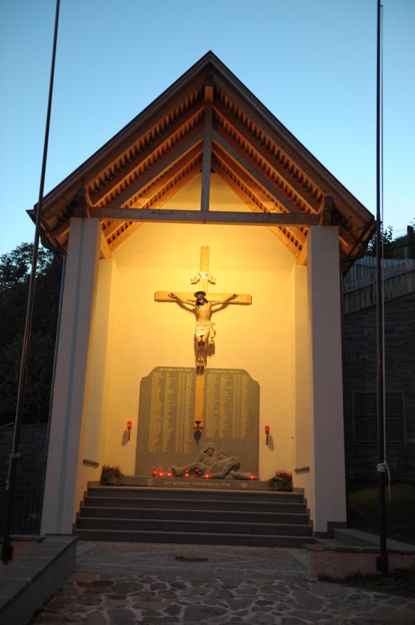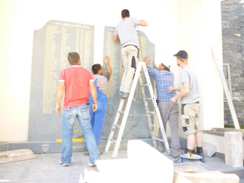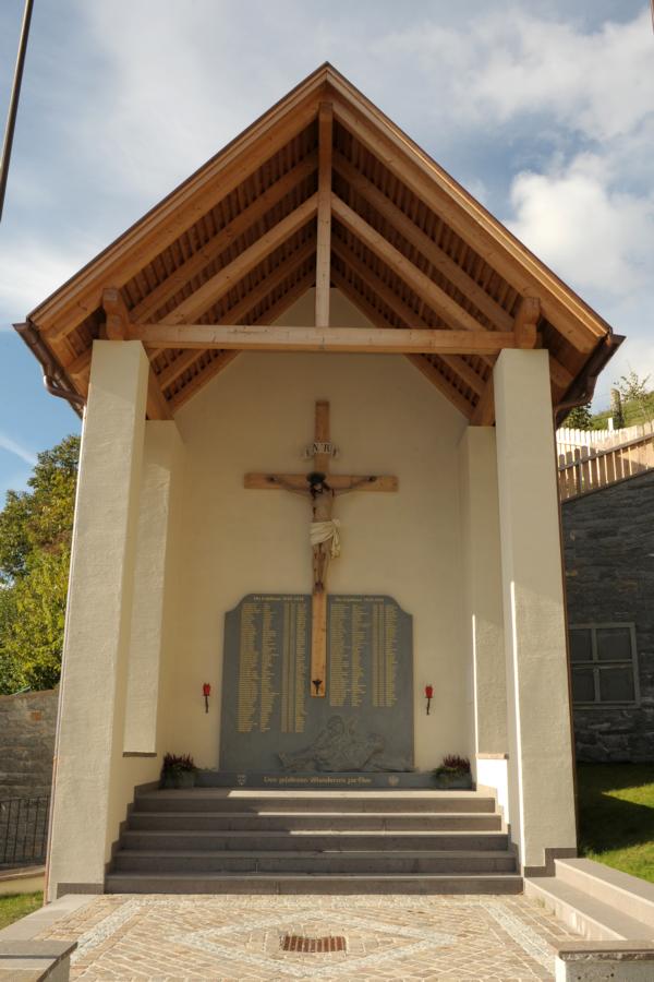 Die Schützenkompanie hat die Planung und das Organisatorische für die Gestaltung des Kriegerdenkmals übernommen. Es war uns eine große Ehre im Gedenkjahr diese Aufgabe von der Gemeindeverwaltung bekommen zu haben. Ohne unser Mitwirken wären wohl wieder die alten Tafeln aufgehängt worden. Nach dem Einzug und der heiligen Messe wurden der Friedhof und das Kriegerdenkmal vom Generalvikar Dr. Josef Matzneller und Pfarrer Konrad Morandell eingeweiht. Der Bürgermeister hat die Festansprache gehalten, die Musikkappelle und der Chor umrahmten die Weihe. Unseren Schützenhauptmann wurde eine Ansprache untersagt und der Kompanie das Abfeuern einer Ehrensalve.