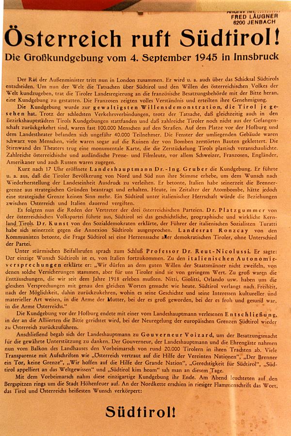 in der Heimat stark gemacht, die fur ihn –weder Italien noch Deutschland –eben Sudtirol