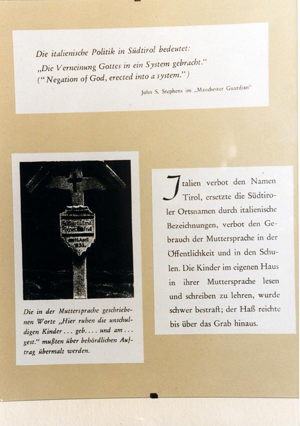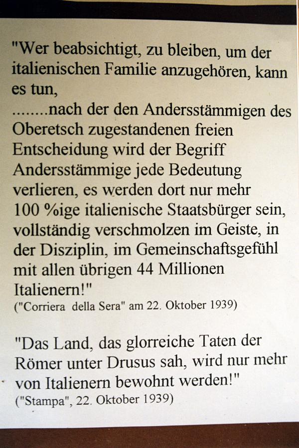 Es ist hinreichend bekannt, wie der Faschismus vorging, um aus dem deutschen Sudtirol –