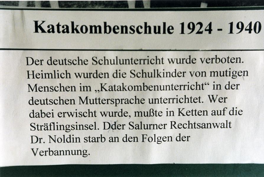 deutschen Schule auch in Villanders funktionierte. Die sogenannten Katakombenlehrer