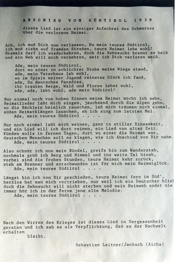 Besetzung Sudtirols, wurde von einigen der ehemaligen Dableiber mit