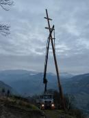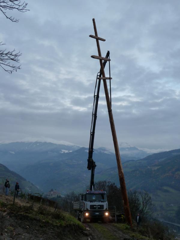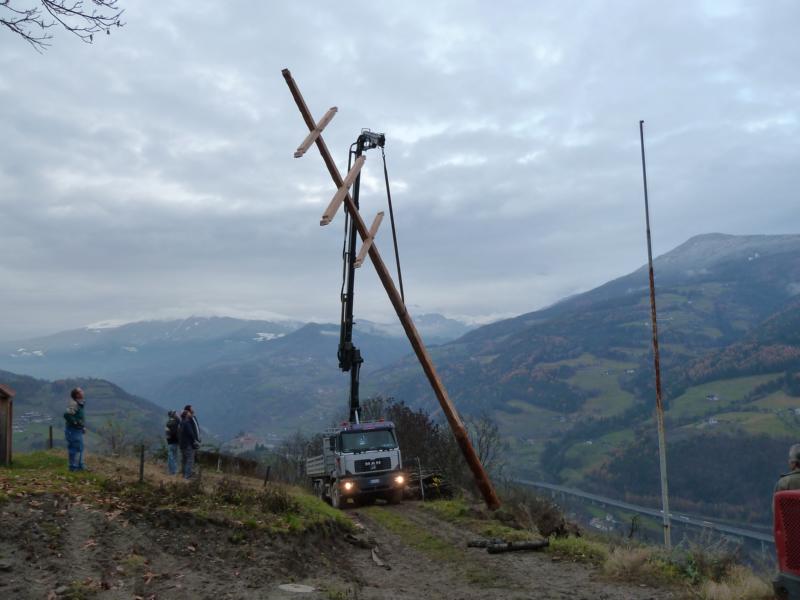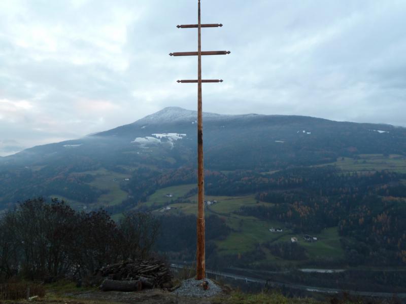 Das durch starke Fäulnis baschädigte 15m hohe Wetterkreuz, dass schon im Jahre 1996 neu aufgestellt wurde, hat der Wind im Frühjahr 2009 umgeschmissen. Sofort wurde ein neuer passender Lärchenbaum gesucht, gefällt und bearbeitet. Das nun 20m hohe Wetterkreuz wurde am 20.11.2010 wieder neu aufgestellt. In unmittelbare Nähe steht, die bereits im Jahr 2001 15m hohe Fahnenstange, wo bei Festtagen im großen Umkreis die Fahne sichtbar ist.