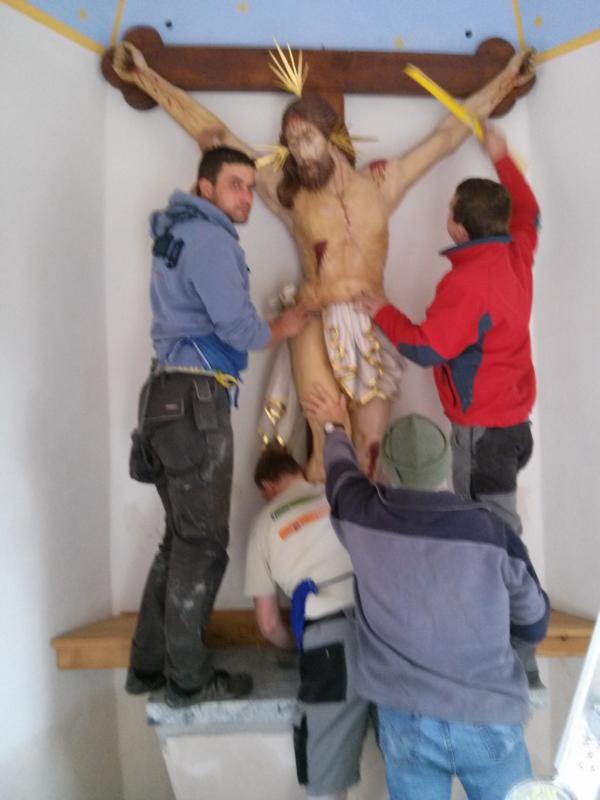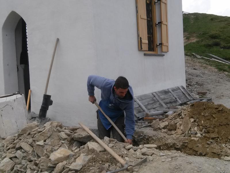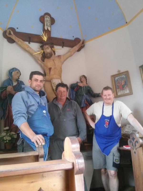 Wir Schützen haben im heurigen Jahr das Totenkirchl renoviert und in neuem Glanz erstrahlen lassen. Für den Transport stellten sich die Bauern zur Verfügung. Dabei geholfen haben Hptm. Hannes, Obj. Albin, Eolt. Peter, Walter (Bachler), Erich, Gottlieb, Matthias, Gabriel B., Alex, Moritz, Bernhard, Toni, Rasöller Kurt, Plottner Norbert, Neuhaus Konrad, Furner Tom, Prackfiederer Luis und Johonnser Alfred. Insgesamt waren 11 Tage notwendig. Im Laufe des Jahres werden die Arbeit beendet sein.